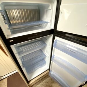 Takana iso wc -tila erillisellä suihkulla. Erillisvuoteet, joiden alla suuret säilytystilat. Keskellä keittiö korkealla jääkaapilla. Edessä avara pöytäryhmä kääntyvin ohjaamoistuimin.