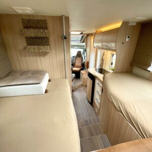 30 v. juhlamalli Bürstner erillisvuoteilla ja nahkapenkeillä! Takapäässä erillisvuoteet ja alla hulppea tavaratila kaikille varusteille mitä matkallasi tarvitset. Mukavan oloinen ja valoisa oleskeluryhmä muodostuu kääntyvillä ohjaamon penkeillä. Keittiö ja pesuhuone sijaitsevat auton keskellä.Kaikessa näkyy viimeistelyn tuntu.