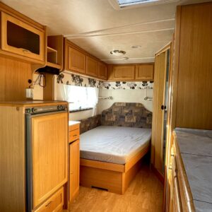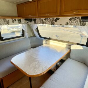 Nyt on ikäisekseen hienossa kunnossa oleva Cabby. Toki vuodet näkyy, mutta näkyy myös että tästä vaunusta on pidetty hyvää huolta. Alden pystypannu lämmittää sisätiloja ja sisällä on kotoisa tunnelma. Etuosan ruokailuryhmän saa muutettua sängyksi ja takana sijaitsee parisänky. Kaappitilaa on runsaasti. WC-/ suihkutila on suorastaan iso tämän kokoluokan vaunussa. Vaunuun on rakennettu myös pieni ilmastointi pöytäryhmän alle viilentämään tulevia kesähelteitä. Tule Turenkiin katsomaan vaunua ja ihastu.
