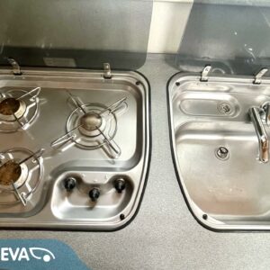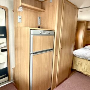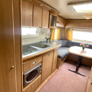 Vaunun etuosassa on tilava istuinrymä, keskelle keittiö sekä suuri jääkaappi sekä mikroaaltouuni ja vaunun takaosasta löytyvät varsin tilava WC sekä saarekevuode. Makuuhuoneen voi sulkea liukuovella omaksi tilakseen.