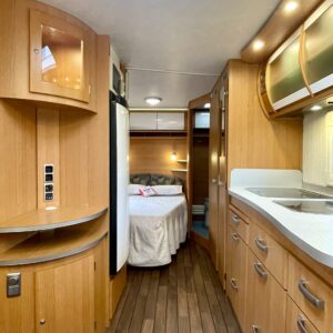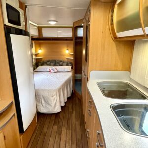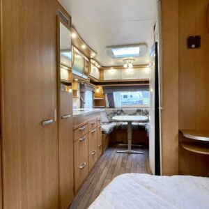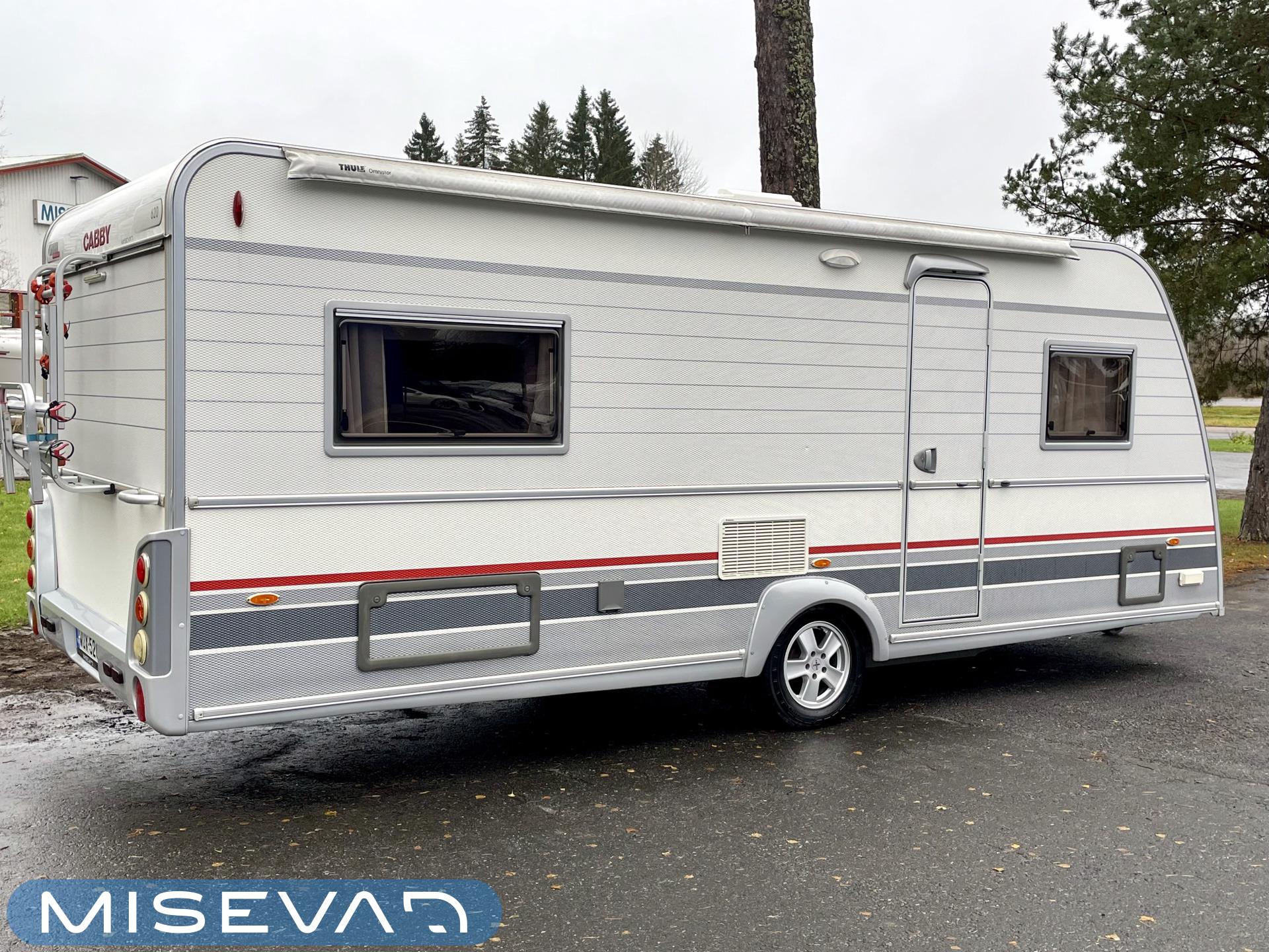 Cabbyt ei yleensä Misevan pihalla kovin pitkään viihdy, eikä tämä vaunu varmasti ole poikkeus. Kyseinen yksilö on ollut hyvällä pidolla ja siistissä kunnossa kaikinpuolin. Alden nestekiertoinen lämmitys tekee näistä myös haluttuja neljän vuodenajan vaunuja. Vaunun etuosassa on iso ruokailutila jopa kuudelle. Ja jos tykkäät ruoanlaitosta, niin tämä on tilojen puolesta suorastaan unelma. Pitkä keittiönpöytä ja yhdeksän vetolaatikostoa tekee keittiöstä todella mukavan ruoanlaittopisteen. Takaa löytyy pehmeä parisänky, jonka alla säilytystilaa. Ja suihkussakin pääsee käymään viereisessä huoneessa. Jääkaappi on mallia iso ja säilytystilaa tässä vaunussa on mukavasti kaappien muodossa. Tule tutustumaan paikanpäälle ja anna Cabbyn hurmata sinut.