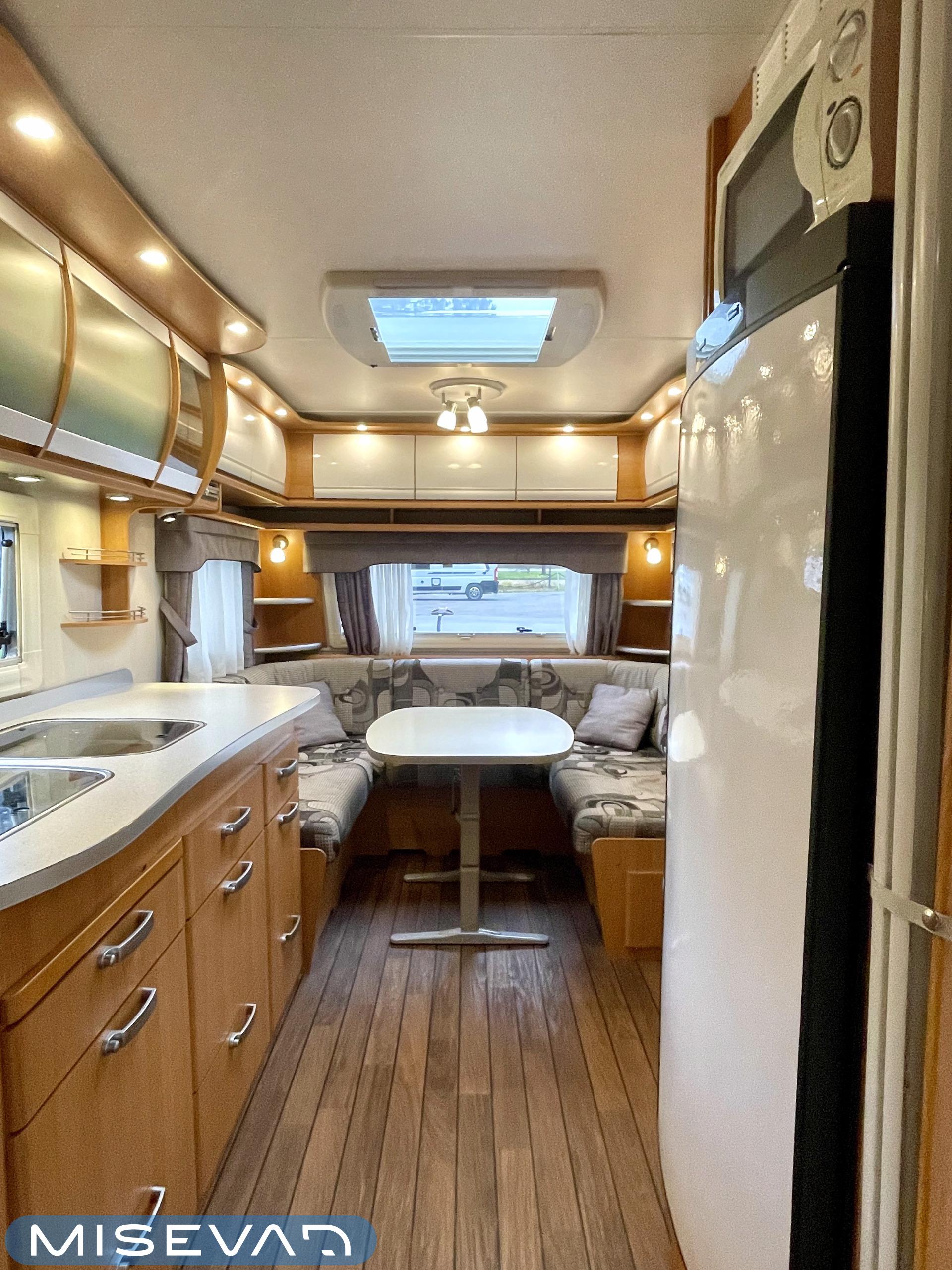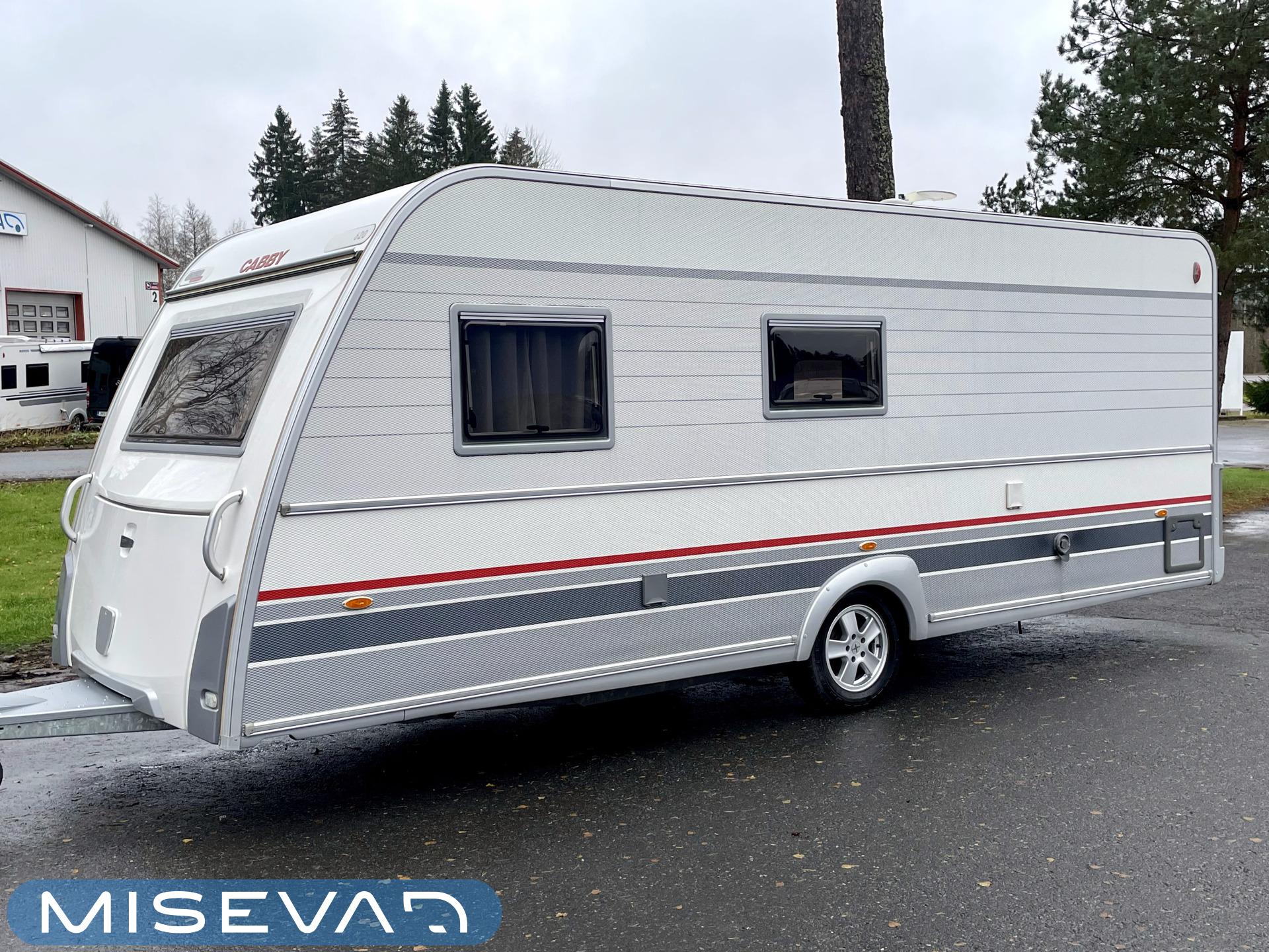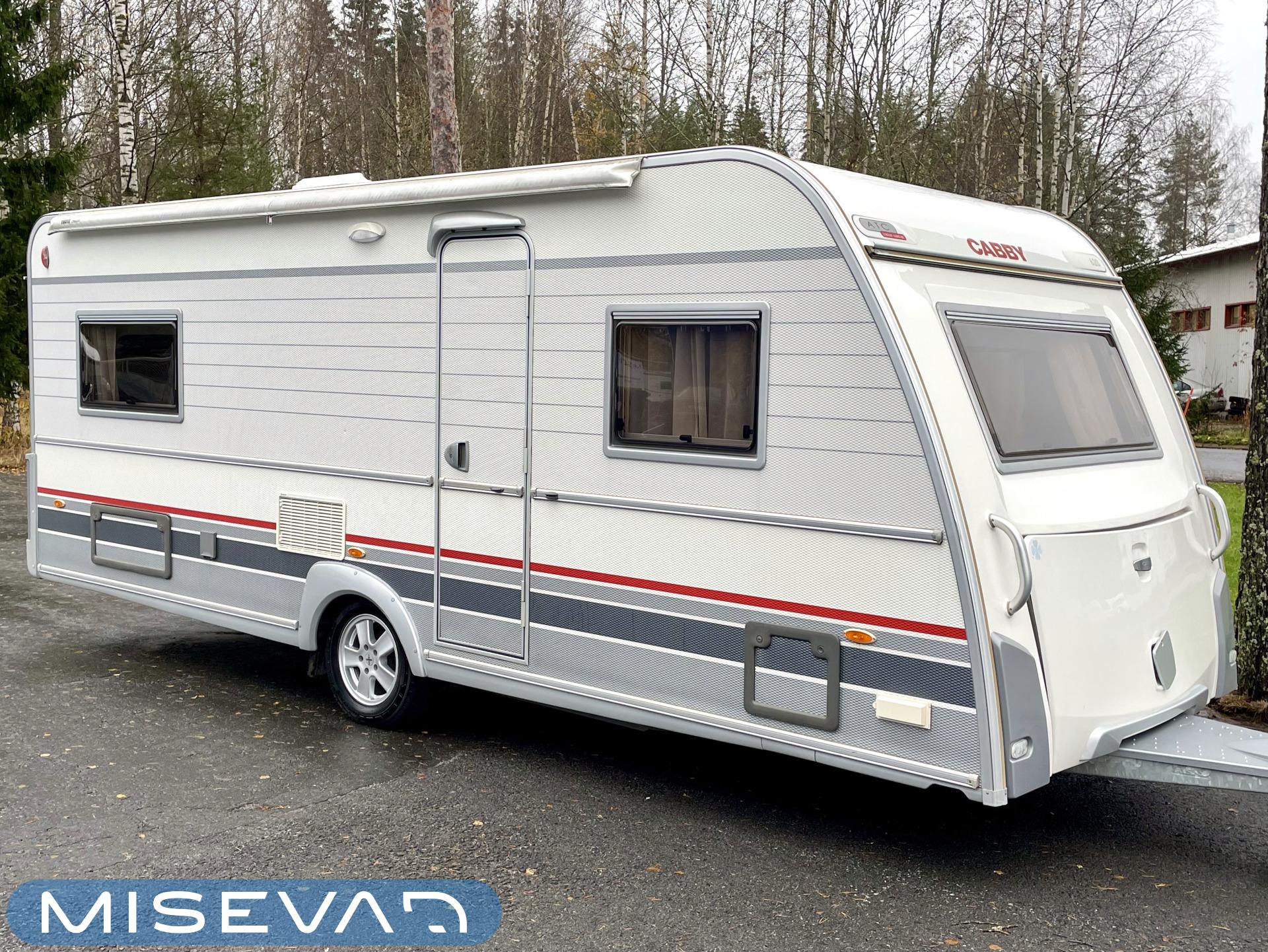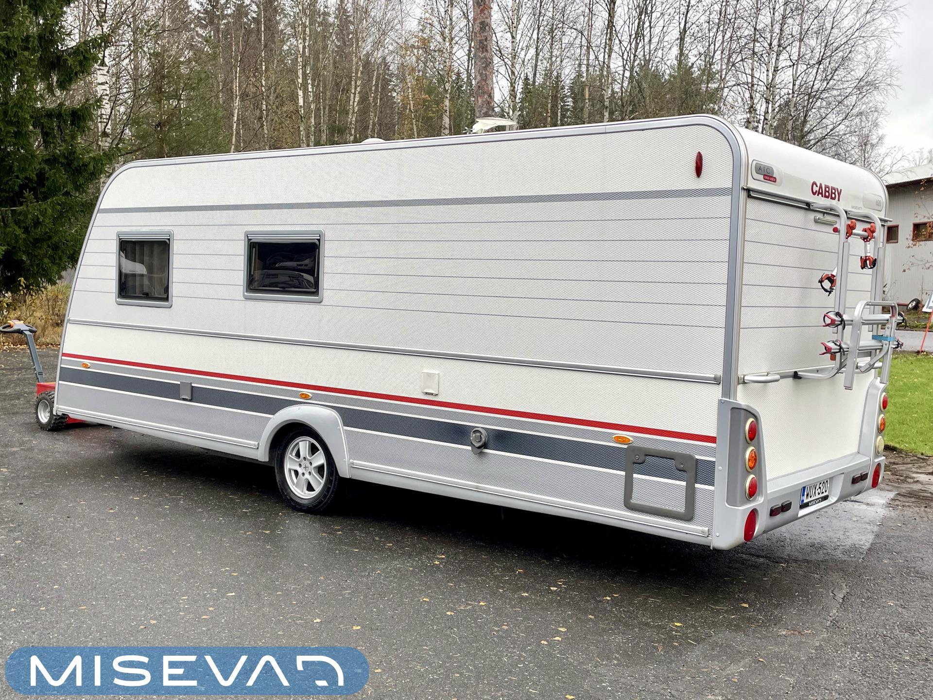 Cabbyt ei yleensä Misevan pihalla kovin pitkään viihdy, eikä tämä vaunu varmasti ole poikkeus. Kyseinen yksilö on ollut hyvällä pidolla ja siistissä kunnossa kaikinpuolin. Alden nestekiertoinen lämmitys tekee näistä myös haluttuja neljän vuodenajan vaunuja. Vaunun etuosassa on iso ruokailutila jopa kuudelle. Ja jos tykkäät ruoanlaitosta, niin tämä on tilojen puolesta suorastaan unelma. Pitkä keittiönpöytä ja yhdeksän vetolaatikostoa tekee keittiöstä todella mukavan ruoanlaittopisteen. Takaa löytyy pehmeä parisänky, jonka alla säilytystilaa. Ja suihkussakin pääsee käymään viereisessä huoneessa. Jääkaappi on mallia iso ja säilytystilaa tässä vaunussa on mukavasti kaappien muodossa. Tule tutustumaan paikanpäälle ja anna Cabbyn hurmata sinut.