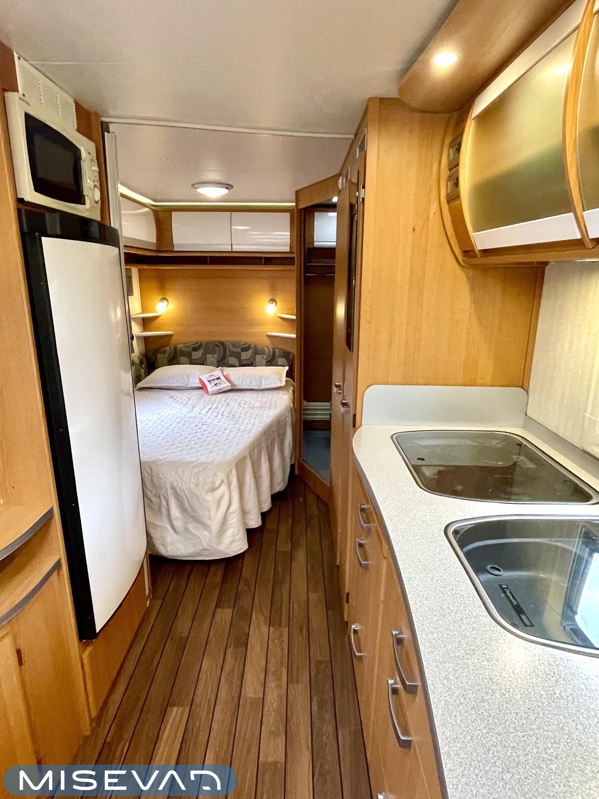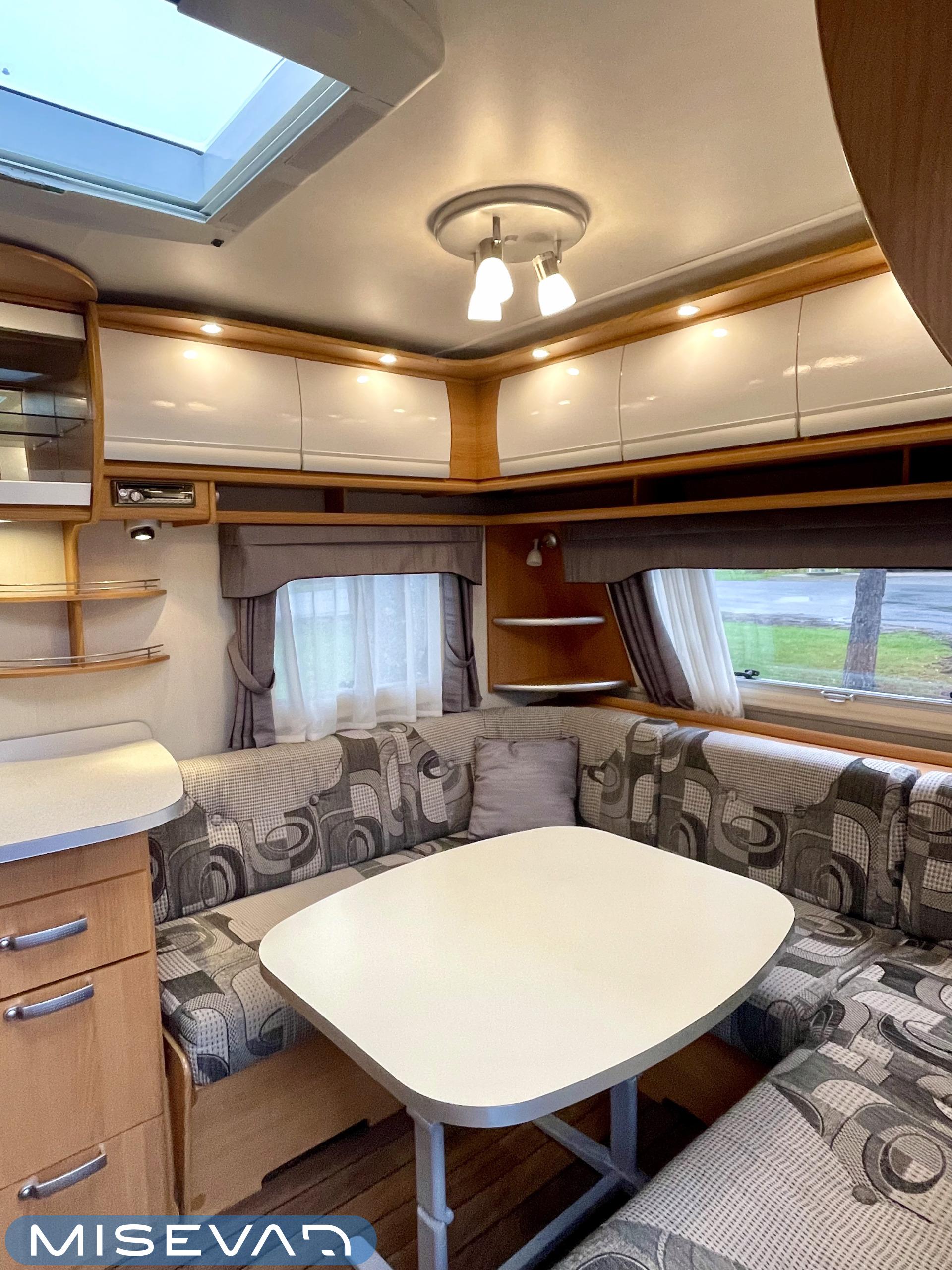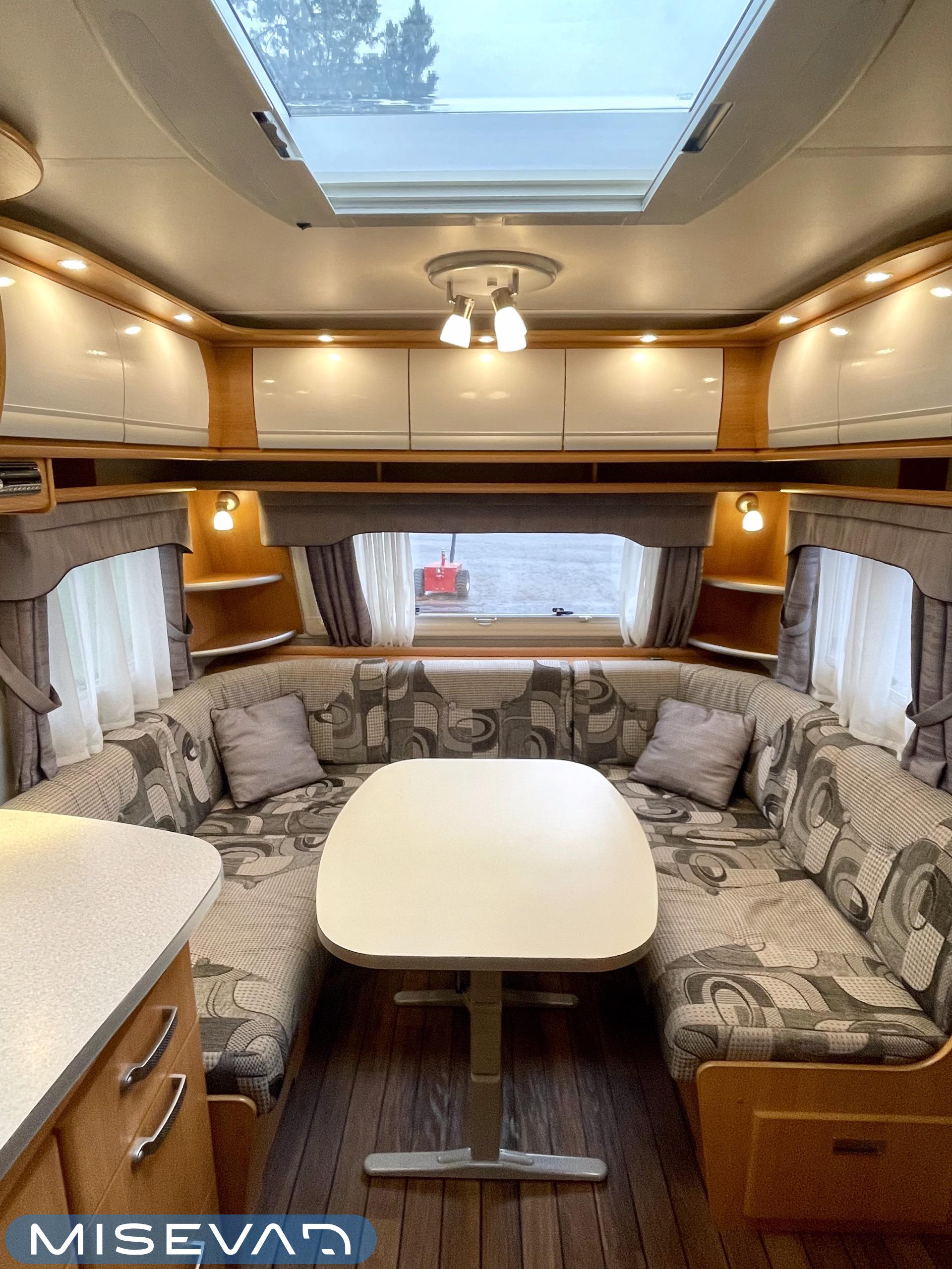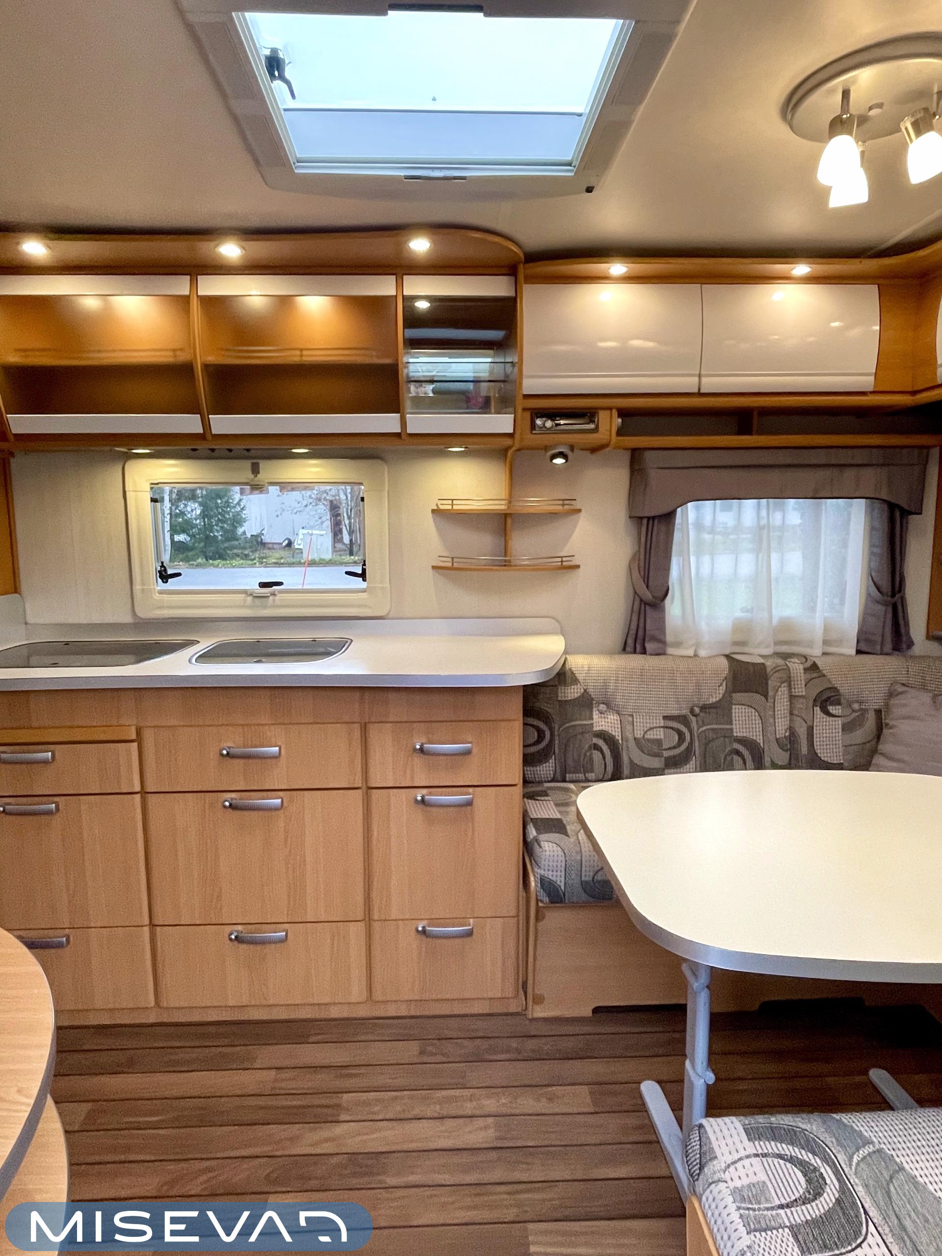 Cabbyt ei yleensä Misevan pihalla kovin pitkään viihdy, eikä tämä vaunu varmasti ole poikkeus. Kyseinen yksilö on ollut hyvällä pidolla ja siistissä kunnossa kaikinpuolin. Alden nestekiertoinen lämmitys tekee näistä myös haluttuja neljän vuodenajan vaunuja. Vaunun etuosassa on iso ruokailutila jopa kuudelle. Ja jos tykkäät ruoanlaitosta, niin tämä on tilojen puolesta suorastaan unelma. Pitkä keittiönpöytä ja yhdeksän vetolaatikostoa tekee keittiöstä todella mukavan ruoanlaittopisteen. Takaa löytyy pehmeä parisänky, jonka alla säilytystilaa. Ja suihkussakin pääsee käymään viereisessä huoneessa. Jääkaappi on mallia iso ja säilytystilaa tässä vaunussa on mukavasti kaappien muodossa. Tule tutustumaan paikanpäälle ja anna Cabbyn hurmata sinut.