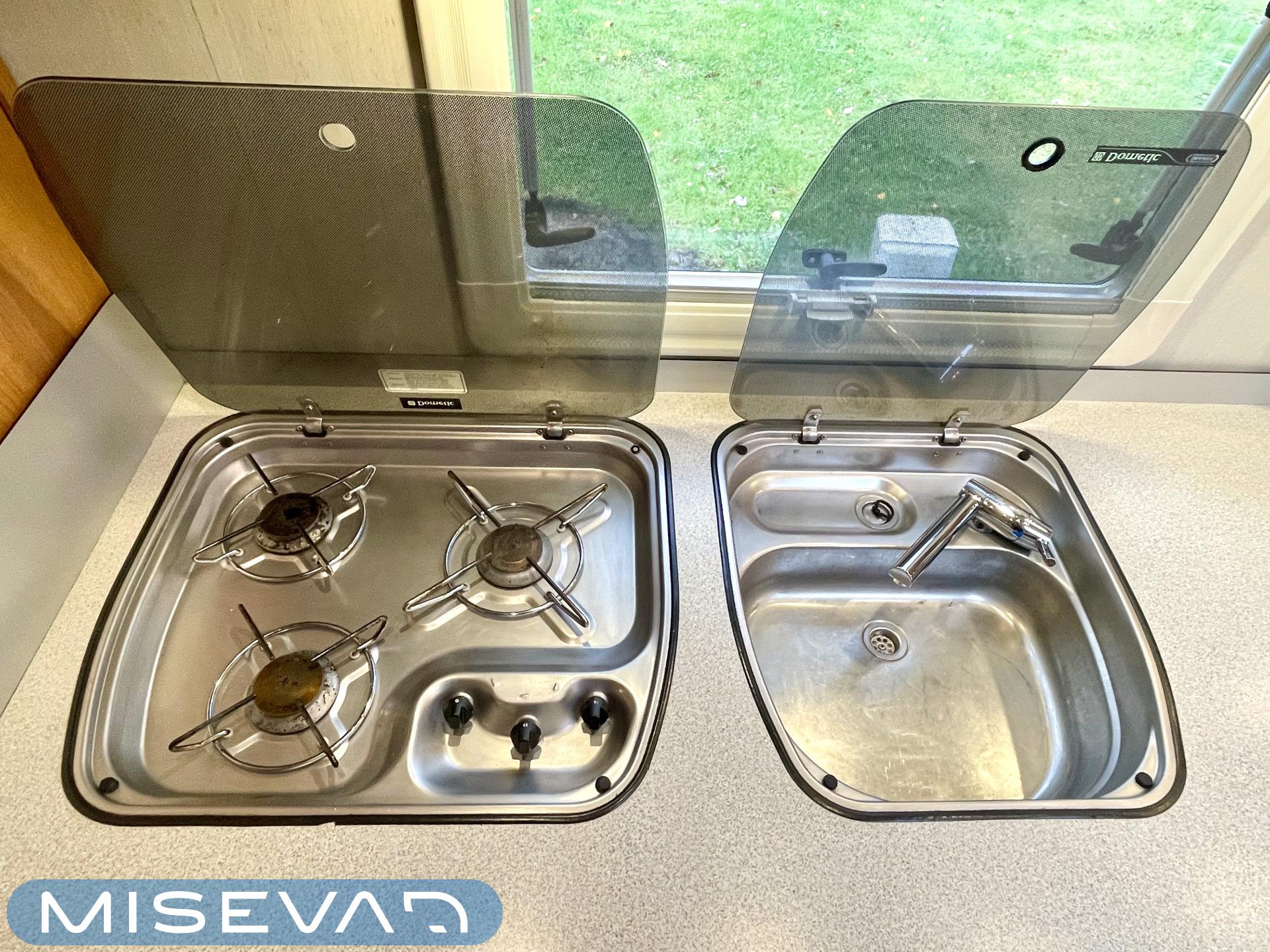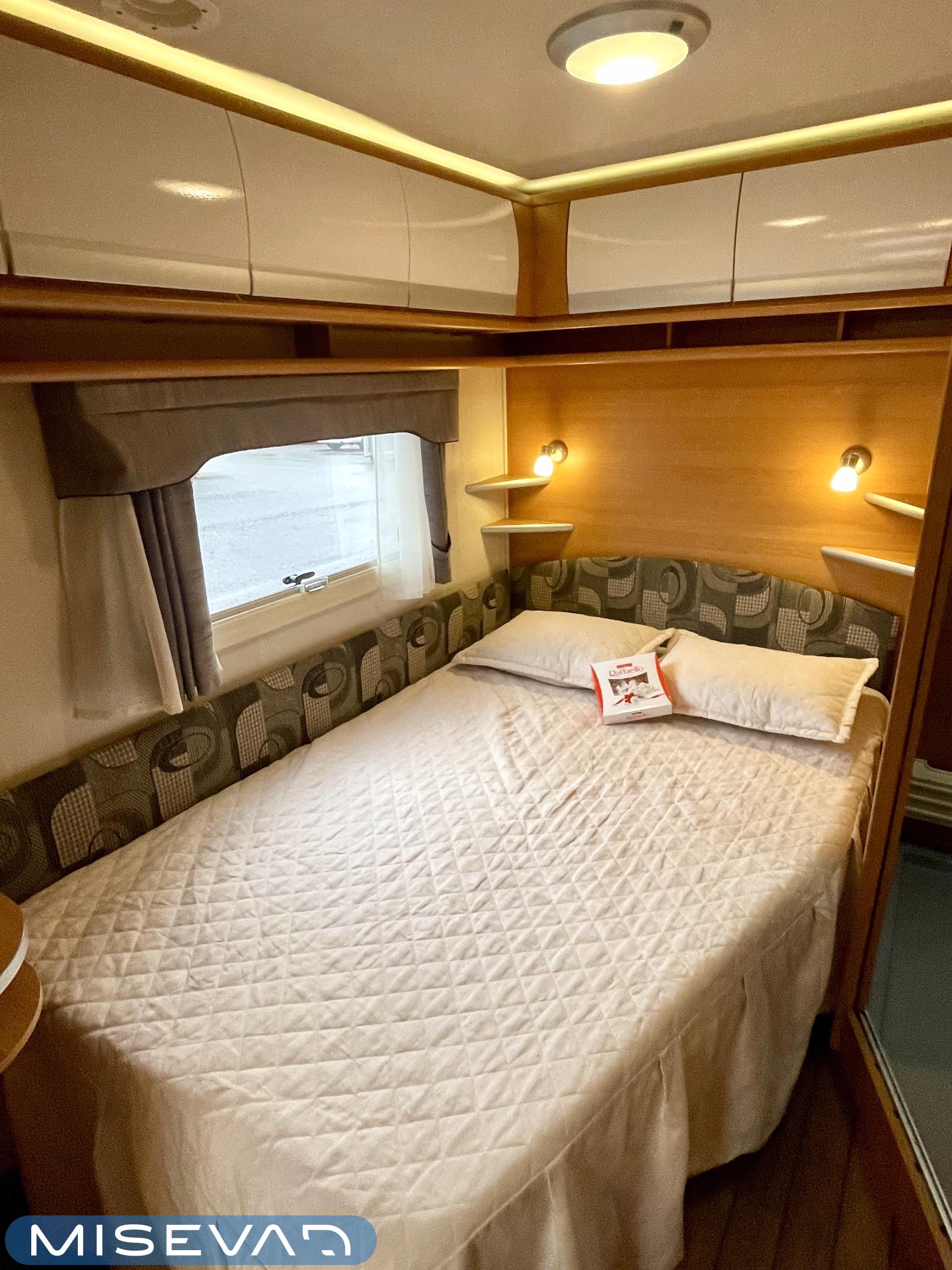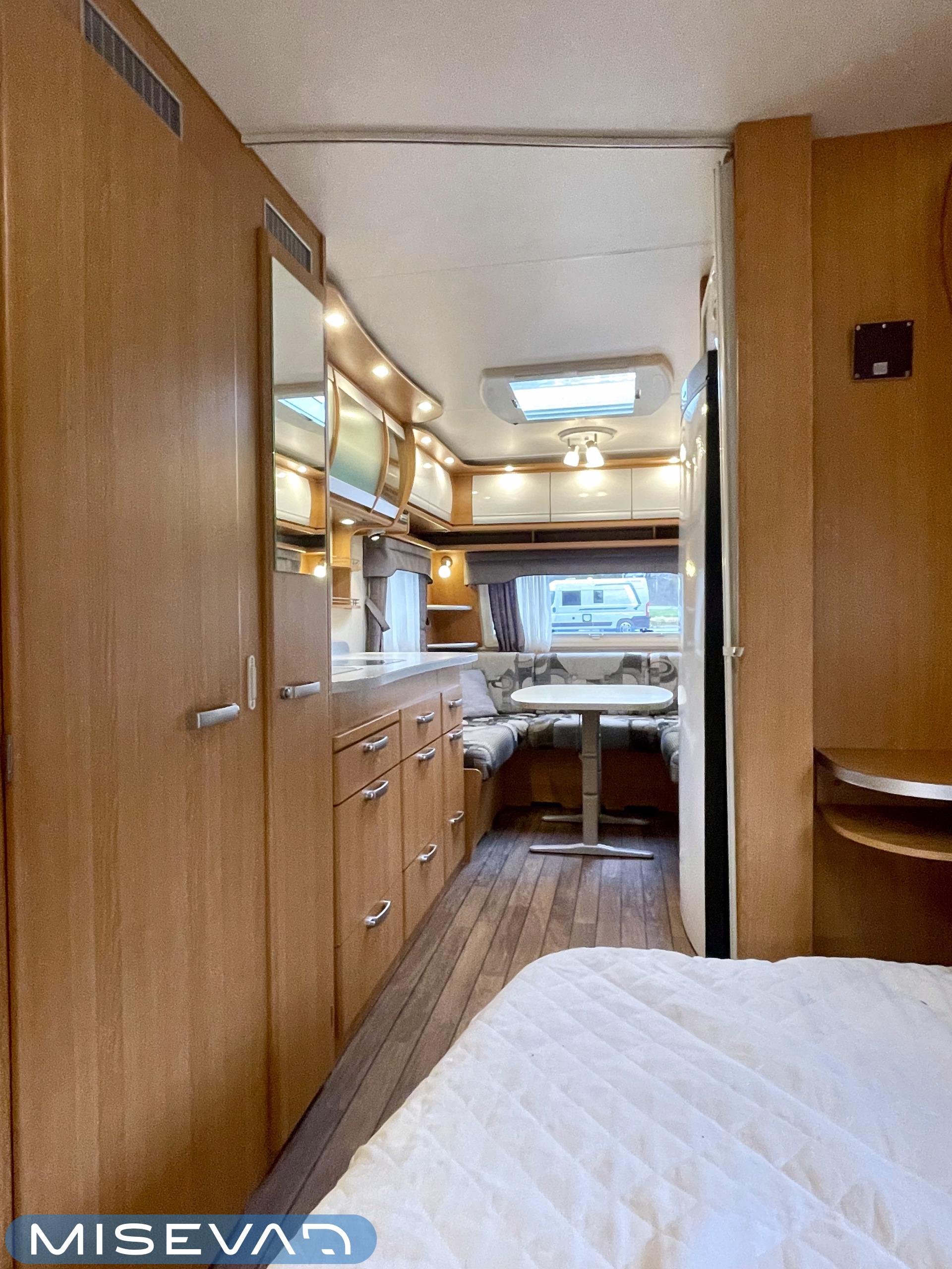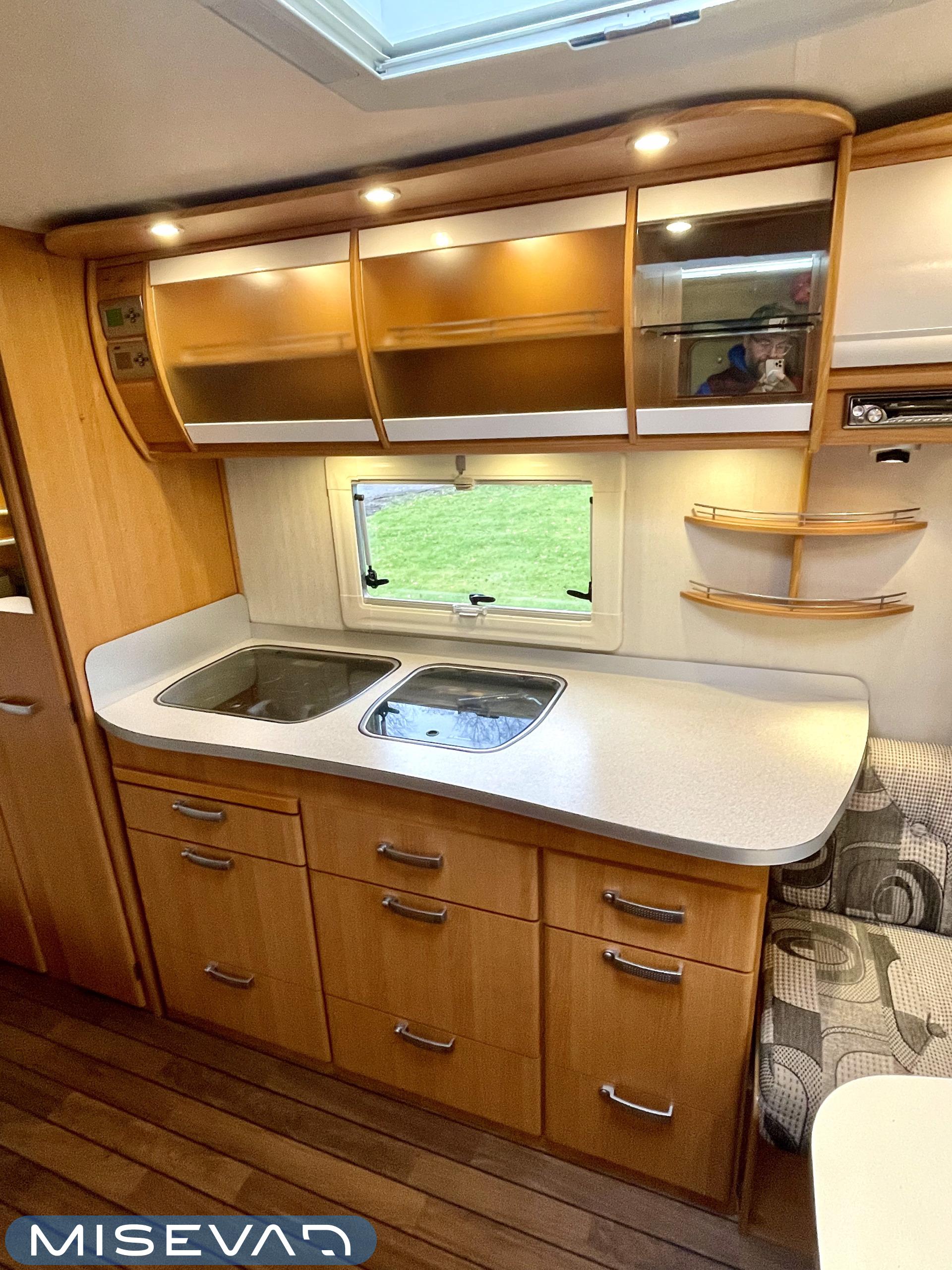 Cabbyt ei yleensä Misevan pihalla kovin pitkään viihdy, eikä tämä vaunu varmasti ole poikkeus. Kyseinen yksilö on ollut hyvällä pidolla ja siistissä kunnossa kaikinpuolin. Alden nestekiertoinen lämmitys tekee näistä myös haluttuja neljän vuodenajan vaunuja. Vaunun etuosassa on iso ruokailutila jopa kuudelle. Ja jos tykkäät ruoanlaitosta, niin tämä on tilojen puolesta suorastaan unelma. Pitkä keittiönpöytä ja yhdeksän vetolaatikostoa tekee keittiöstä todella mukavan ruoanlaittopisteen. Takaa löytyy pehmeä parisänky, jonka alla säilytystilaa. Ja suihkussakin pääsee käymään viereisessä huoneessa. Jääkaappi on mallia iso ja säilytystilaa tässä vaunussa on mukavasti kaappien muodossa. Tule tutustumaan paikanpäälle ja anna Cabbyn hurmata sinut.