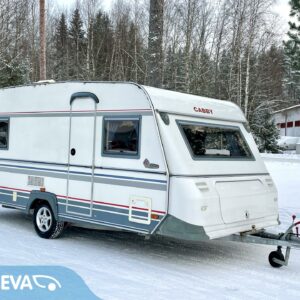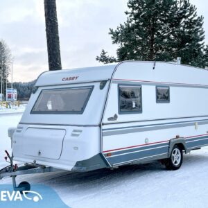 Maltillisen 1350kg kokonaispainon omaava Cabbyn laatuvaunu. Alden nestekiertolämmitys takaa tehokkaan ja tasaisen lämmöntuoton kovemmillakin pakkasilla. Lisäksi löytyy mukavuusvarusteena sähköinen lattianlämmitys. Vaunun takaosaan on sijoitettu pitkittäinen parivuode ja sen vieressä on tilavat WC/kylpyhuonetilat. Keskellä sijaitsee avara keittiö normaalilla keittiövarustuksella. Etuosaa hallitsee U-ryhmä mistä saadaan tarvittaessa sijattua vuode kahdelle henkilölle. Mainittakoon heti sisäänkäynnin vieressä olevasta vaatetilasta missä saa ulkovaatteet ja kengät säilytettyä siististi ja vaivattomasti. Näppärä vaunu hiljattain katsastettuna, tarkastettuna ja kaasulaittet koeponnistettuna valmiina uusiin retkiin.