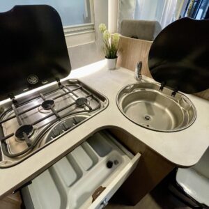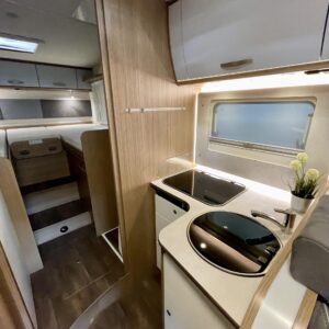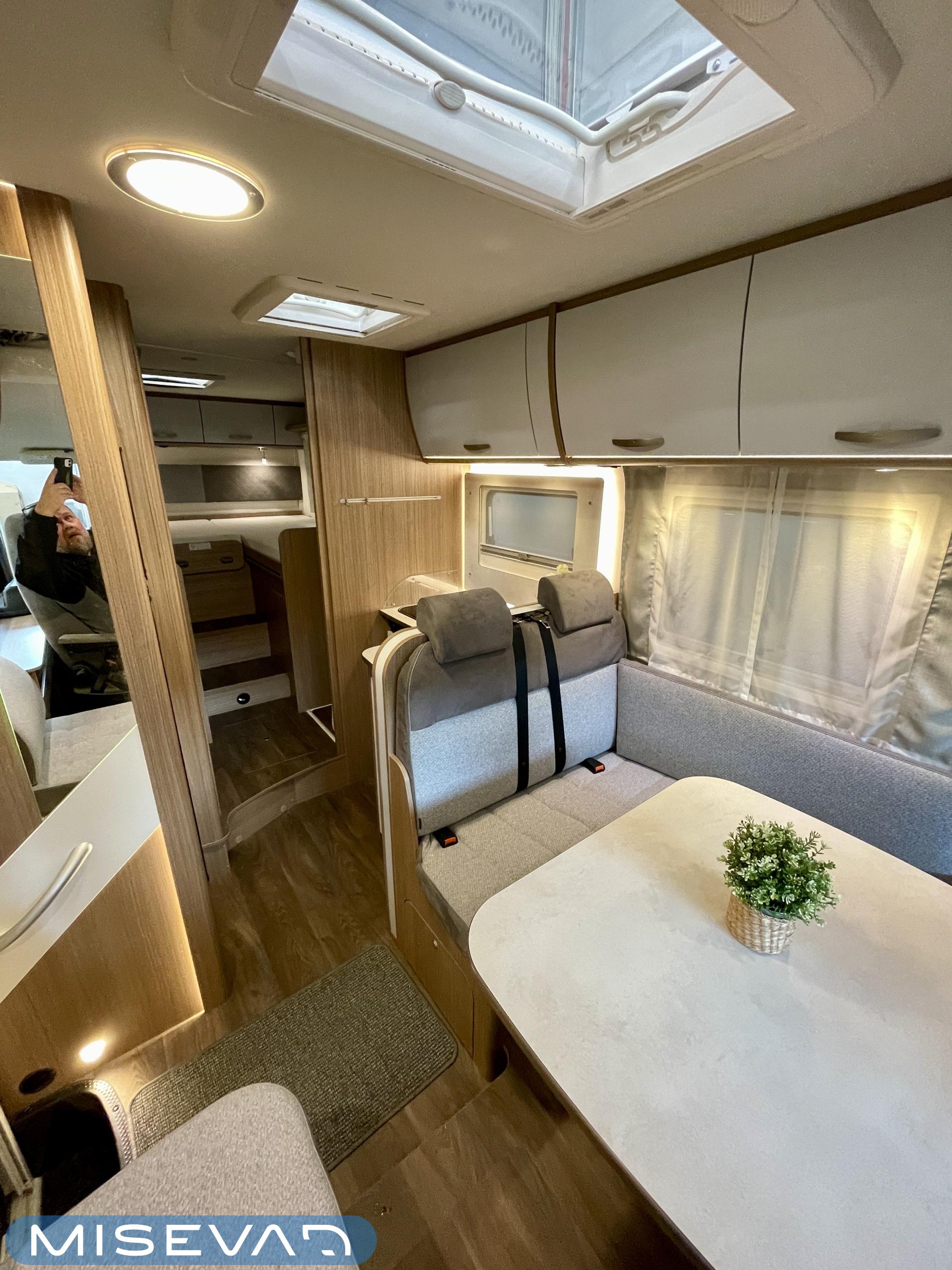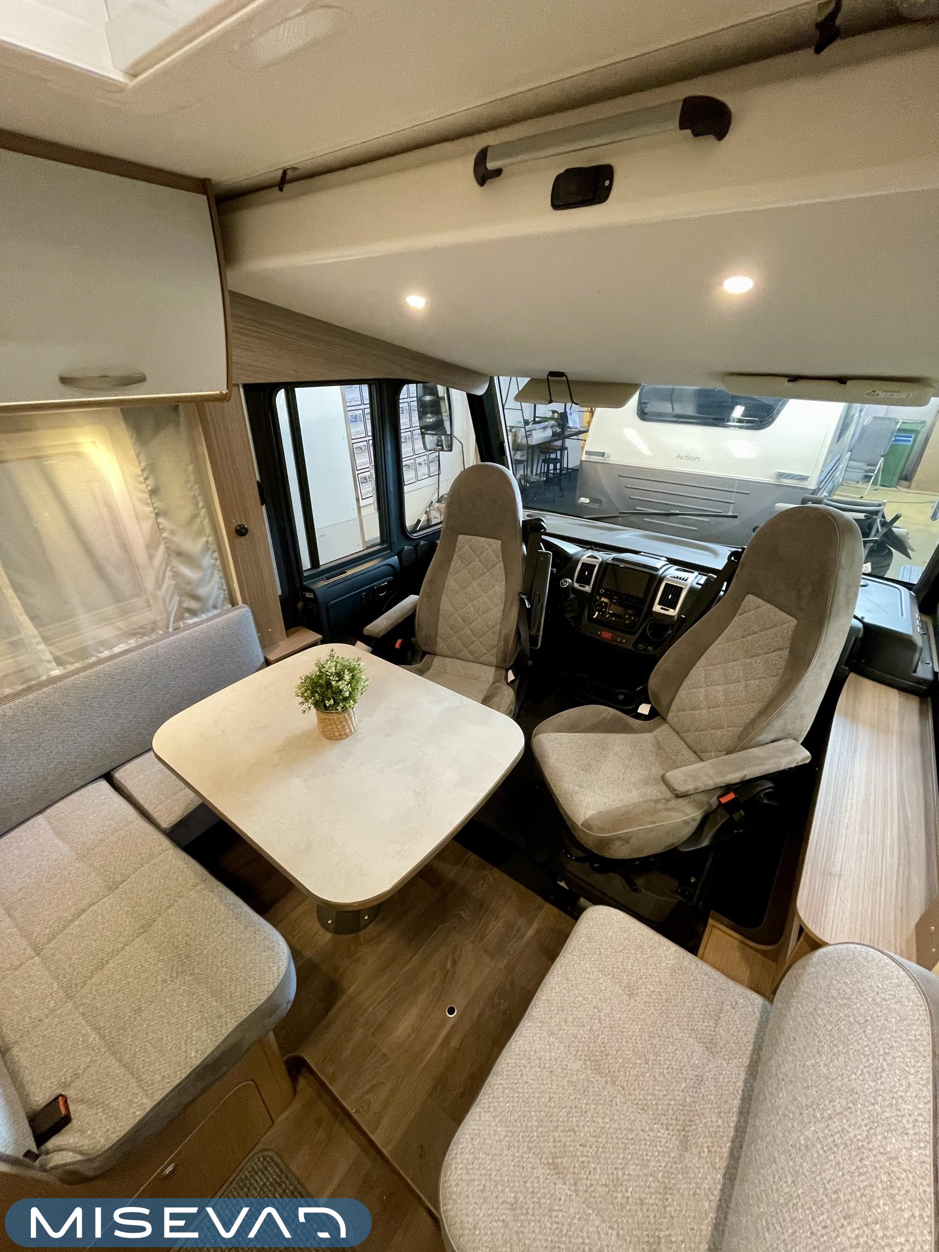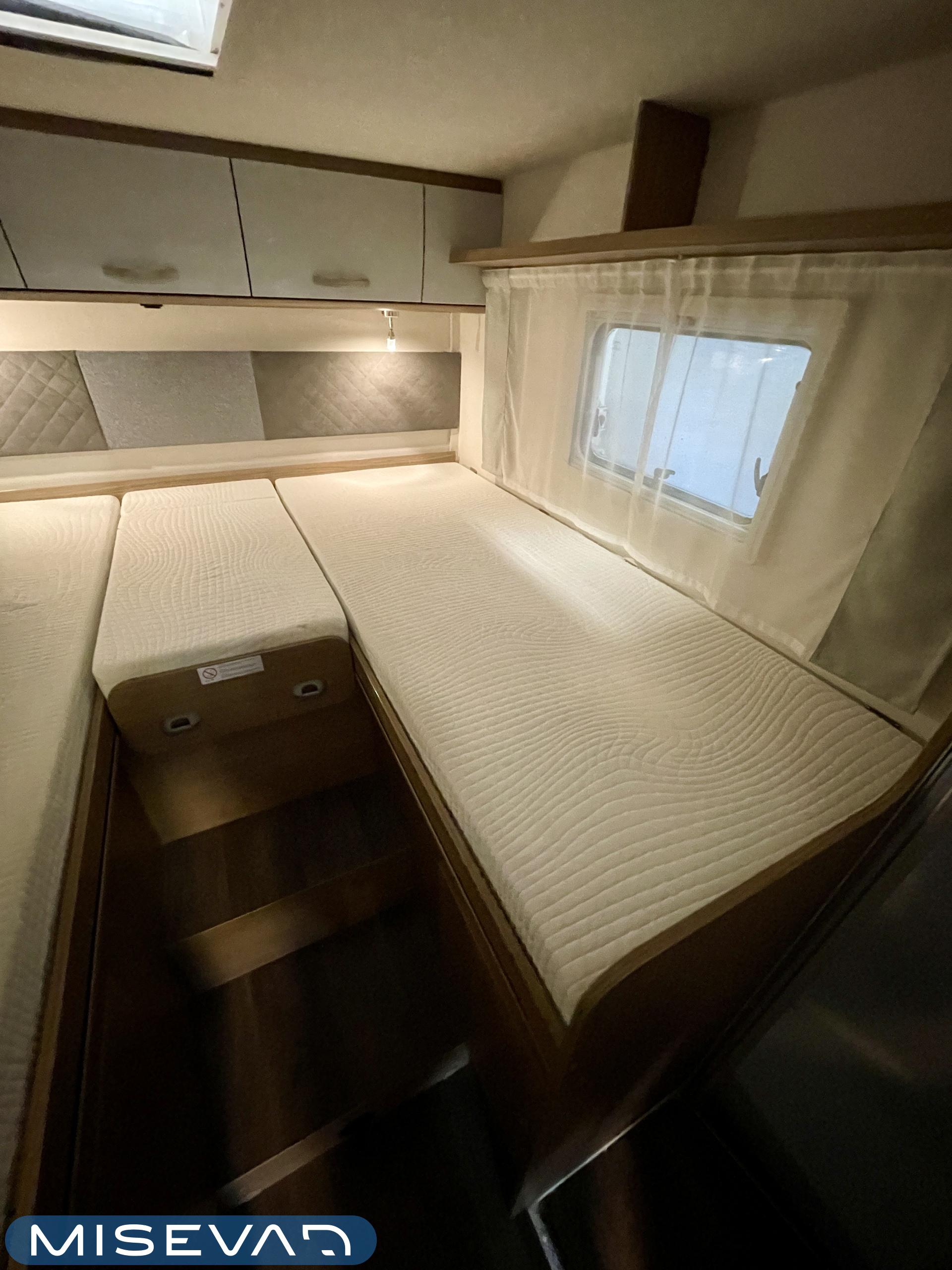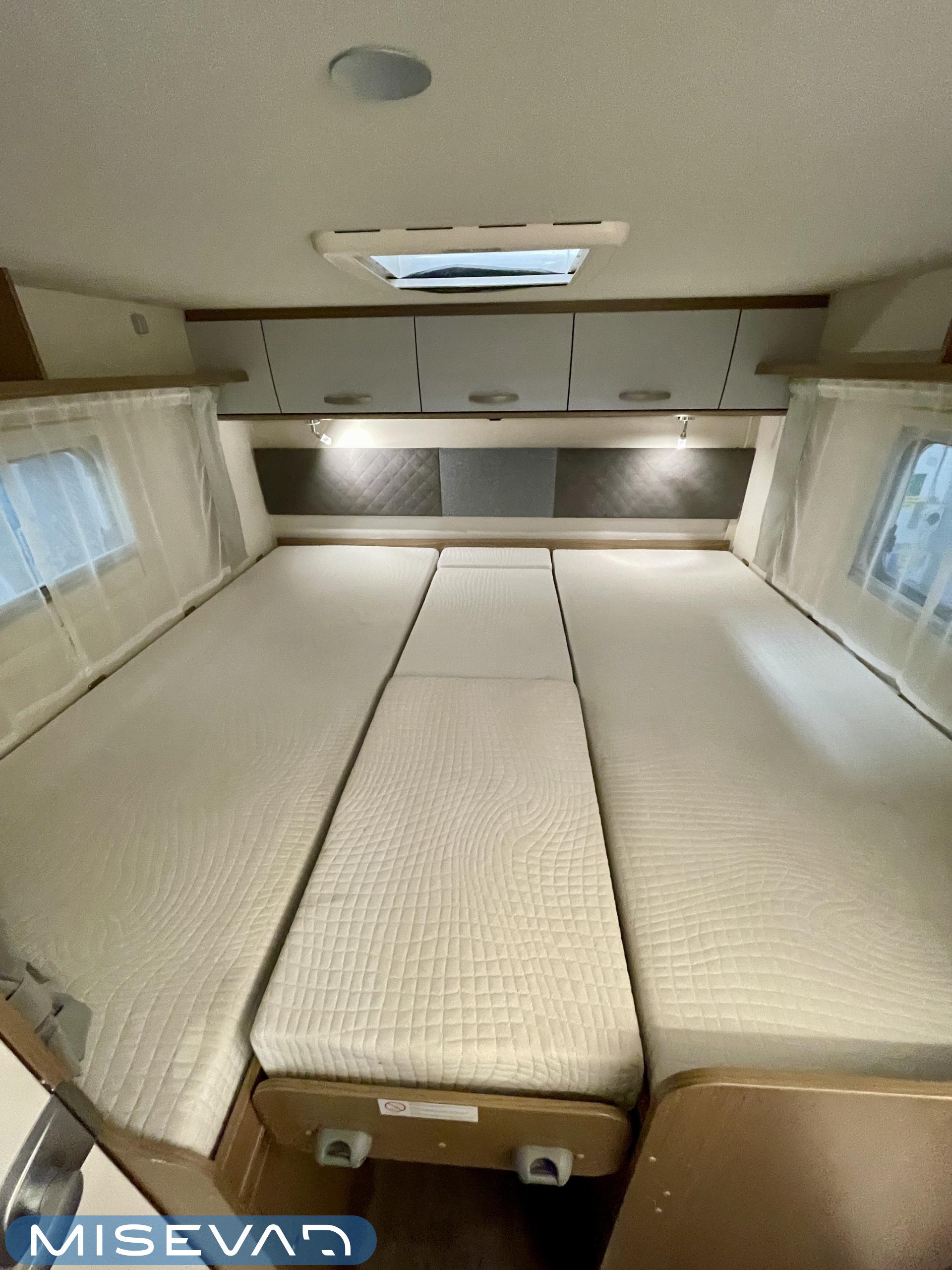 Tilava täysintegroitu matkailuauto, joka tekee matkanteosta nautinnon. Erillissängyt on helppo yhdistää mukana tulevan lisäpatjan avulla koko auton levyiseksi parivuoteeksi, ja ohjaamon päällä oleva suuri alaslaskuvuode tuo lisää mukavia nukkumapaikkoja.