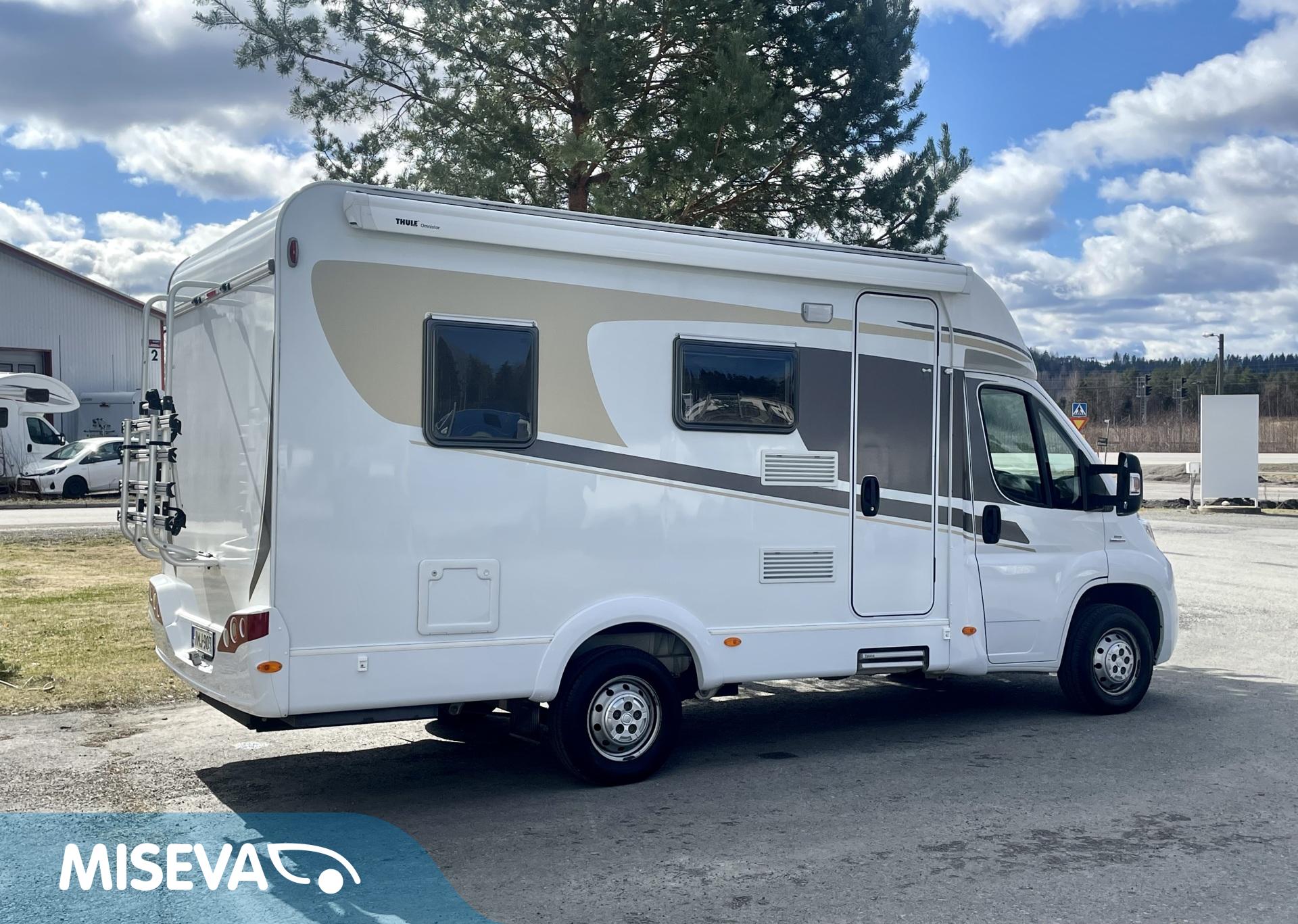 ABS-jarrut, Airbag, Ilmastointi: Manuaalinen, Jääkaappi, Kasetti WC, Kasettiverhot, Kattoluukku, Lattiamatot asunto-osassa, Liesi, Lohkolämmitin, Lämminvesiboileri, Markiisi, Navigaattori, Ohjaustehostin, Pakastelokero, Parivuode, Pesuallas, Pysäköintikamera, Radio, Suihku, Sähkökäyttöiset ikkunat, Sähköpeilit, Sähkörappu, Trumatic, Turbo, Vakionopeudensäädin, Ilmastointi (ohjaamo), Multimedialaite (sis. p-kamera, navi, soitin, bluetooth, handsfree), Asuinosan hyttysovi/verho, Polkupyöräteline