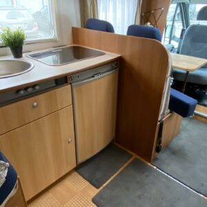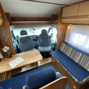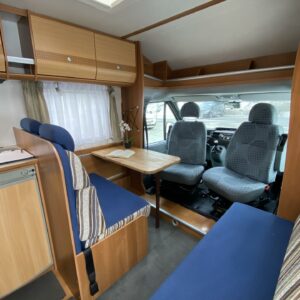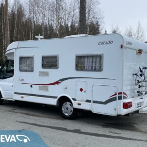 Viihtyisän tunnelman omaava Caradon matka-auto hyvillä varusteilla ja oikeinkin avaralla pohjaratkaisulla. Auton takaosasta löytyy pitkittäinen parivuode ja sen alle jää säilytystiloja tavaroille. Toiselta sivulta löytyy WC/kylpyhuonetilat. Keskellä autoa on keittiö, sekä säilytystiloja. Lattia on tästä kohdin hyvinkin avara ja tämä tarjoaa mukavasti tilaa kokkailuhommista pitäville ja keittiössä häärääville henkilöille. Mainittakoon vielä täyskorkea pariovellinen vaatekaappi, näitä harvoin näkee matkailuautossa. Etuosaa hallitsee pöytäryhmä kääntyvillä etuistuimilla ja leveällä sivusohvalla. Siinä on mukava iltaa istuskella isommallakin ryhmällä. Pöytäryhmä ja sivusohva kun yhdistetään, niin saadaan poikittainen vuode esim. kahdelle lapselle. Ilmastointejakin löytyy kaksin kappalein, eli ohjaamoon oma ja asuintilaan oma yksikkönsä. Ohjaamovarusteissa on myös vakionopeuden säädin. Lämmitysjärjestelmänä on nopeasti lämmön tuottava Trumaticin ilmakeskuslämmitys. Myös sähköinen lattianlämmitys löytyy varustelistalta. Auton ulkopuolen varusteita on mm. markiisi, pyöräteline ja kaasun ulosotto. Juuri katsastettu ja tarkastettu auto valmiina tien päälle.