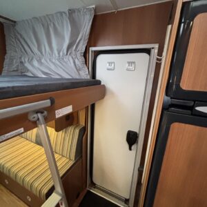 2 + 2 vuoteilla oleva matka-auto valmiina seuraavalle karavaaniharrastajalle. Autoon sisälle tultaessa saavumme ”olohuoneeseen” missä on pöytäryhmä, kahden hengen sivusohva ja kääntyvät kipparinpenkit. Tähän saa varsin mukavan ruokailu/seurusteluryhmän jopa kuudelle hengelle. Pöytäryhmän yläpuolella on laskuvuode missä yöpyy kaksi henkilöä. Huomattavaa on, että vaikka vuode on ala-asennossa, niin käyntiovesta mahtuu kulkemaan suorin vartaloin (useasti joutuu kumartuen menemään vuoteen alta). Pöytäryhmästä saadaan lisäksi vielä tarvittaessa värkättyä tilapäisvuode lapselle. Taakse päin siirryttäessä saavumme keittiöön mistä löytyy mm. iso jääkaappi erillisellä pakastinlokerolla. Auton takaosaan on sijoitettu pitkittäinen parivuode, sekä kylppäritilat missä on erillinen suihkutila. Asunto-osan lämmitysjärjestelmänä on tehokas (6kw) Trumaticin ilmakeskuslämmitys minne on integroitu myös lämminvesiboileri. Ohjaamossa kuljettajaa hellitään vakionopeuden säätimellä, ilmastoinnilla, sähkösäätöisillä peileillä ja ikkunoilla, sekä Pioneerin multimediasoittimellä mikä toimittaa myös navin ja peruutuskameran virkaan. Ajohommat hoituvat ihan tavallisella B-luokan henkilöautokortilla ja rekisteröidyt matkustuspaikat on neljälle henkilölle.