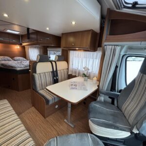 ABS-jarrut, Airbag, Ajotietokone, Jääkaappi, Kahdet renkaat, Kasetti WC, Kasettiverhot, Kattoluukku, Keskuslämmitys, Liesi, Lämminvesiboileri, Markiisi, Ohjaustehostin, Pakastelokero, Parivuode, Pesuallas, Pysäköintikamera, Pyöräteline, Suihku, Sähkökäyttöiset ikkunat, Sähköpeilit, Sähkörappu, Trumatic, Vakionopeudensäädin, Ilmastointi (ohjaamo), Kesärenkaat, Talvirenkaat(nasta), laskuvuode, Asuinosan hyttysovi/verho