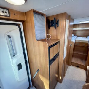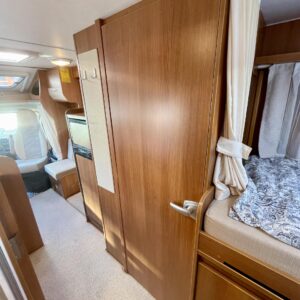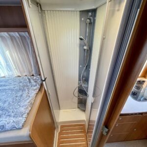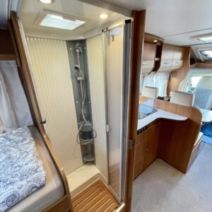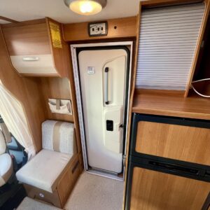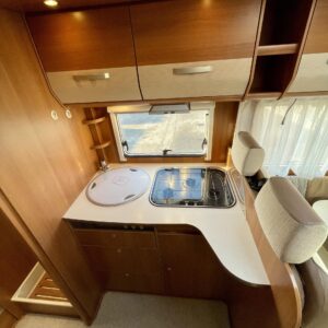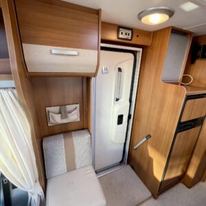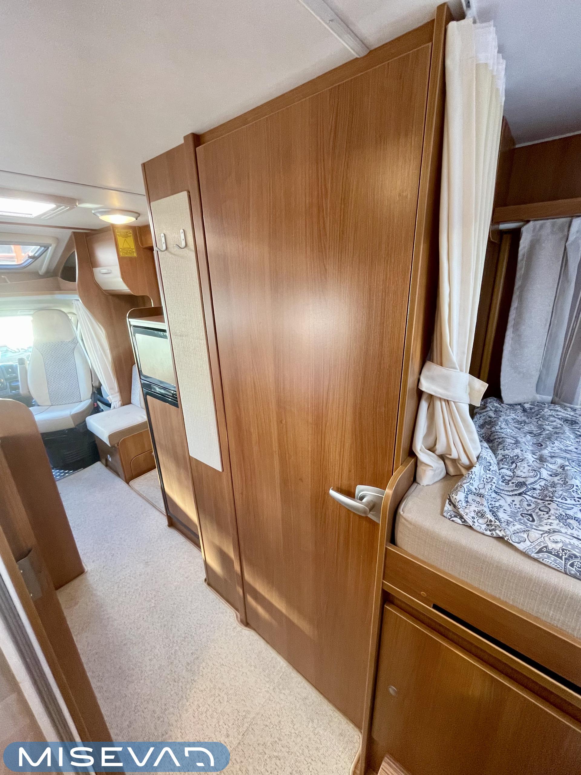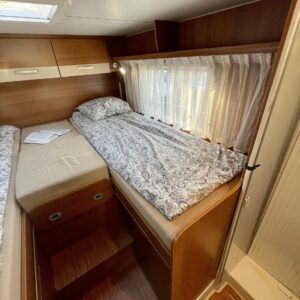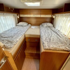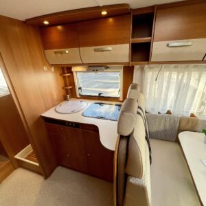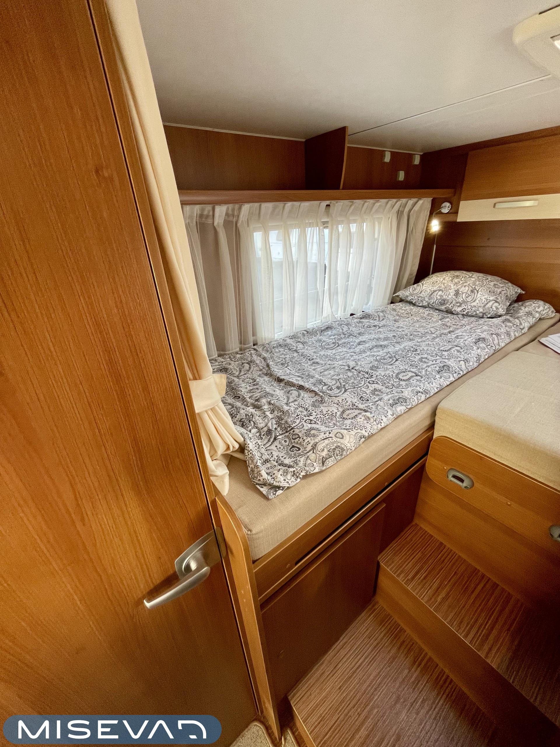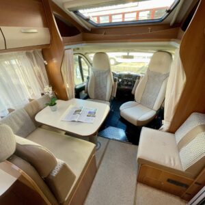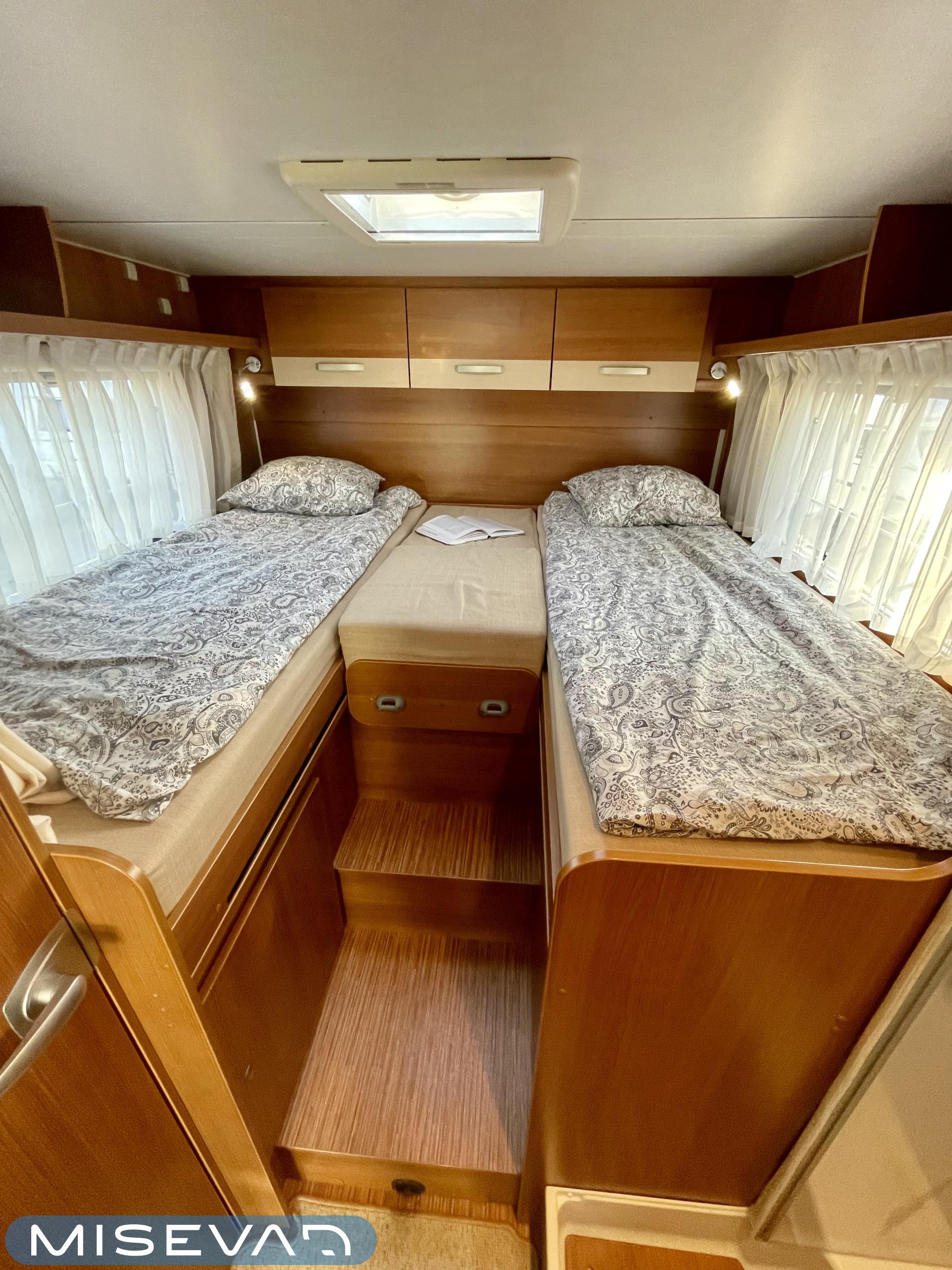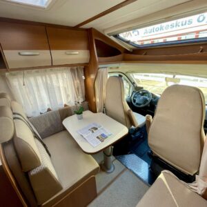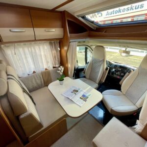 Auton takaosassa on pitkittäiset erillisvuoteet ja erilliset suihku-/ WC- tilat. Vuoteiden alla on iso läpilastattava takatalli. Avarassa ja valoisassa etuosassa on lyhyellä sivusohvalla varustettu L- sohvaryhmä, jonka ympärille mahtuu mukavasti kuusi henkeä. Keittiön varustukseen kuuluu iso jääkaappi- pakastin.