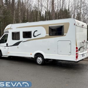Markiisi, Erillisvuoteet, ABS-jarrut, Huoltokirja, Ilmastointi ajotilassa, Jääkaappi, Kasetti WC, Kasettiverhot, Lämminvesiboileri, Pysäköintikamera, Pyöräteline, Sähköpatruuna, Trumatic, Lattialämmitys, Liesi, liesituuletin, Vakionopeudensäädin