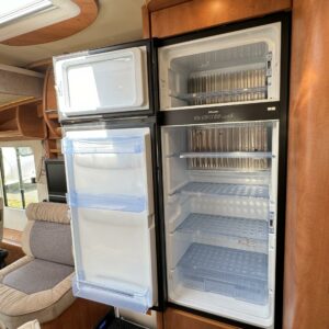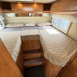 Auton takaosassa erillisvuoteet, etuosassa valoisa pöytäryhmä jopa kuudelle illansistujalle. Lisäksi keittiö isolla jääkaappipakastimella sekä leveä laskuvuode ohjaamon päällä. Auton keskellä keittiö sekä WC- / Suihkutila.
