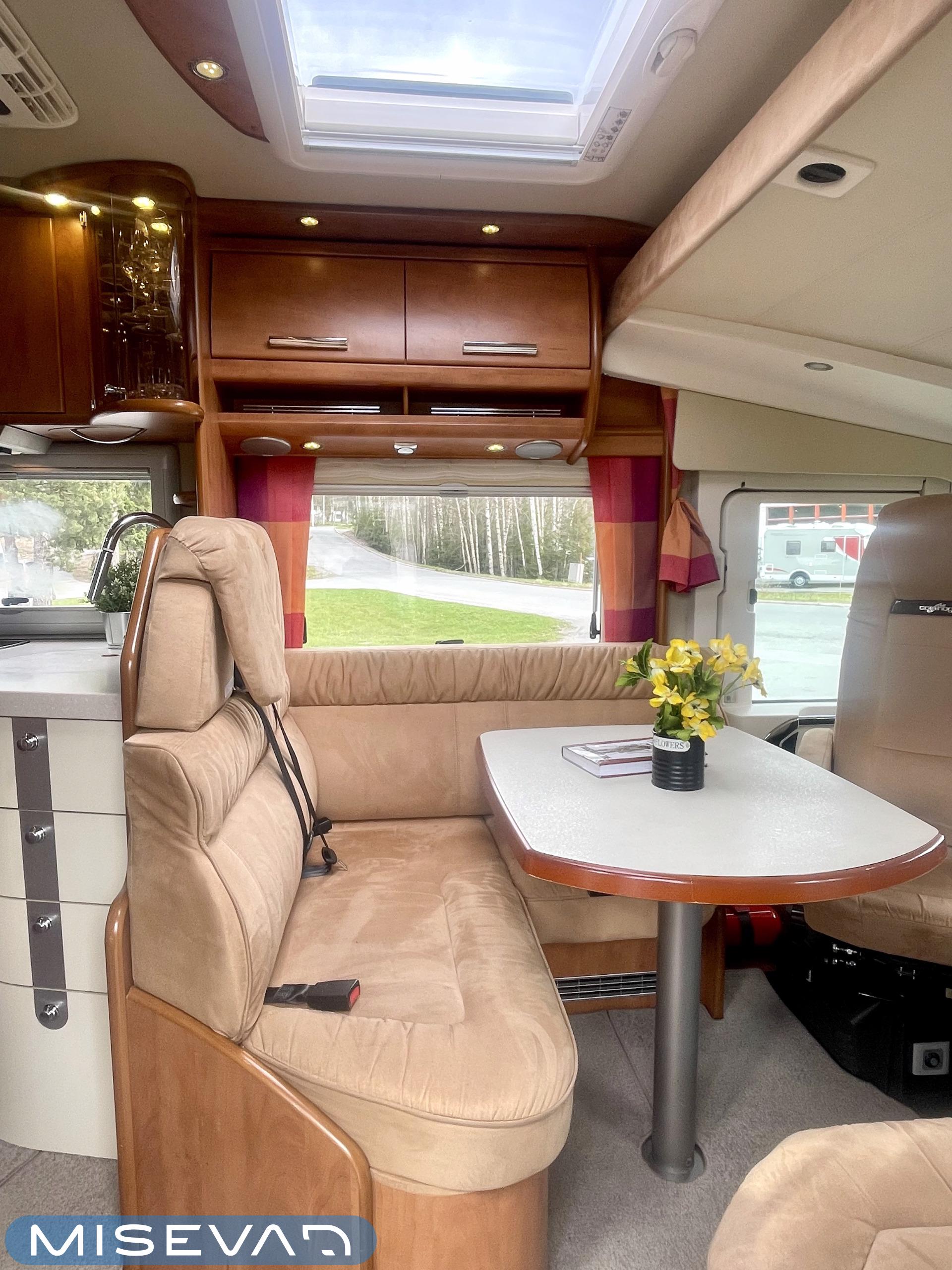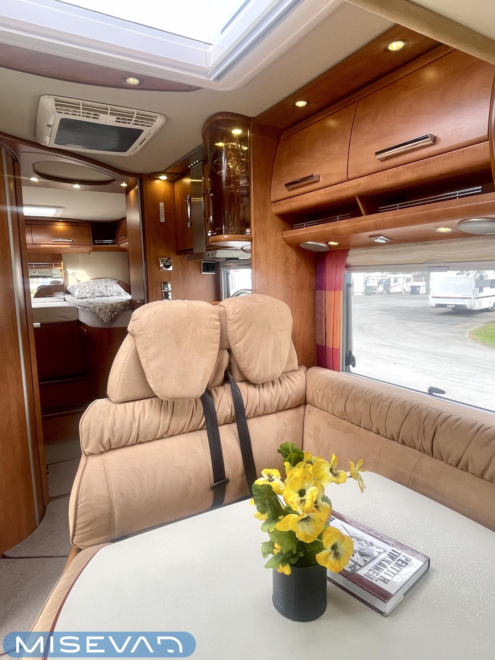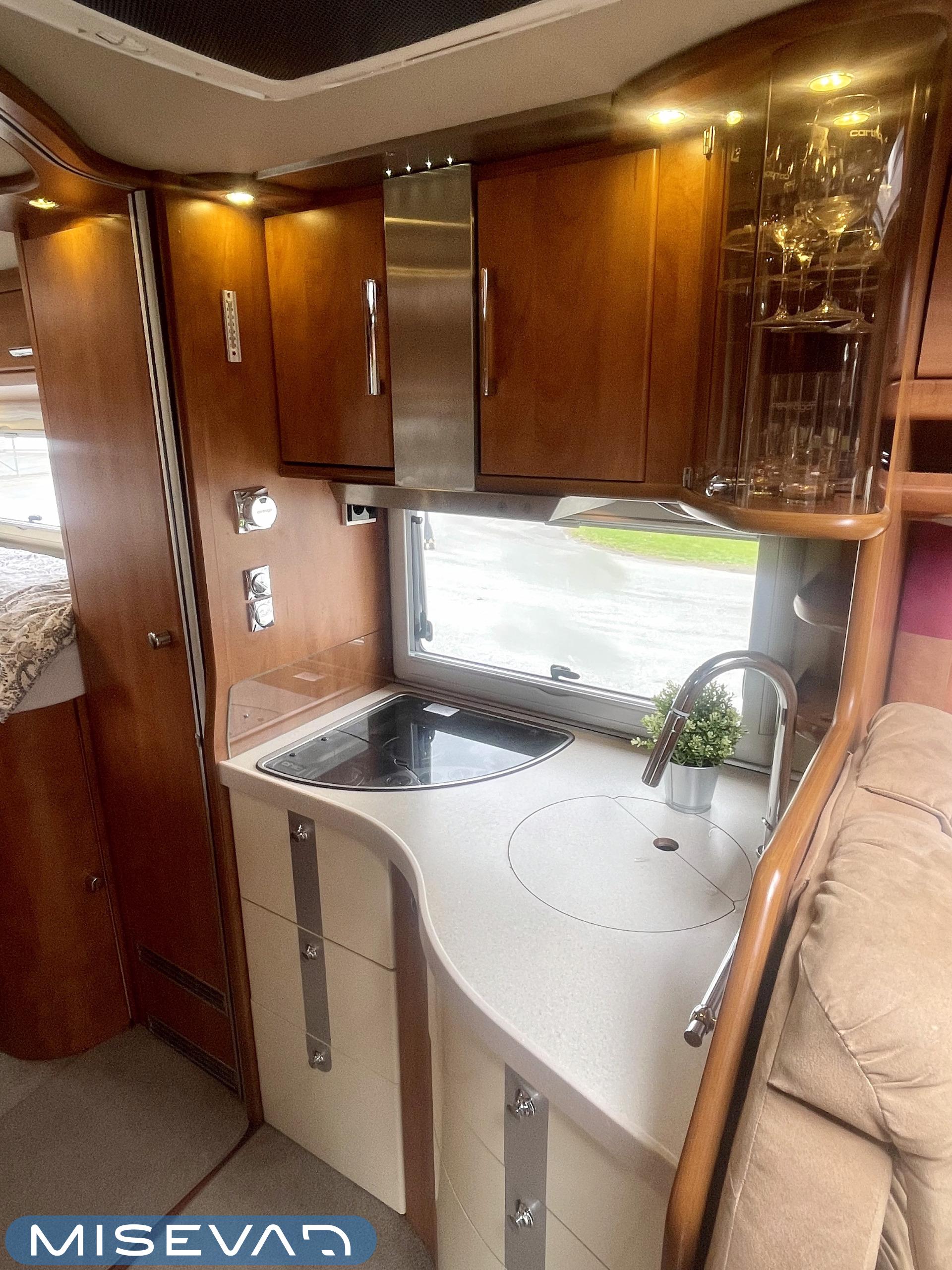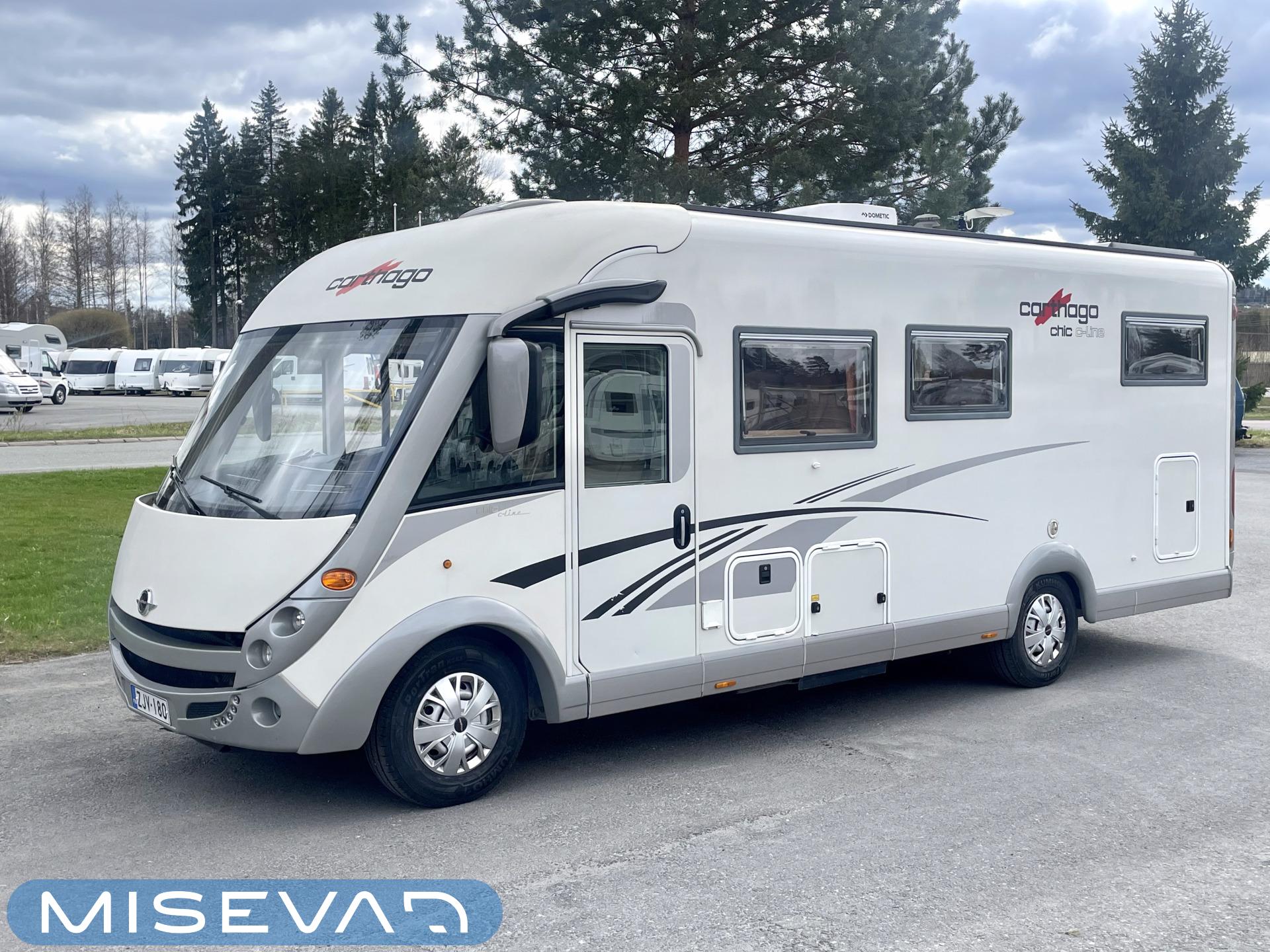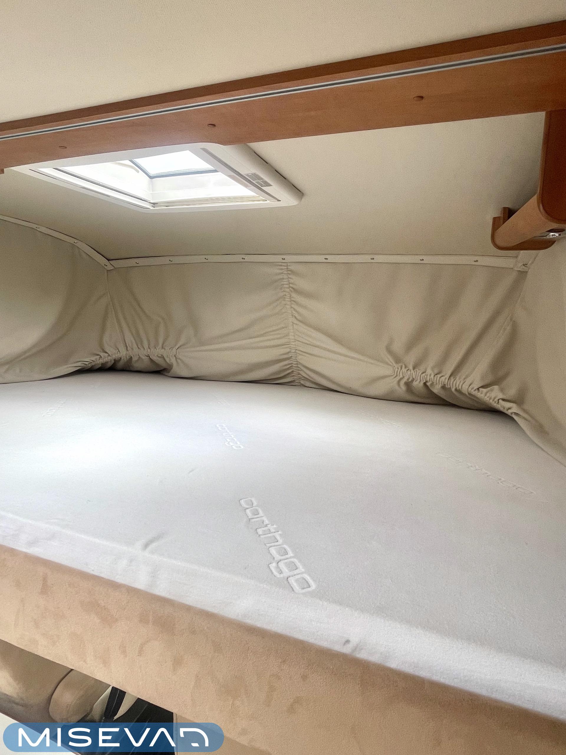 Hanki elämääsi hitunen luxusta ja tule tutustumaan Carthagon kartanoon. Värimaailmassa on mietitty hillittyjä värejä ja teema jatkuu läpi auton. Takana löytyy erillissängyt, jotka saa muutettua isoksi kartanon sängyksi. Keittiö palvelee kartanon kokkia hyvillä kaappitiloilla ja isolla jääkaappi- /pakastin yhdistelmällä. Keittiön ja ruokailutilan välistä löytyy hitunen eleganssia lasivitriinin muodossa. Mikäs sen parempaa kuin nautti kesäkuumalla juomia Carthagon omista laseista. Ruokailupöydän ympärille mahtuu koko perhe tai isompikin porukka viettämään iltaa. Ajotilan yläpuolelta löytyy alas laskettava iso sänky. Varusteissakin löytyy. Kartano ei jätä talvipakkasilla kylmäksi. Eikä kesän helteet tunnu missään.