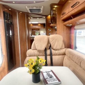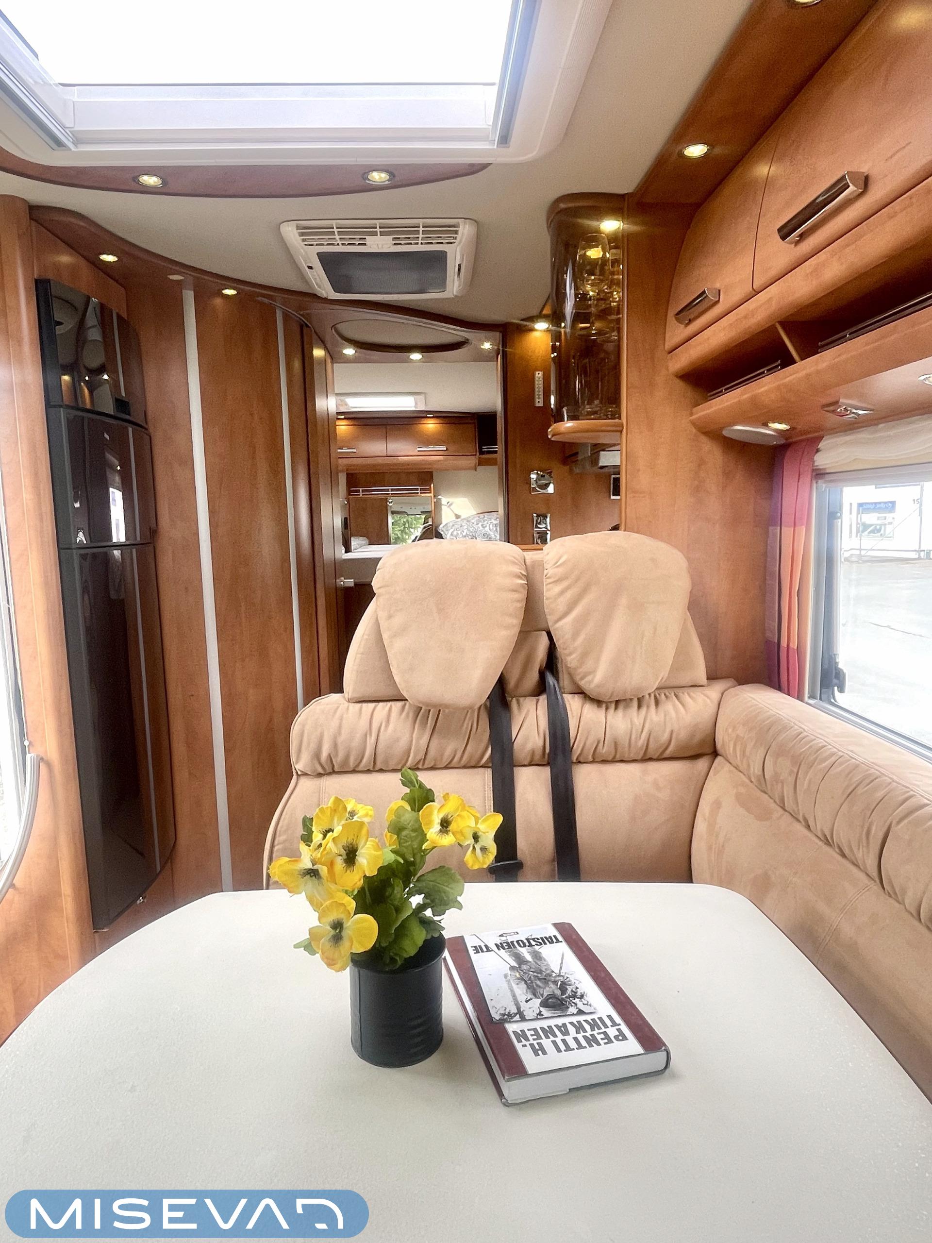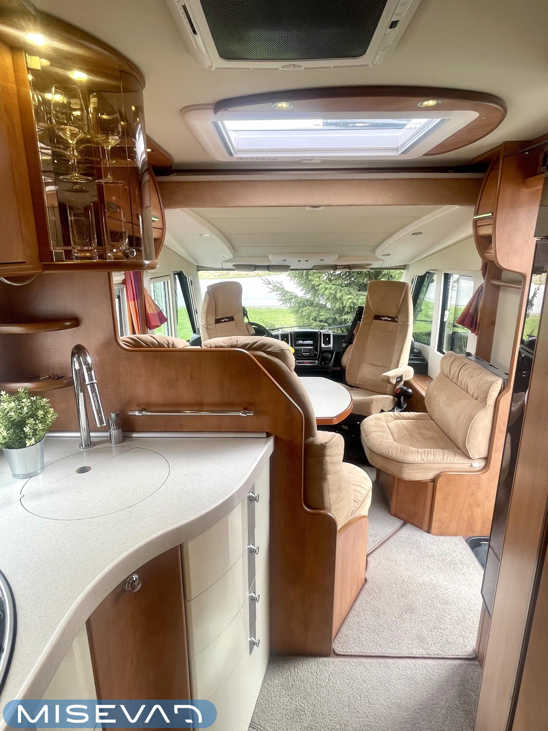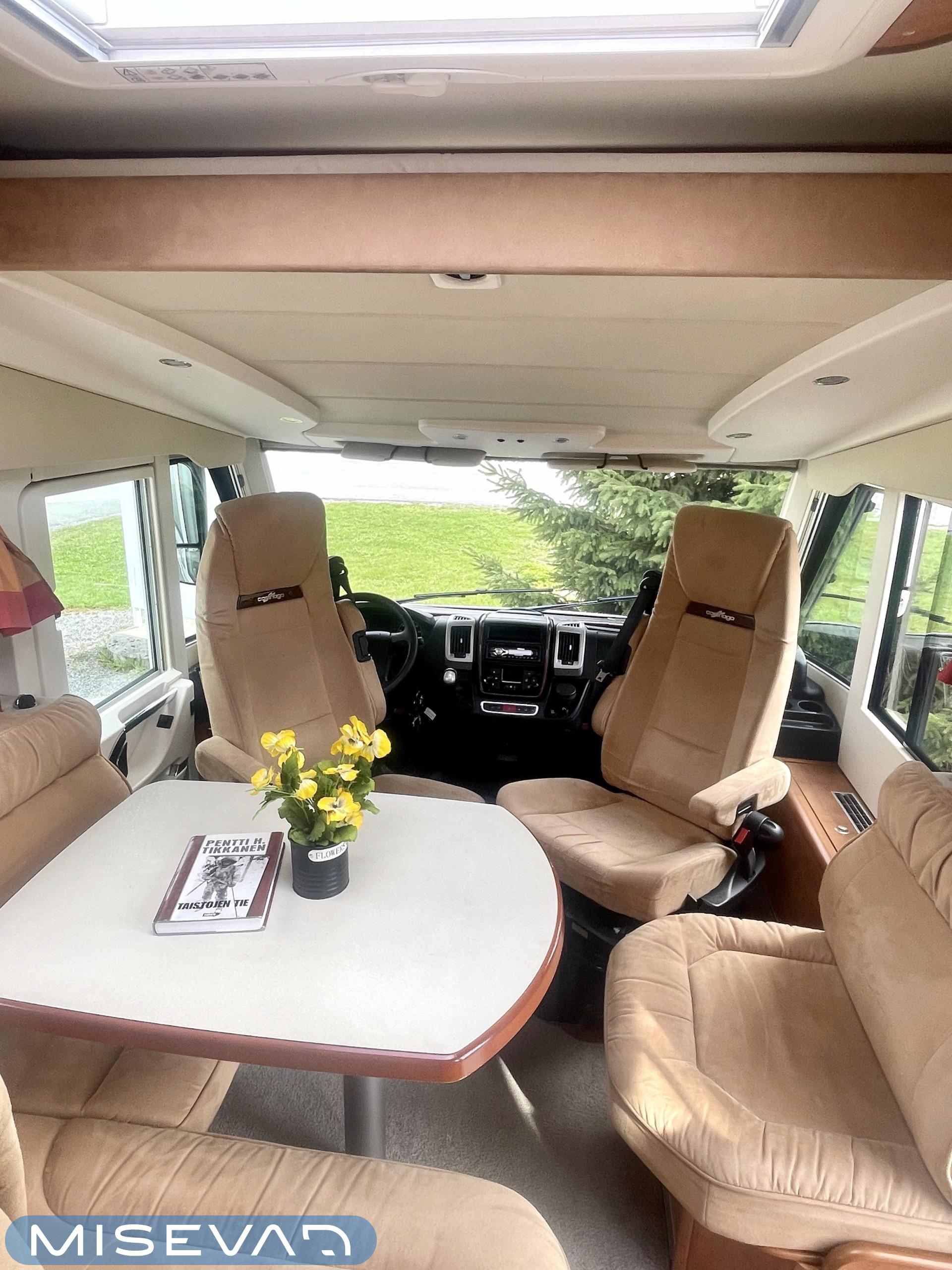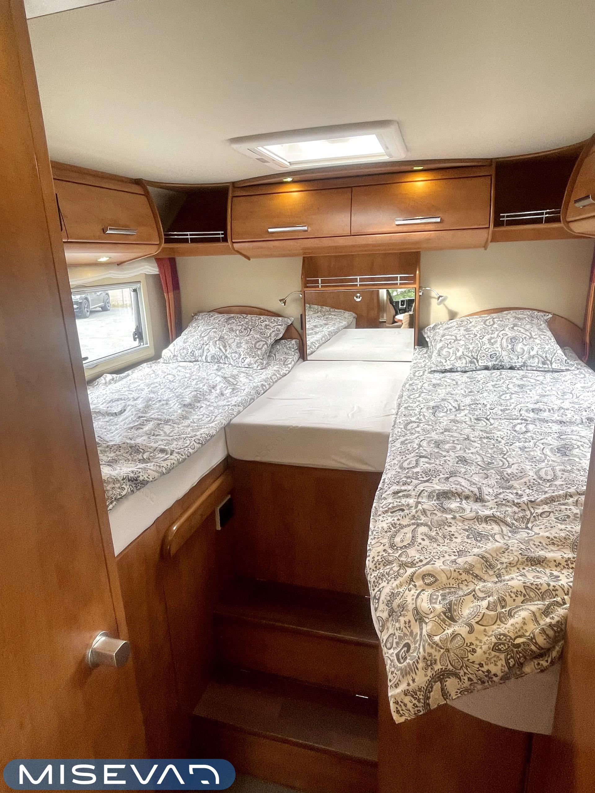 Hanki elämääsi hitunen luxusta ja tule tutustumaan Carthagon kartanoon. Värimaailmassa on mietitty hillittyjä värejä ja teema jatkuu läpi auton. Takana löytyy erillissängyt, jotka saa muutettua isoksi kartanon sängyksi. Keittiö palvelee kartanon kokkia hyvillä kaappitiloilla ja isolla jääkaappi- /pakastin yhdistelmällä. Keittiön ja ruokailutilan välistä löytyy hitunen eleganssia lasivitriinin muodossa. Mikäs sen parempaa kuin nautti kesäkuumalla juomia Carthagon omista laseista. Ruokailupöydän ympärille mahtuu koko perhe tai isompikin porukka viettämään iltaa. Ajotilan yläpuolelta löytyy alas laskettava iso sänky. Varusteissakin löytyy. Kartano ei jätä talvipakkasilla kylmäksi. Eikä kesän helteet tunnu missään.