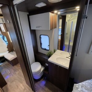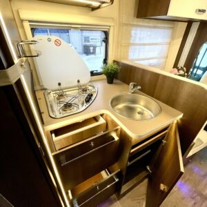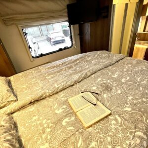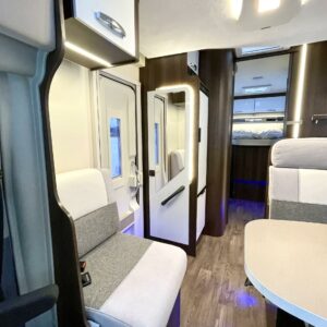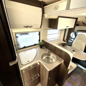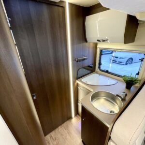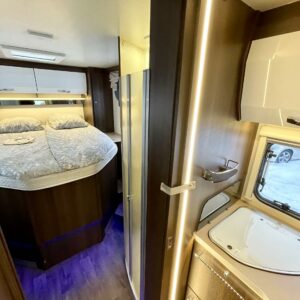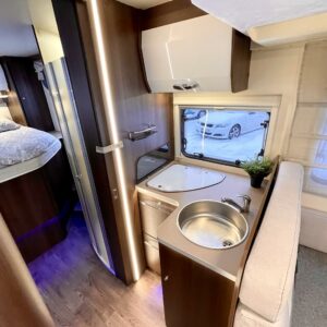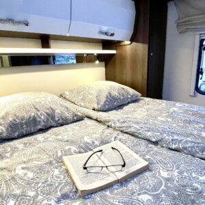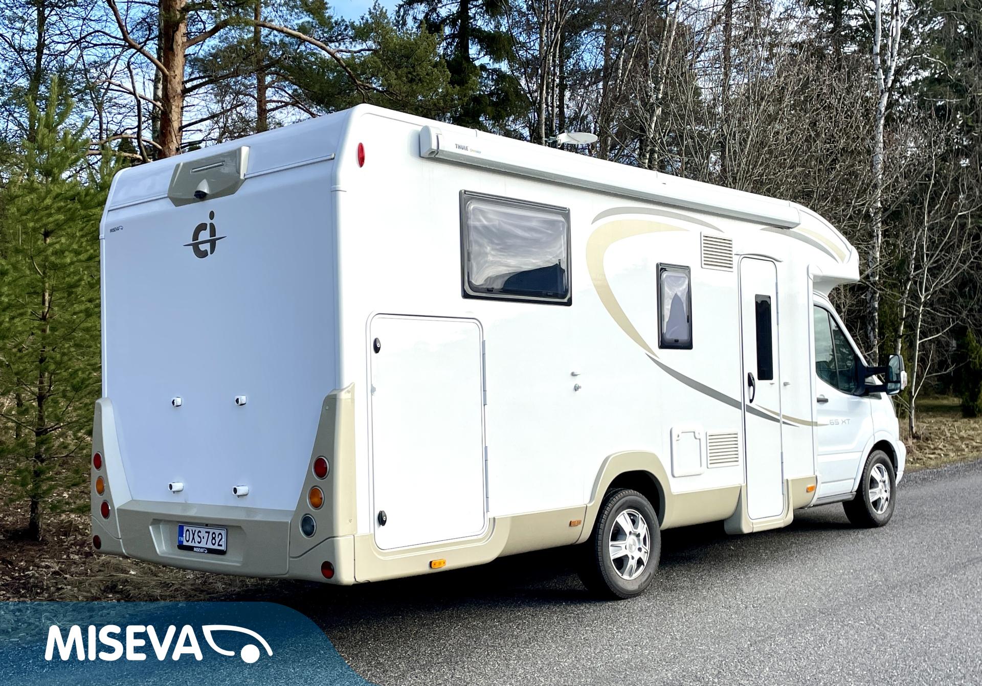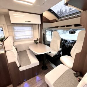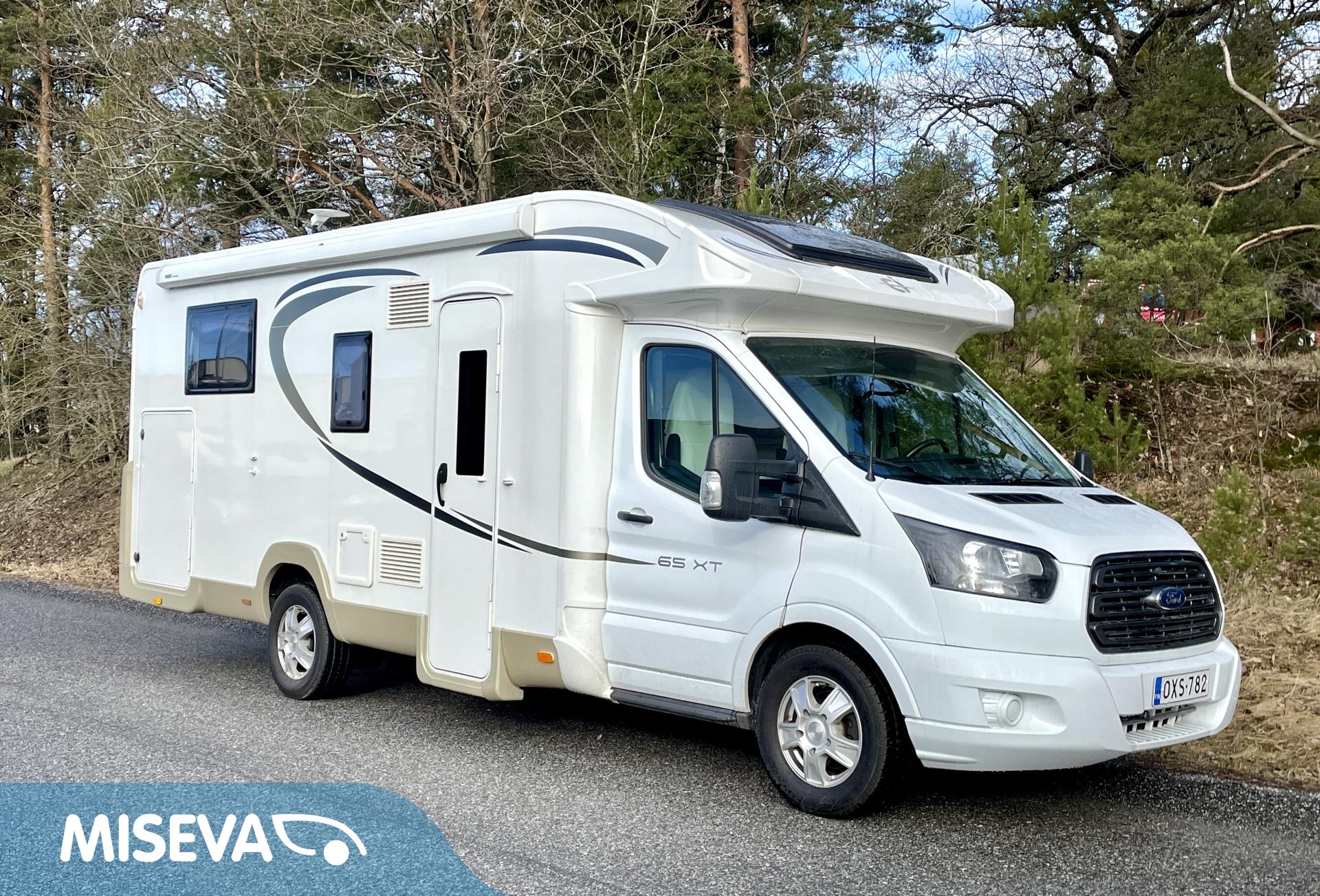 Uudehko puoli- integroitu matka- auto korkeussäädettävällä parivuoteella, suurella takatallilla ja tehokkaalla 170hv- koneella.