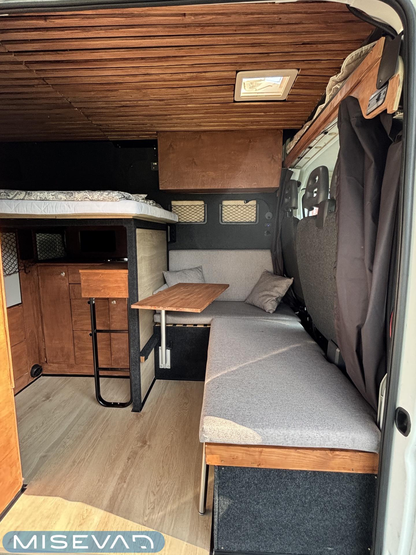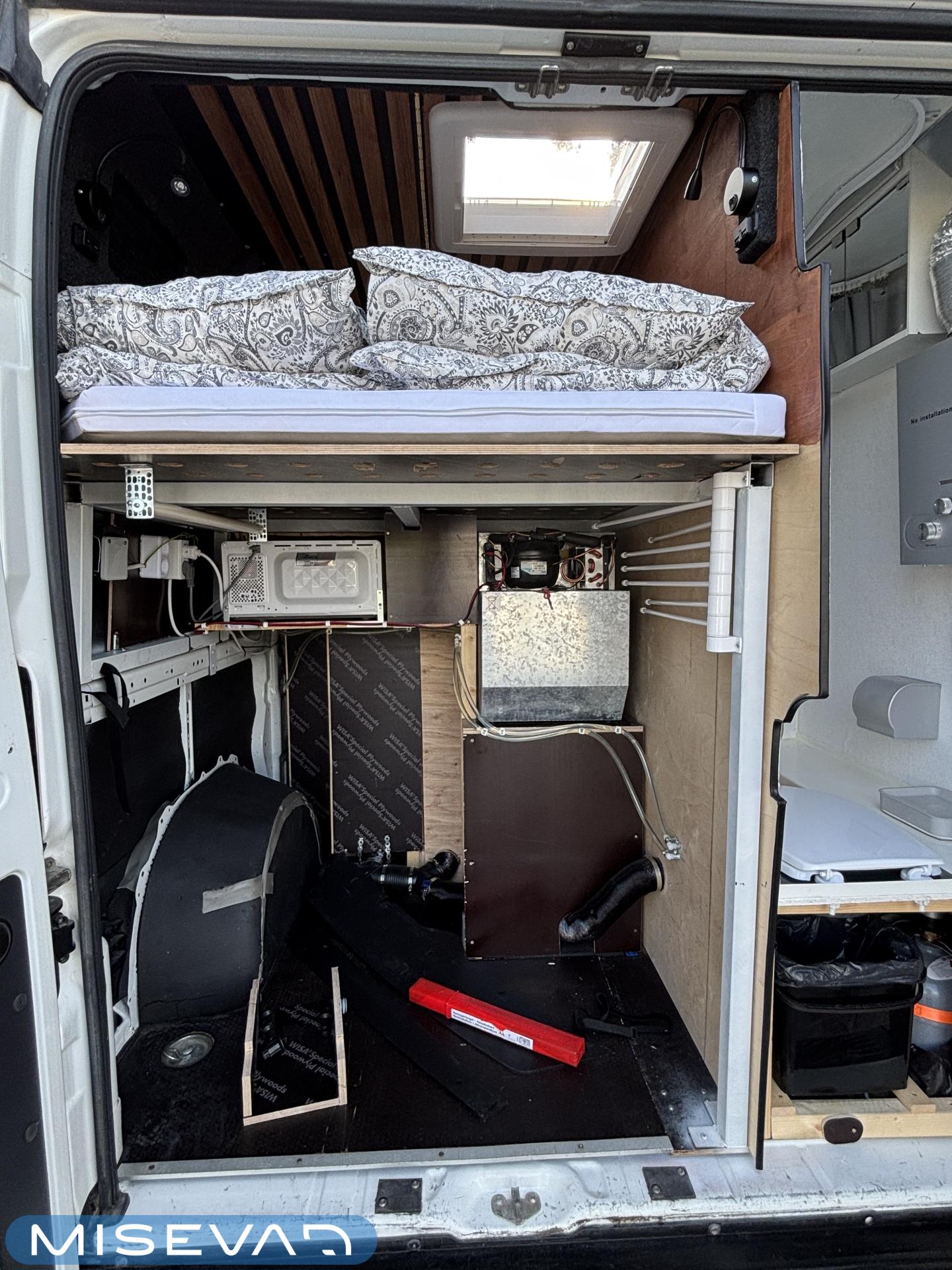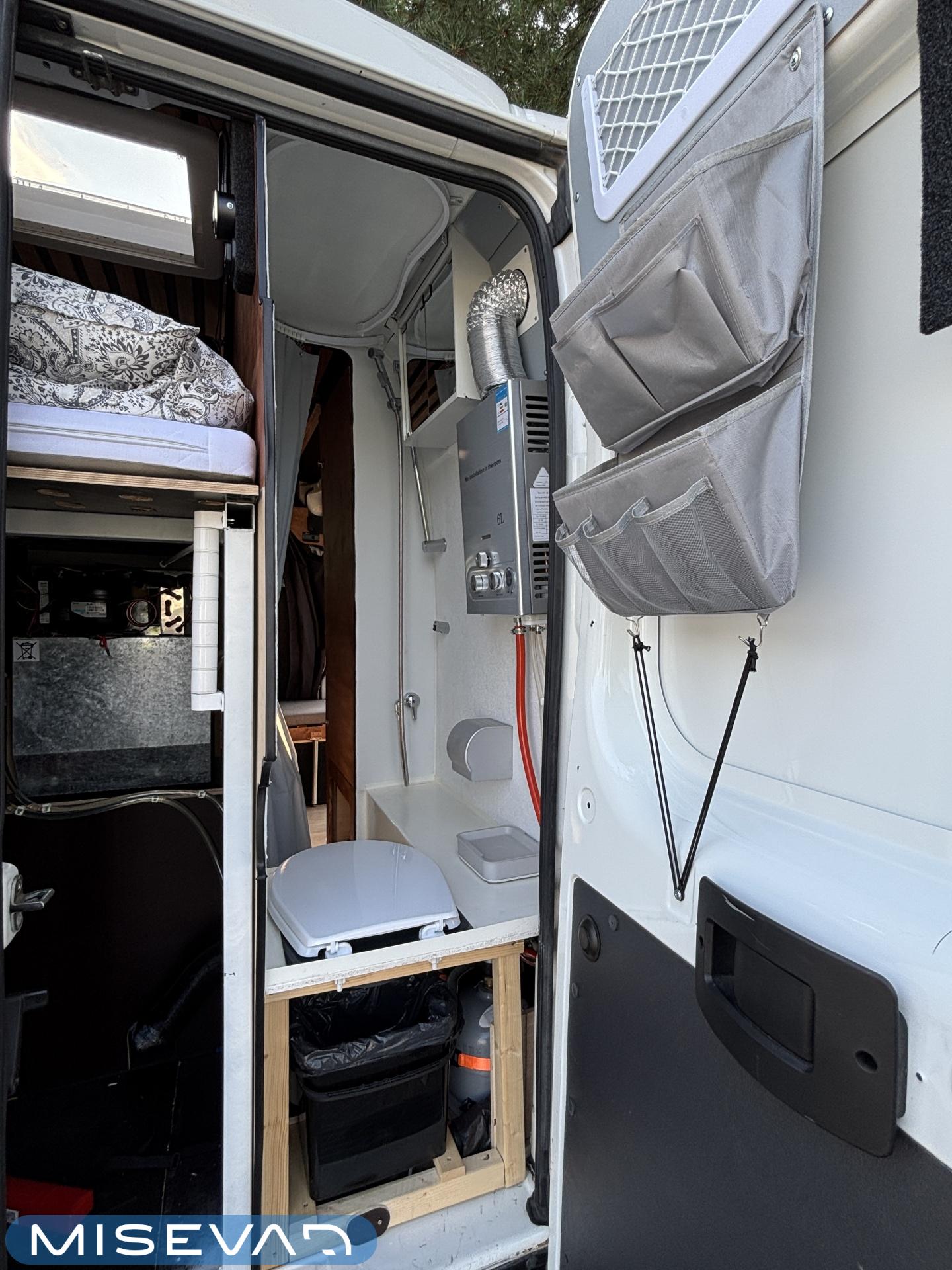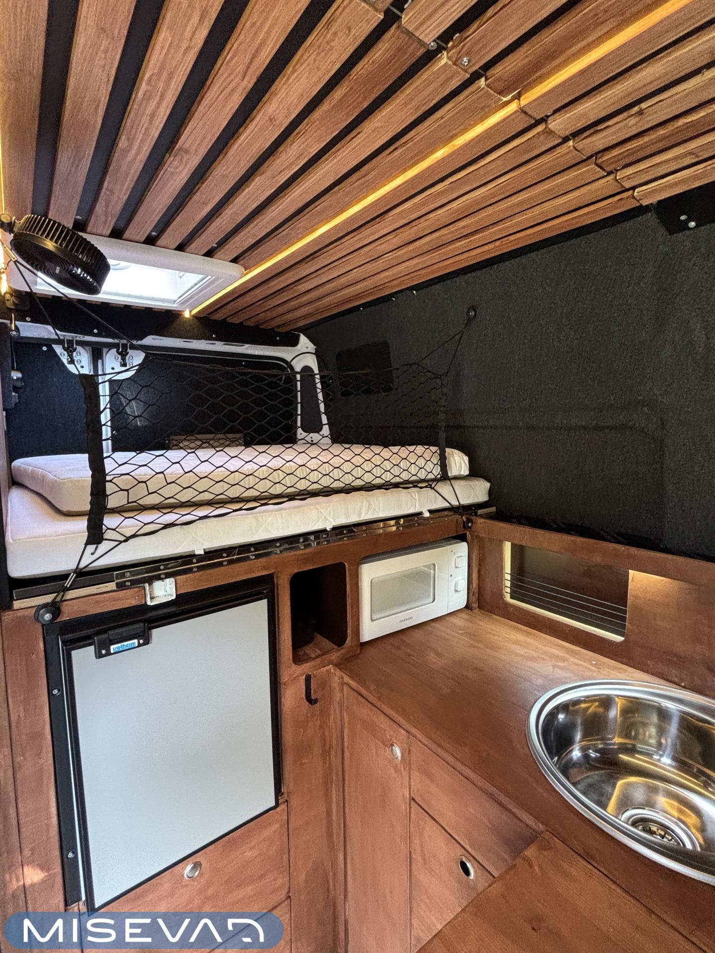 Jos auton kyljessä lukisi Peran Sähkö, niin tätä ei varmasti arvaisi retkeilyautoksi. Oma valmiste retkis, jossa on ollut hieno visio, miten autoon saadaan mahtumaan kaikki olennainen matkailua varten. Auton tekee erikoiseksi se, että sitä ei juuri tunnista pakettiautoa kummemmaksi. Sisältä löytyy kuitenkin täysiverinen keittiö, wc- ja suihkutilat, sekä makuupaikat jopa neljälle. Kaiken lisäksi auto on alle 5,5 metriä pitkä, joten se mahtuu tavallisiinkin parkkipaikkoihin. Autoon kannattaa tulla tutustumaan paikanpäälle, koska se ei ole tehdasrakentainen. Kaikki auton ratkaisut on tehty käsin ja uudella omistajalla on hyvä olla hieman teknistä osaamista itselläänkin. Toista samanlaista tuskin tulee vastaan ja tällä pääsee reissaamaan varmasti sellaisissakin paikoissa mihin ei perus retkikselläkään menisi.