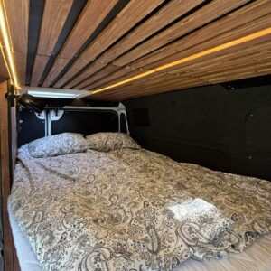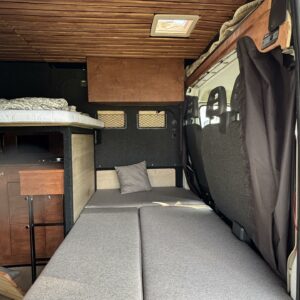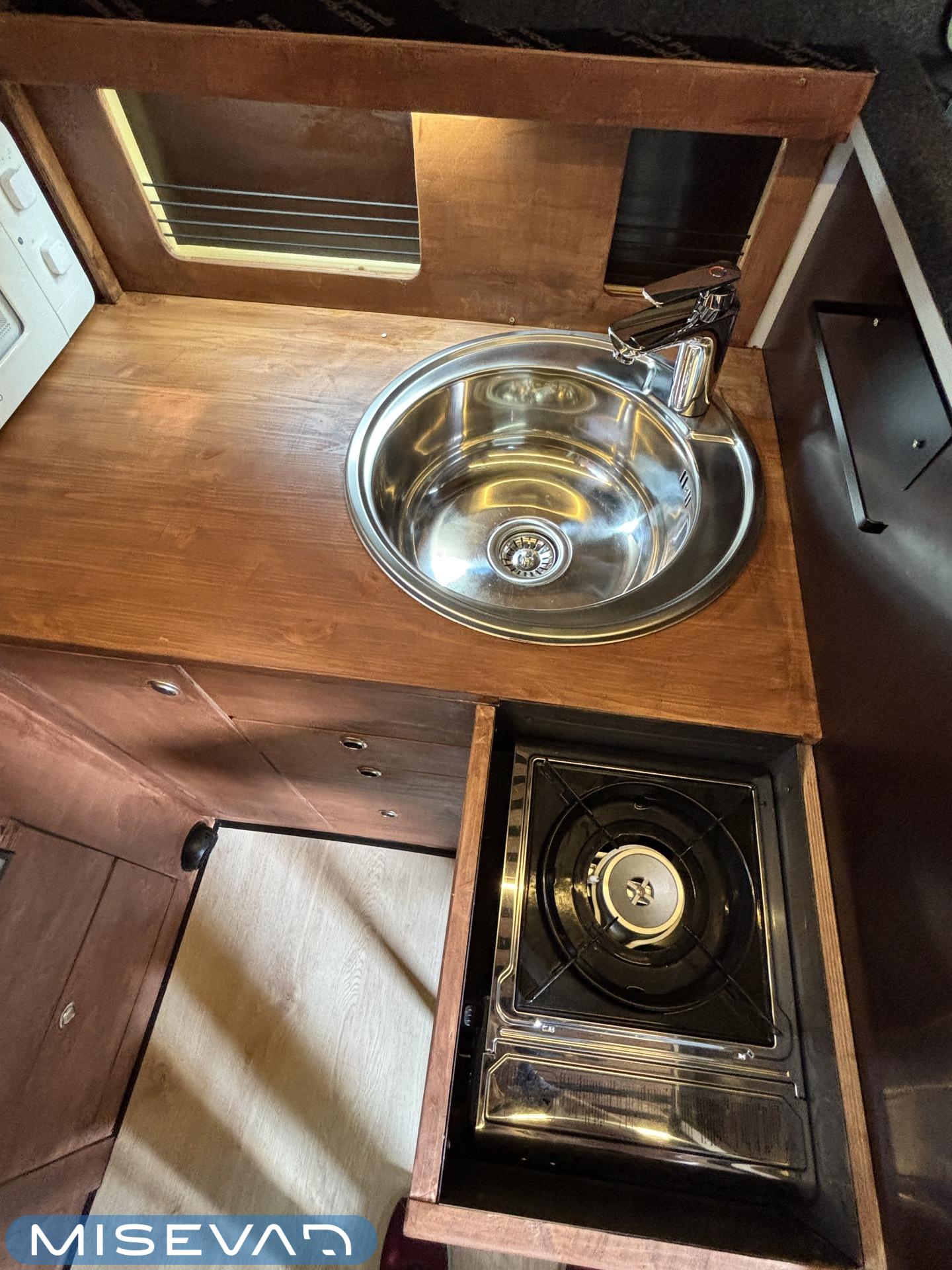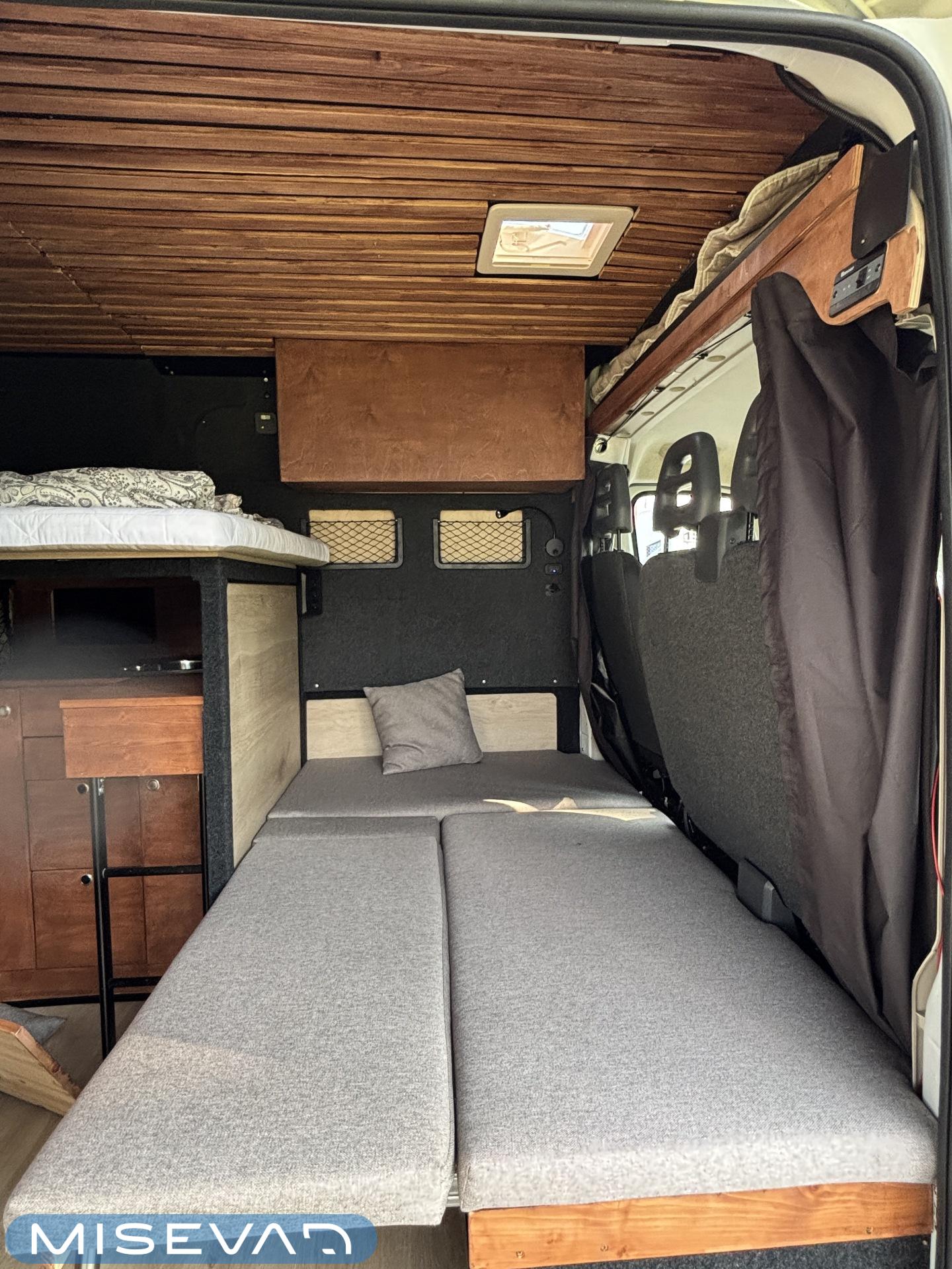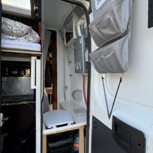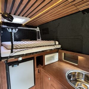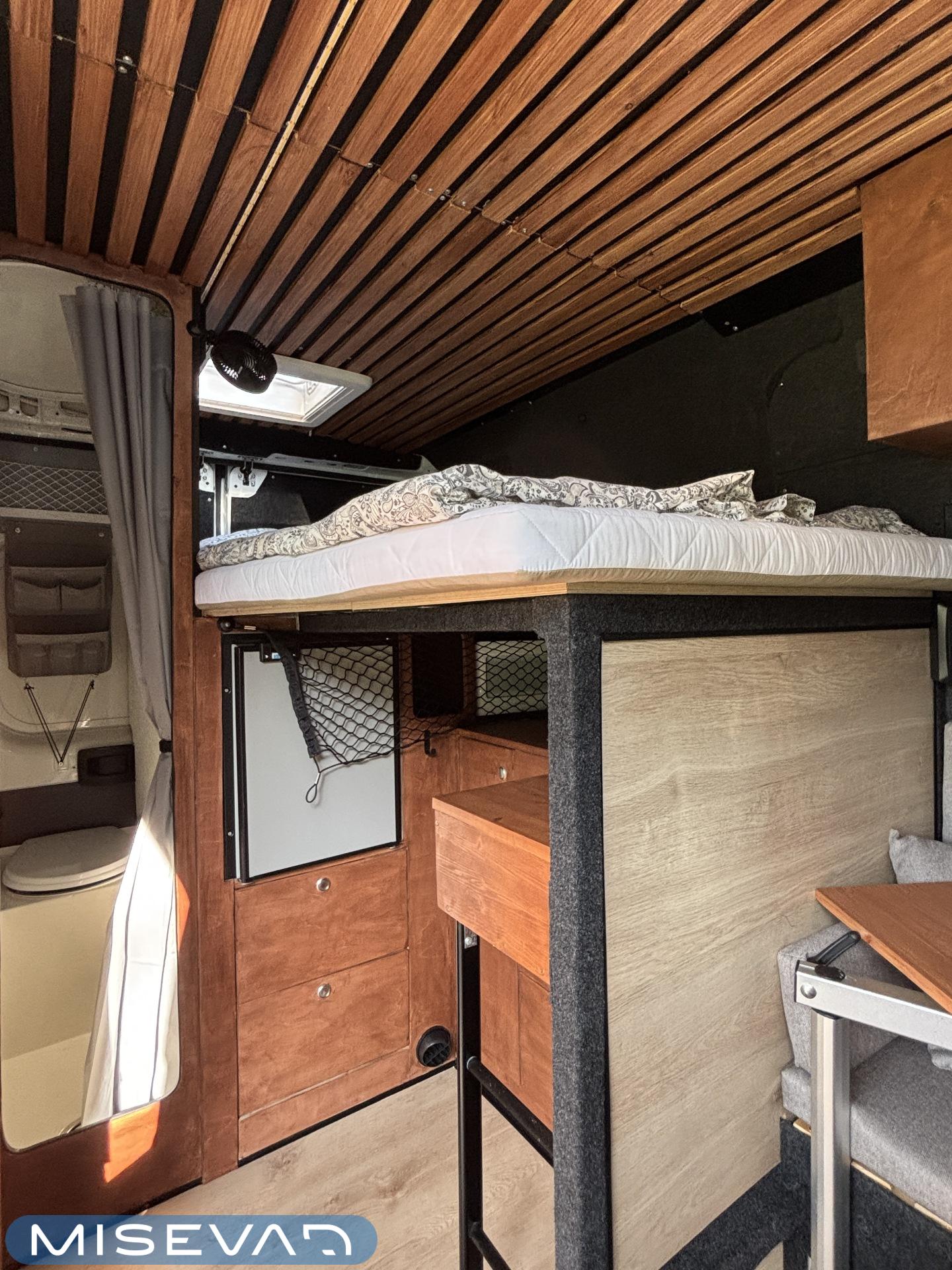 Jos auton kyljessä lukisi Peran Sähkö, niin tätä ei varmasti arvaisi retkeilyautoksi. Oma valmiste retkis, jossa on ollut hieno visio, miten autoon saadaan mahtumaan kaikki olennainen matkailua varten. Auton tekee erikoiseksi se, että sitä ei juuri tunnista pakettiautoa kummemmaksi. Sisältä löytyy kuitenkin täysiverinen keittiö, wc- ja suihkutilat, sekä makuupaikat jopa neljälle. Kaiken lisäksi auto on alle 5,5 metriä pitkä, joten se mahtuu tavallisiinkin parkkipaikkoihin. Autoon kannattaa tulla tutustumaan paikanpäälle, koska se ei ole tehdasrakentainen. Kaikki auton ratkaisut on tehty käsin ja uudella omistajalla on hyvä olla hieman teknistä osaamista itselläänkin. Toista samanlaista tuskin tulee vastaan ja tällä pääsee reissaamaan varmasti sellaisissakin paikoissa mihin ei perus retkikselläkään menisi.