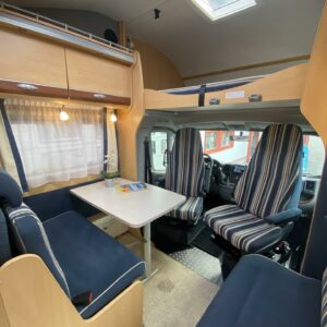 Mahtavilla varusteilla ja isolla 3 litraisella ”ketjukoneella” varustettu alkovimallinen matka-auto ympärivuotiseen käyttöön. Tästähän löytyy löytyy sitten vaikka ja mitä, joten ehkä ei kaikkea tähän esittelytekstiin laiteta (katso erikseen alle luetellut varusteet), niin ei tule liian pitkä tarina. Auton takaosassa on poikittainen parivuode. Alapuolelle jää huikeat säilytystilat minne on lisätty hyvinkin toiminnallisia ratkaisuja, kuten kaksitasoinen lattia, sekä takaseinältä kääntyvät säilytyshyllyt. Keskelle on sijoitettu L-keittiö, sekä WC/kylpyhuonetilat. Etuosaa hallitsee tilava pöytäryhmä minne yhdistyvät kääntyvät ohjaamon penkit, sekä kahden hengen sivusohva. Lämmittimenä on Alden nestekeskuslämmitys ja tämä on lämmönvaihtimen avulla yhteydessä myös moottorin jäähdytysnestekiertoon. Asunto-osalle on oma Dometicin kattoilmastointi, erinomainen varuste esimerkiksi jos mukana matkustaa lemmikkejä. Ohjaamossa ikkunat ja peilit sähköllä, multimedianäyttö toimii musiikkiviihteen lisäksi peruutuskameran kuvan ja navin näyttönä. Moottori voidaan esilämmittää pakkasilla käyntilämpötilaan polttoainetoimisen lisälämmittimen (Webasto) avulla. Reilun kokoinen mahtavat tilat tarjoava auto minkä ohjastamiseen vaaditaan vähintään C1 luokan ajokortti. Ajomäärä (85tkm) erittäin maltillisella tasolla ja tällä autolla on ollut vain kaksi käyttäjäomistajaa.