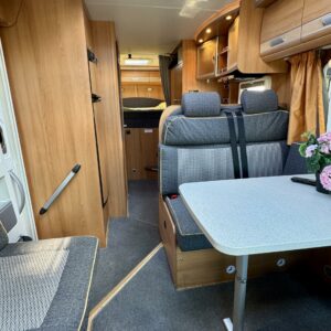 Auton etuosassa on sivusohvalla ja kääntyvin etupenkein varustettu pöytäryhmä, joka on mahdollista sijata toiseksi parivuoteeksi.