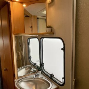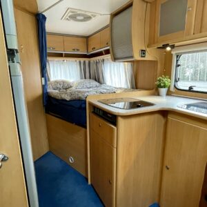 Tilava, lähes 7- metrinen täysintegroitu pitkittäisellä parivuoteella.