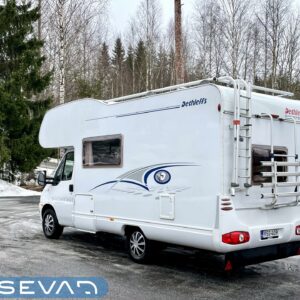 Todella siistissä kunnossa oleva saksalaisvalmisteinen Dethleffs joka tarjoaa kompakteista ulkomitoista huolimatta asialliset tilat jopa kuuden henkilön matkantekoon ja leiriytymiseen.