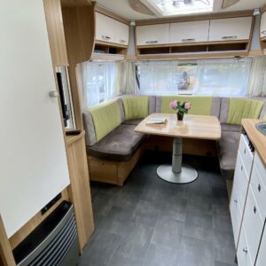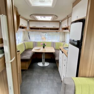 Tilava perhevaunu, jossa nukkumapaikkoja on hyvin runsaasti tarjolla. Ison U-muotoisen ruokailuryhmän ympärille saa helposti mahtumaan isommankin seurueen ja siitä on näppärästi sijattavissa lisää petipaikkoja niitä kaipaaville. Viihdykkeestä huolehtii ulko-oven vierestä löytyvä TV. Keittiöstä löytyy iso jääkaappi ja pakastelokero, kaasuliesi sekä pesuallas eli kaikki tarpeelliset ominaisuudet esimerkiksi kausipaikalla kokkailuja ajatellen. Perheen pienimmät ja miksei isommatkin majoittuvat hyvin keskiosaan sijoitetuissa kerrossängyissä. Niiden vieressä on pienempi pöytäryhmä, joka sopii oivasti esimerkiksi luku- tai askartelunurkkaukseksi. Keulassa sijaitsevat pitkittäinen parisänky ja WC/kylpyhuonetilat. Tähän vaunuun mahtuu majoittumaan isompikin porukka eikä tilan vuoksi omasta mukavuudesta tarvitse tinkiä. Vaunu saadaan väliovien avulla osastoitua kolmeen eri osioon. Lämmityksestä vastaa Trumaticin tehokkaasti ilmaa tuottava ilmakeskuslämmitys. Tässä vaunussa lämmöntuottoa on tehostettu Trumaticin kaksoispuhallinjärjestelmän avulla, eli höökää riittää kovemmillekin keleille. Vaunu on myös turvallinen perässä vedettävä Al-Ko:n ATC ajonvakausjärjestelmän ansiosta.