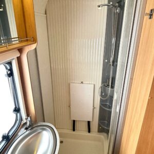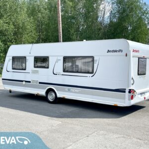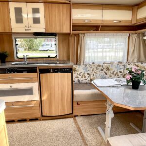 Erillisvuoteinen taka-WC:llä varustettu hieno vaunu ensimmäisen käyttäjän hienon ylläpidon jäljiltä. Tässä vaunussa on poikkeuksellisen avara lattia. Ei tarvitse kokkauspuuhissakaan olevan hypätä edestä syrjään, jos joku yrittää mennä ohitse. Vaunun takaosassa on poikittainen koko vaunun levyinen WC/kylpyhuonetila. Suihkulle on oma erillinen tilansa. Pitkittäin sijoitettujen erillisvuoteiden alle jää säilytystiloja ja toisen vuoteen alle on käynti myös ulkopuolisen luukun kautta. Kettiön alue on siis todella avara, niin kun aikaisemmin mainittiin. Keittiötasolla on myös ihan mukavasti laskutilla. Etuosaa hallitsee U-ryhmä mistä saadaan sijattua vuode kahdelle henkilölle. Lämmön tuotosta torppaan vastaa tehokas ja tasaisen lämmön tuottava Alden nestekeskuslämmitys. Aldelle tunnusomaisesti samaan lämmitinyksikköön on liitetty lämminvesiboileri, sekä sähkövastukset. Talvikelillä mukavasti jalkapohjaa lämmittää sähköinen lattianlämmitys. Pihalle kaasugrillin saa kytkettyä näppärästi toimintaa kaasun ulosoton ansiosta. Nopein on voittaja tämän tuotteen kohdalla, ole siis nopea jos aiot päästä tämän herkun omistajaksi.