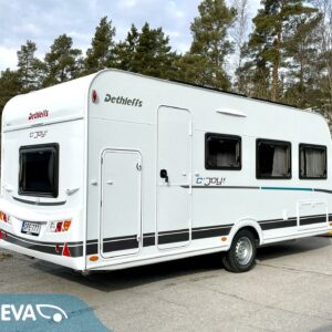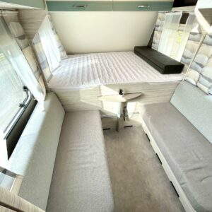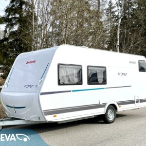 Erillainen kevyt lapsiperheen vaunu jossa mahtavat säilytystilat sekä edessä että takana. Takana lapsille omet vuoteet ja aikuisille etupäässä valmis parivuode. Ruokailuryhmä järjestyy kätevästi kun piilossa oleva pöytä vedetään esille. Virrasta huolehtii katolla oleva. aurinkopaneeli.
