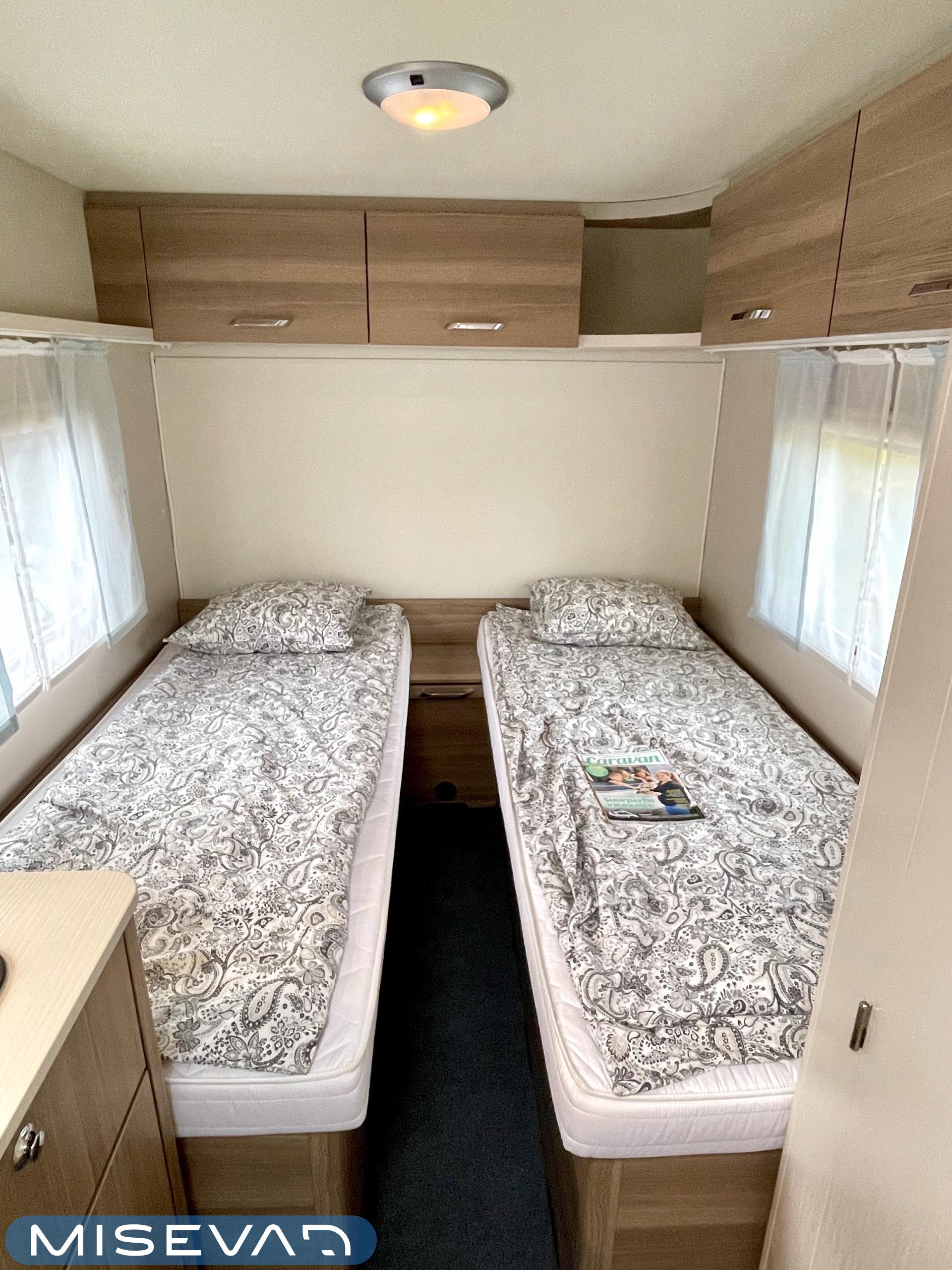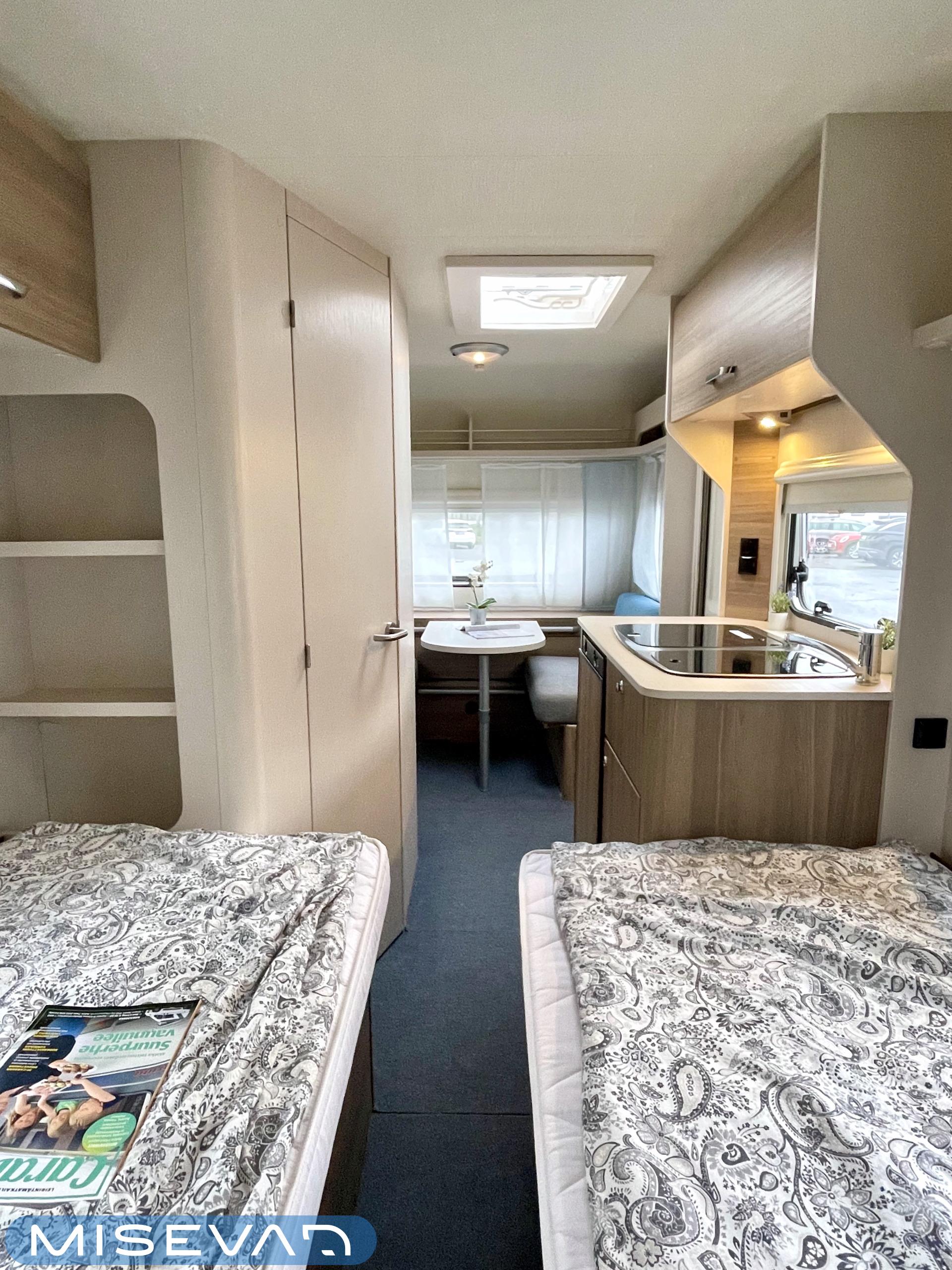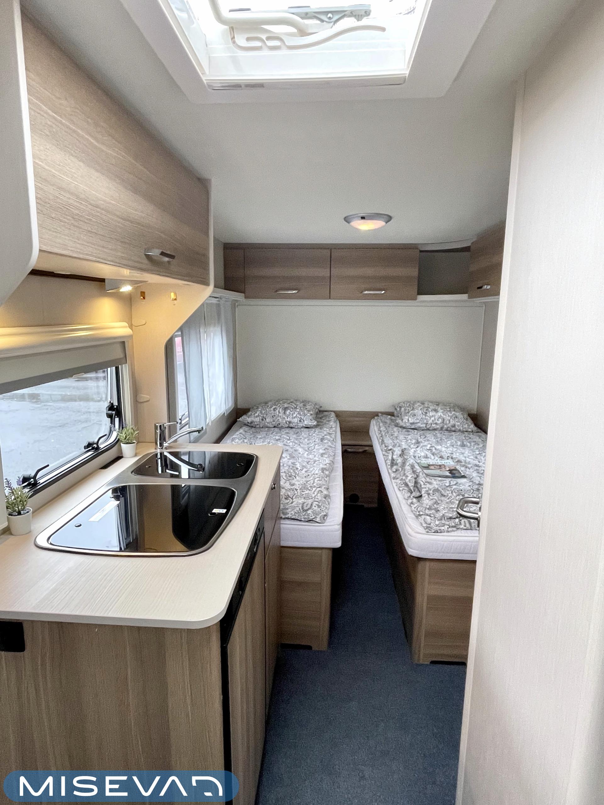 Täydellinen valinta matkailun aloittajalle tai kevyemmän vaunun etsijälle! Kevyt ja helposti vedettävä, sopii luokkaan B oikeuttavalla autolla vedettäväksi, joten onnistuu helposti myös pienemmällä ajoneuvolla. Vaunusta löytyy kaikki mitä tarvitset: sänky missä nukkua, vessa missä asioida, suihku missä peseytyä, keittiö missä kokkailla ja ruokailutila missä voi nauttia vaunukokin antimista. Etuosaan vaunua voi myös rakentaa sängyn, niin halutessasi. Tule vaunuostoksille Misevalle!