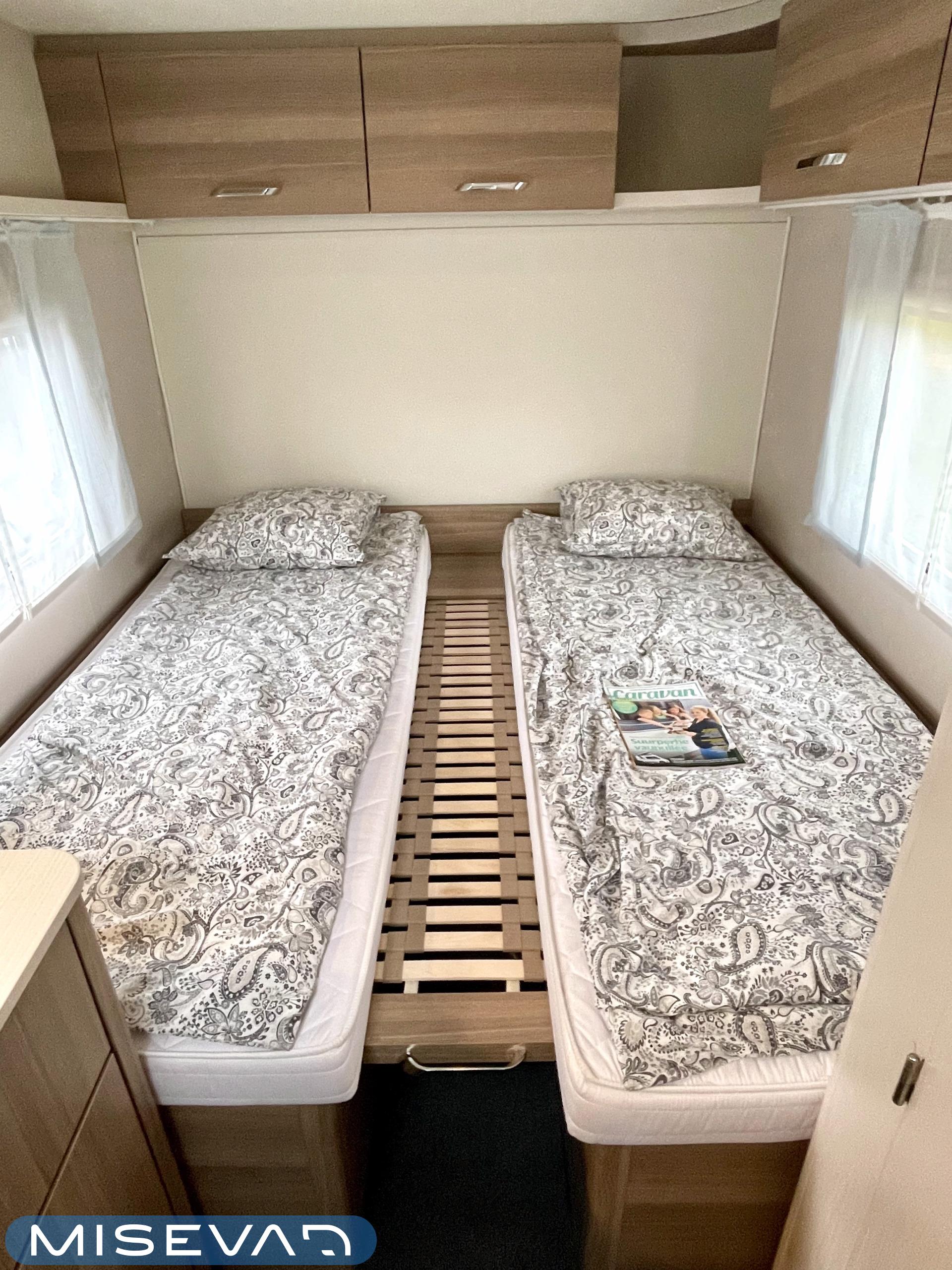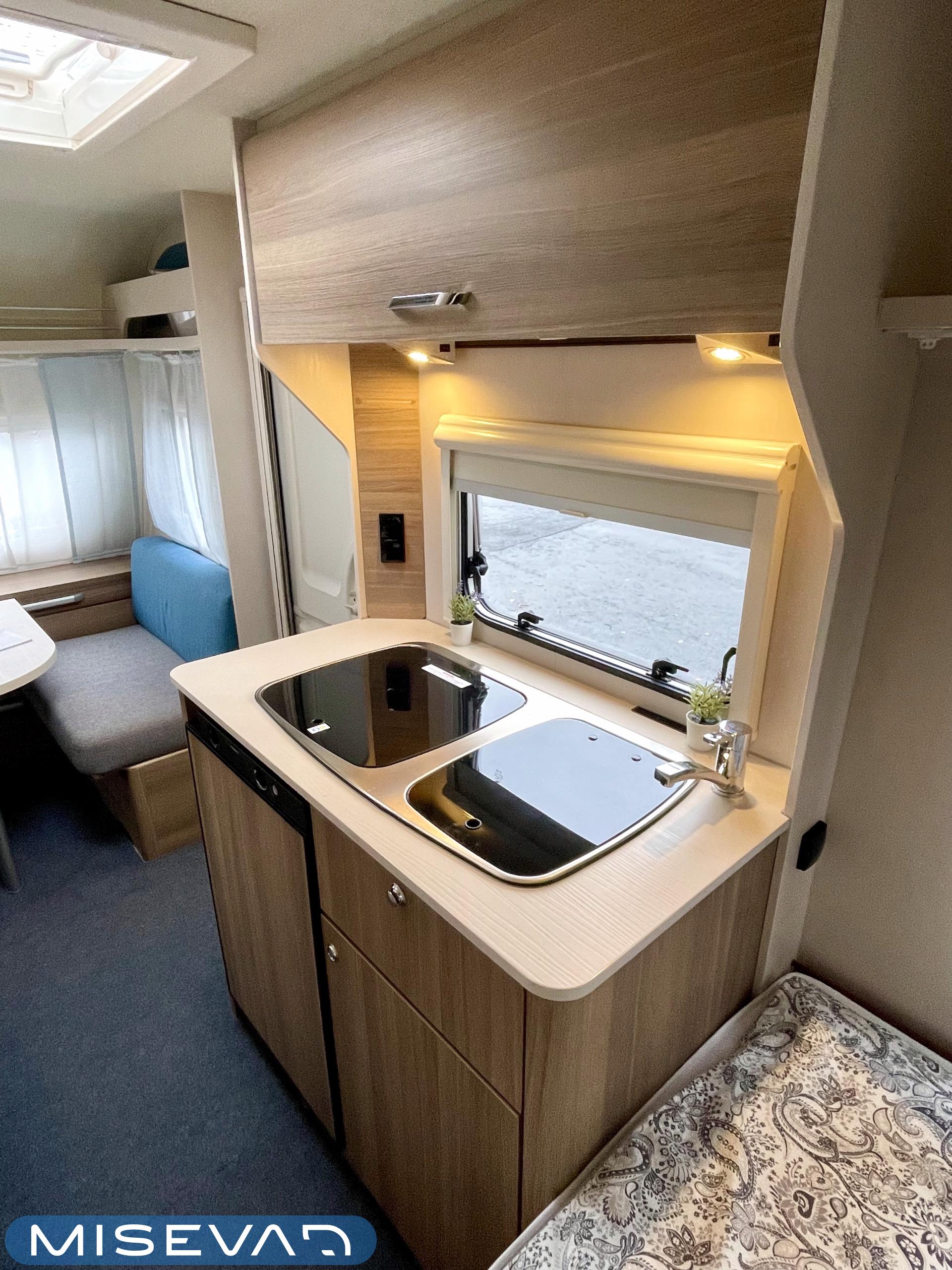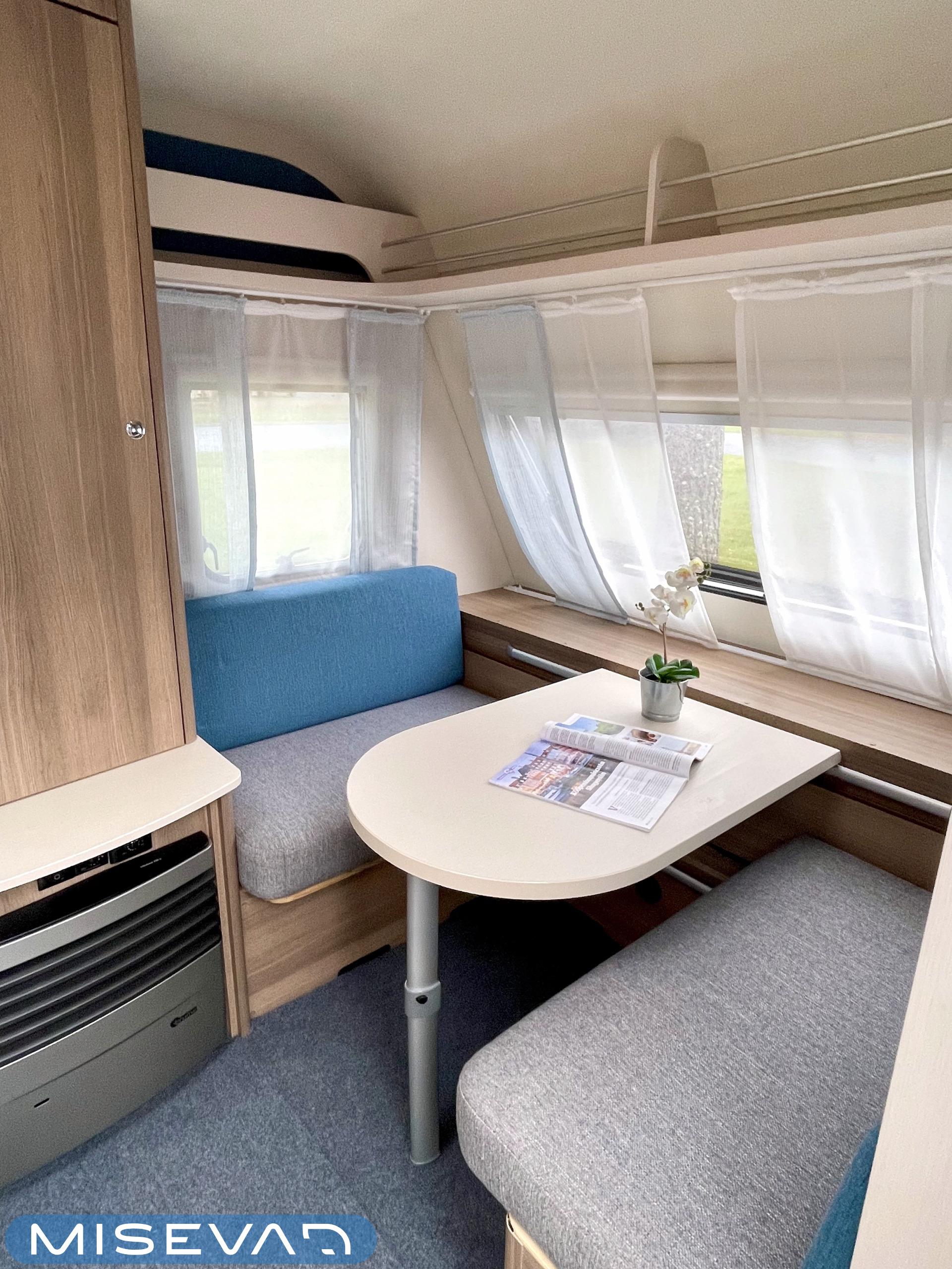 Täydellinen valinta matkailun aloittajalle tai kevyemmän vaunun etsijälle! Kevyt ja helposti vedettävä, sopii luokkaan B oikeuttavalla autolla vedettäväksi, joten onnistuu helposti myös pienemmällä ajoneuvolla. Vaunusta löytyy kaikki mitä tarvitset: sänky missä nukkua, vessa missä asioida, suihku missä peseytyä, keittiö missä kokkailla ja ruokailutila missä voi nauttia vaunukokin antimista. Etuosaan vaunua voi myös rakentaa sängyn, niin halutessasi. Tule vaunuostoksille Misevalle!
