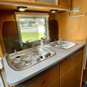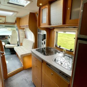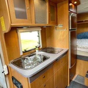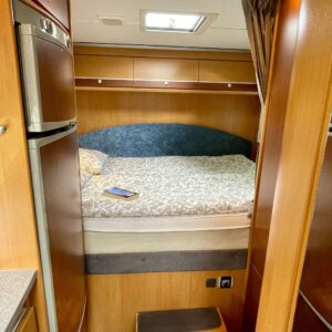 Tervetuloa kyytiin, tämä Dethleffs vie sinut juuri sinne minne ikinä haluatkin. Ja mukaan saat vielä kolme lempi tyyppiä, tilaa on. Auton takaa löytyy mukavan pehmeä parisänky, kooltaan 140x 210. Keskellä autoa on iso wc- /suihkutila, jonka erikoisuutena on suihku jossa voit istua. Mitä mukavuutta! Kokonaisuuden kruunaa iso oleskelutila kapteenin penkkeineen. Pohjaratkaisu on todella avara ja oleskelutilan vaaleat tekstiilit tuovat raikkautta sisustukseen. Tässä viihtyisi useammankin kuukauden reissussa, ei tule kotia ikävä.