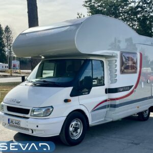 Pikkuinen, ilmastoitu parivuoteinen matka-auto, jossa tilava pesuhuone auton takaosassa. Edessä kääntyvät ohjaamon istuimet ja neljän hengen istuinryhmä. Keskellä keittiö, jossa reilustu laskutilaa sekä isot kaapistot.