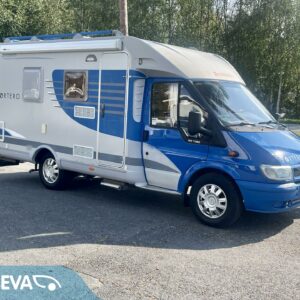 Sininen salama valmiina tienpäälle. Kompakti reissukaveri jolla mahtuu melkein parkkiin kuin parkkiin. Autosta löytyy kaikki tarpeellinen matkailua varten. Sopivan kokoinen jääkaappi, iso teräksinen liesi altaalla, kivan kokoinen WC tila suihkulla ja parisänky takana. Polkupyörätkin saa taakse telineeseen. Ruokailuryhmän saa muunnettua tarvittaessa sängyksi. Trumatic lämmittää viileämpinä öinä ja sähköpatruunalla säästyy kaasua piuhan päässä. Fordin väkivahvassa koneessa riittää voimaa kuljettaa pientä reissubiiliä vaikka Alppeja ihmettelemään.