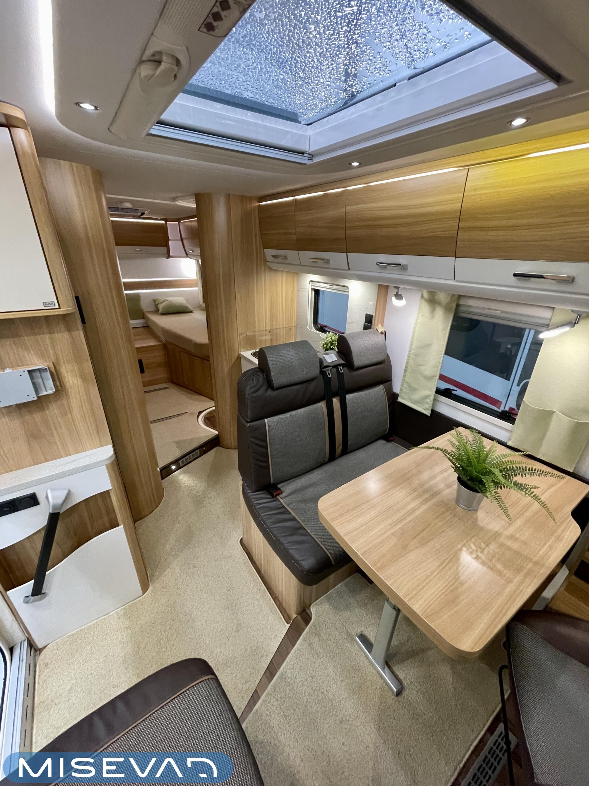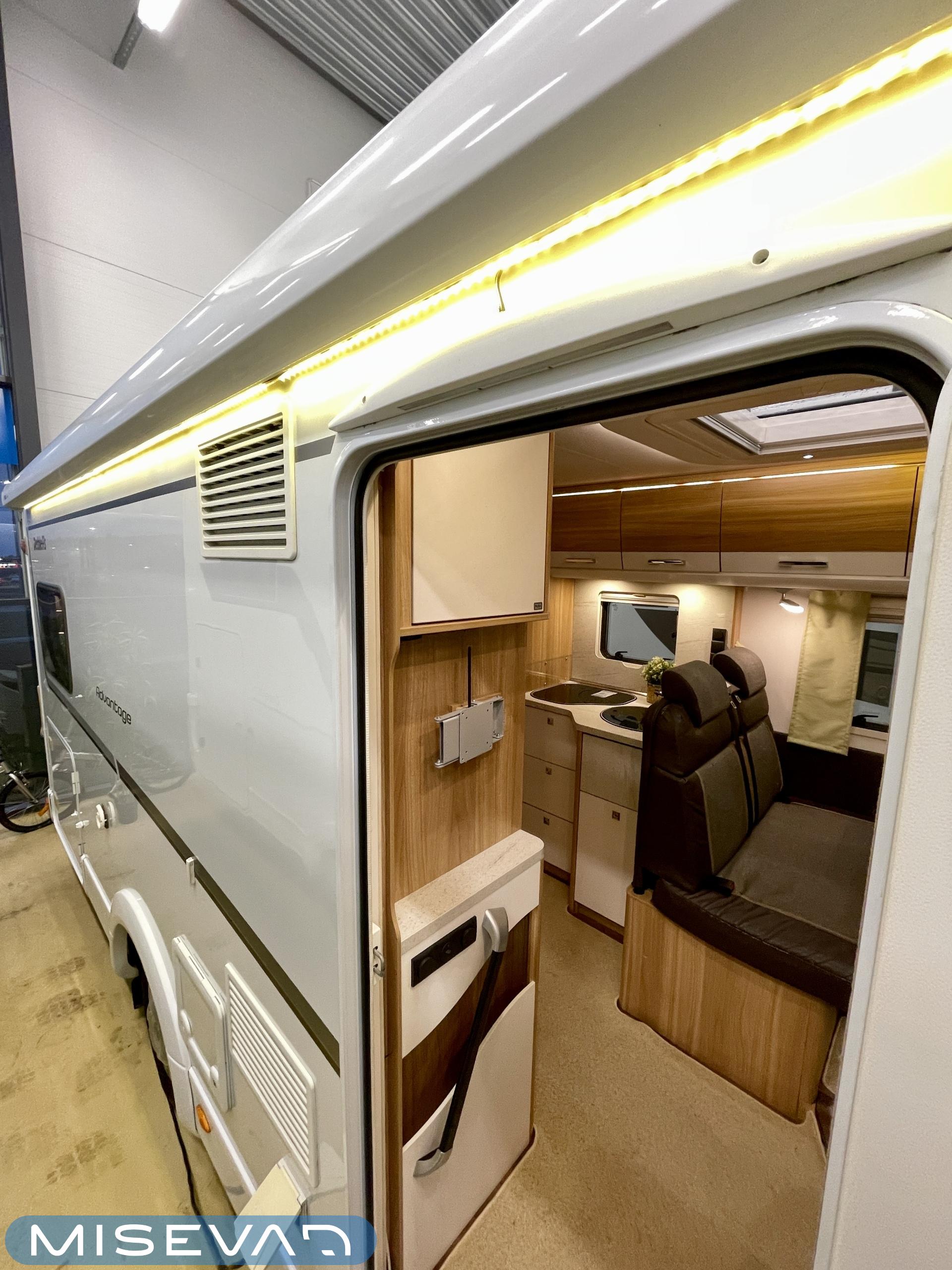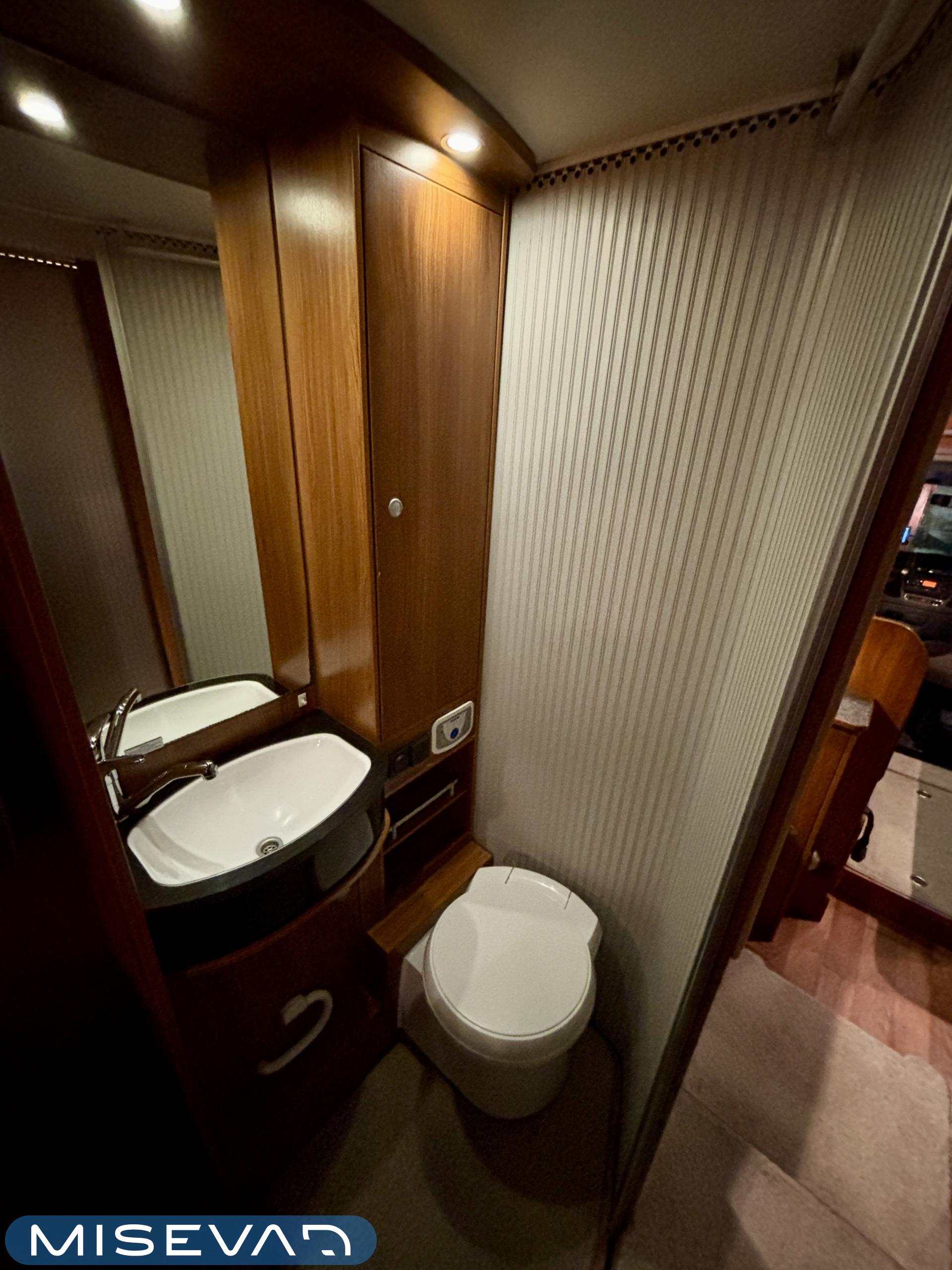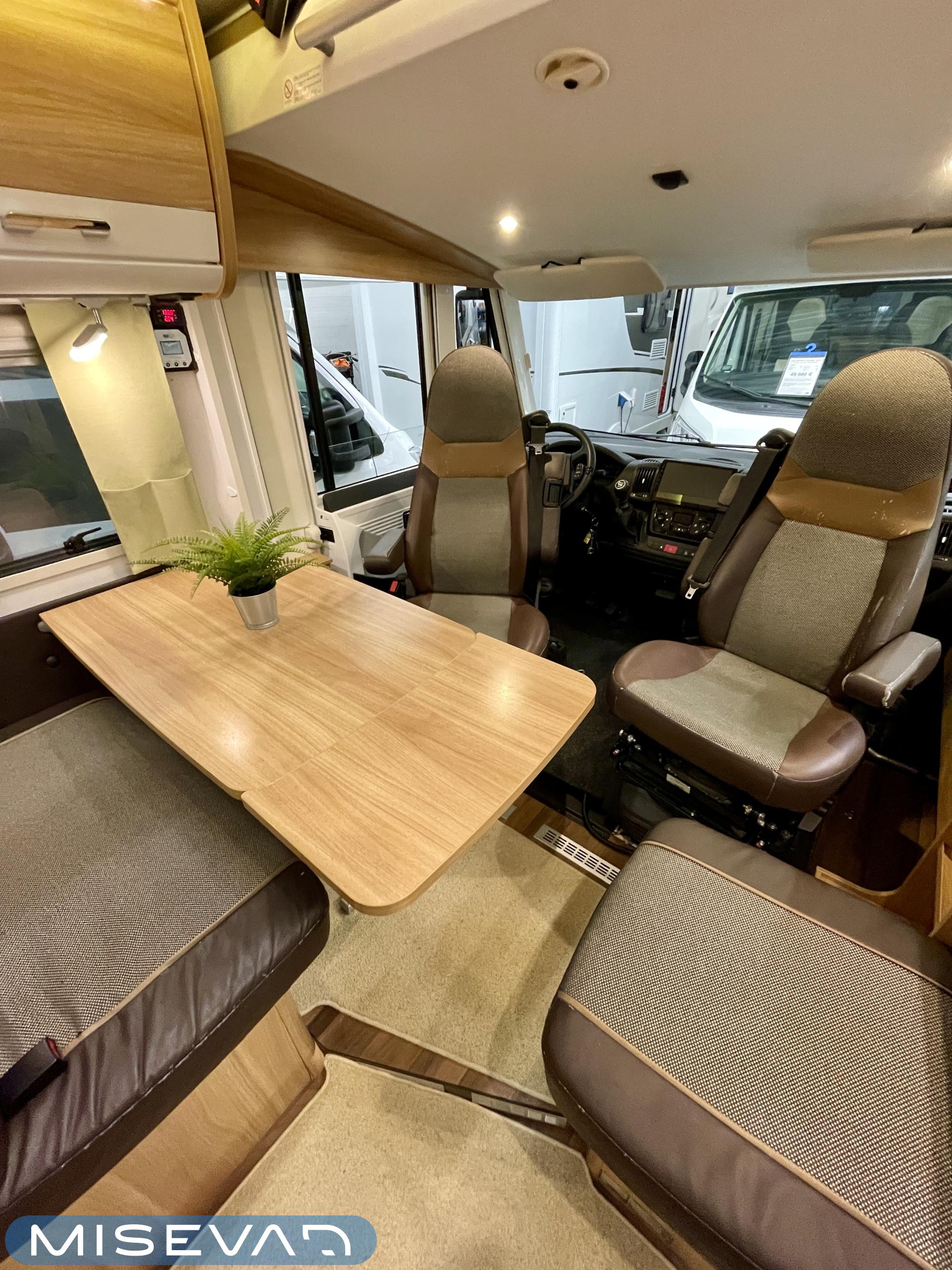 Ajotietokone, ABS-jarrut, Airbag, Ilmastointi ajotilassa, Jääkaappi, Kasetti WC, Kasettiverhot, Kattoluukku, Keskuslämmitys, Lattiamatot asunto-osassa, Liesi, Lämminvesiboileri, Markiisi, Navigaattori, Ohjaustehostin, Pakastelokero, Parivuode, Pesuallas, Pysäköintikamera, Pyöräteline, Radio, Suihku, Sähkökäyttöiset ikkunat, Sähköpeilit, Sähkörappu, Trumatic, Vakionopeudensäädin, Kesärenkaat, laskuvuode, saarekevuode, Kaasu-uuni