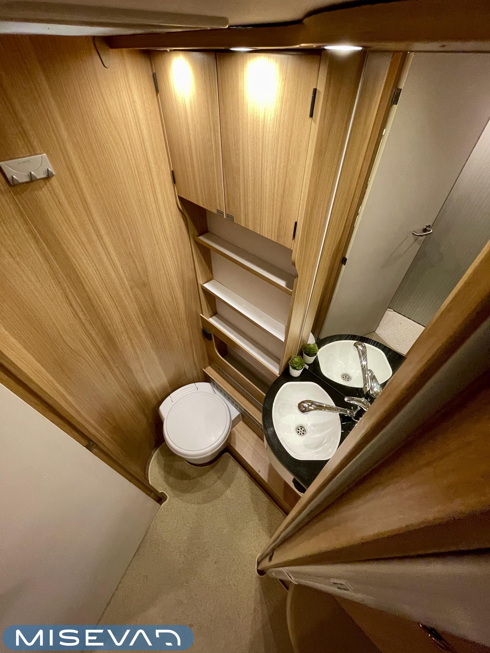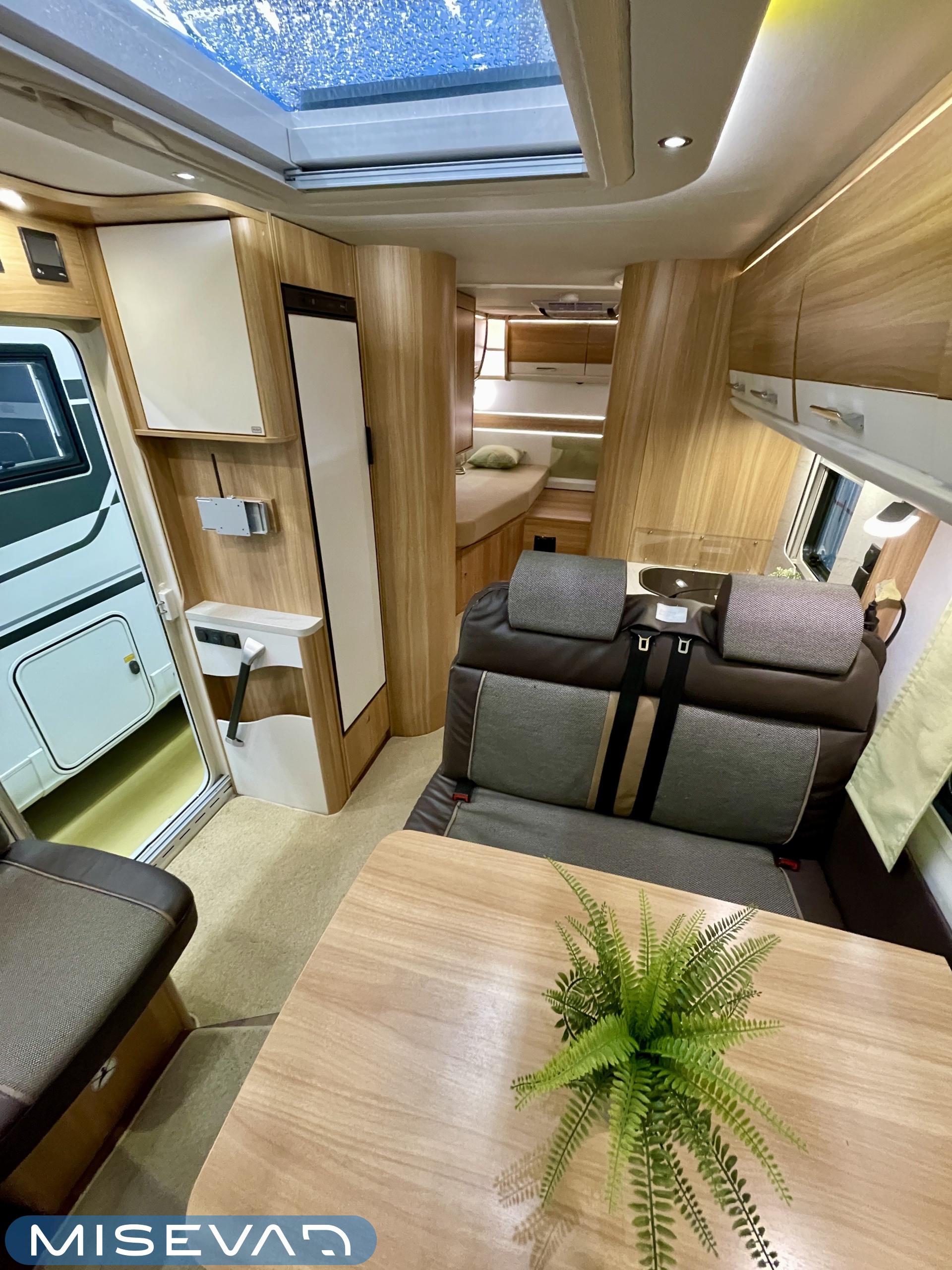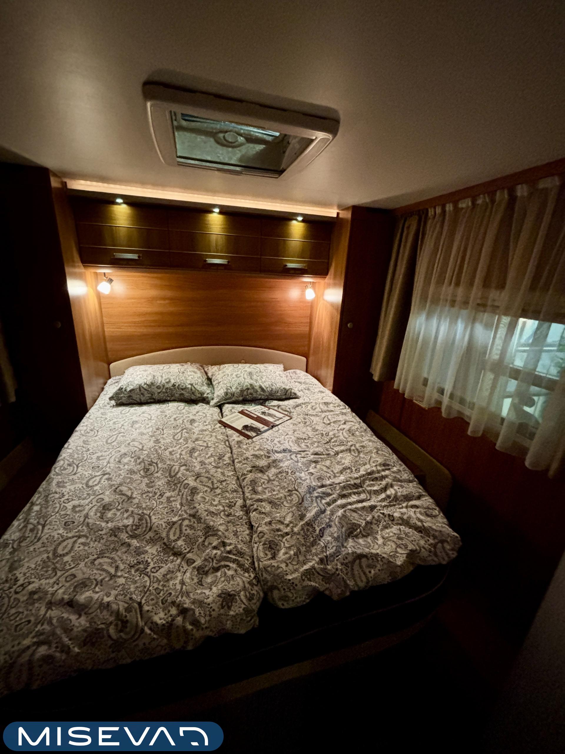 Ajotietokone, ABS-jarrut, Airbag, Ilmastointi ajotilassa, Jääkaappi, Kasetti WC, Kasettiverhot, Kattoluukku, Keskuslämmitys, Lattiamatot asunto-osassa, Liesi, Lämminvesiboileri, Markiisi, Navigaattori, Ohjaustehostin, Pakastelokero, Parivuode, Pesuallas, Pysäköintikamera, Pyöräteline, Radio, Suihku, Sähkökäyttöiset ikkunat, Sähköpeilit, Sähkörappu, Trumatic, Vakionopeudensäädin, Kesärenkaat, laskuvuode, saarekevuode, Kaasu-uuni