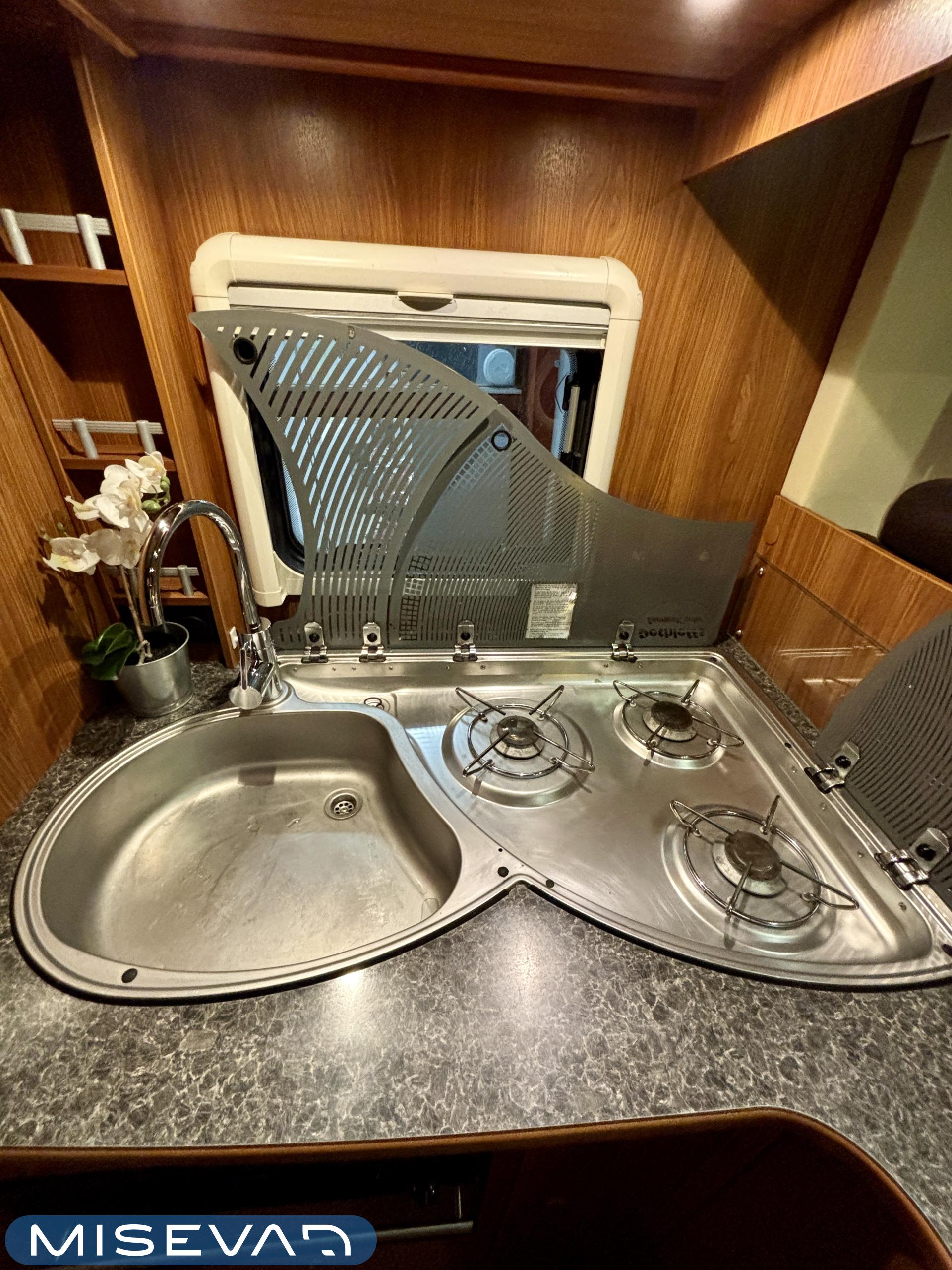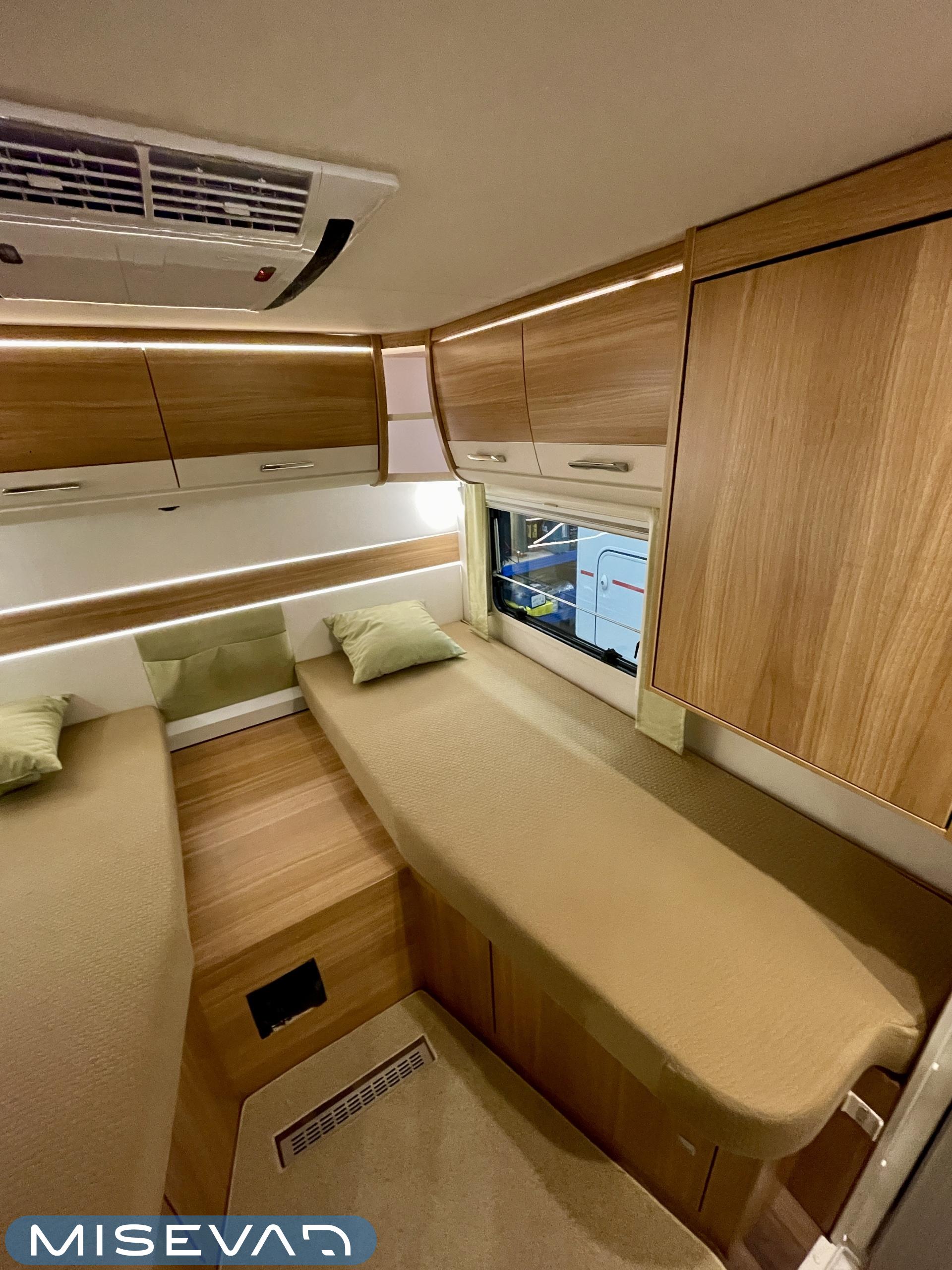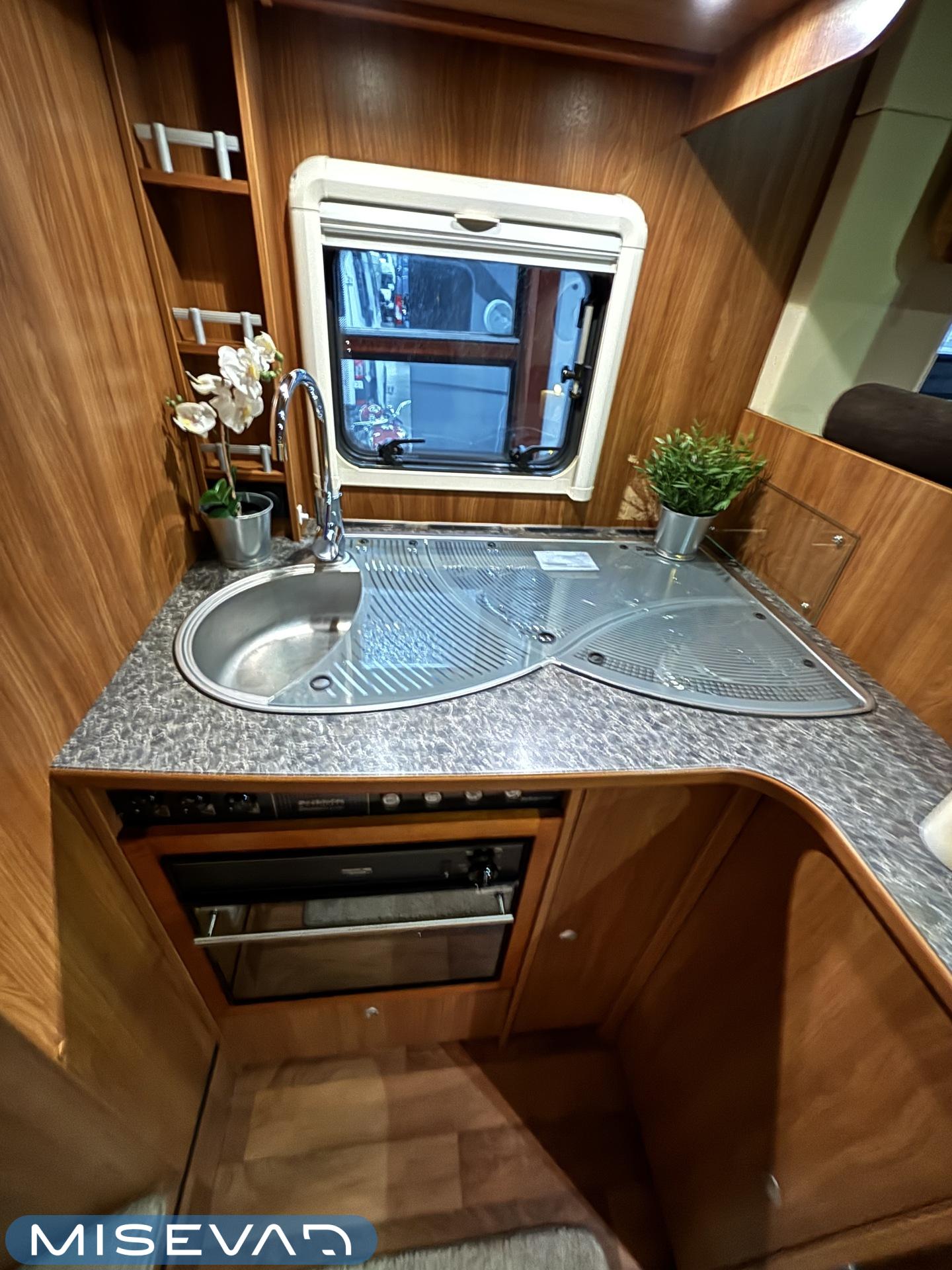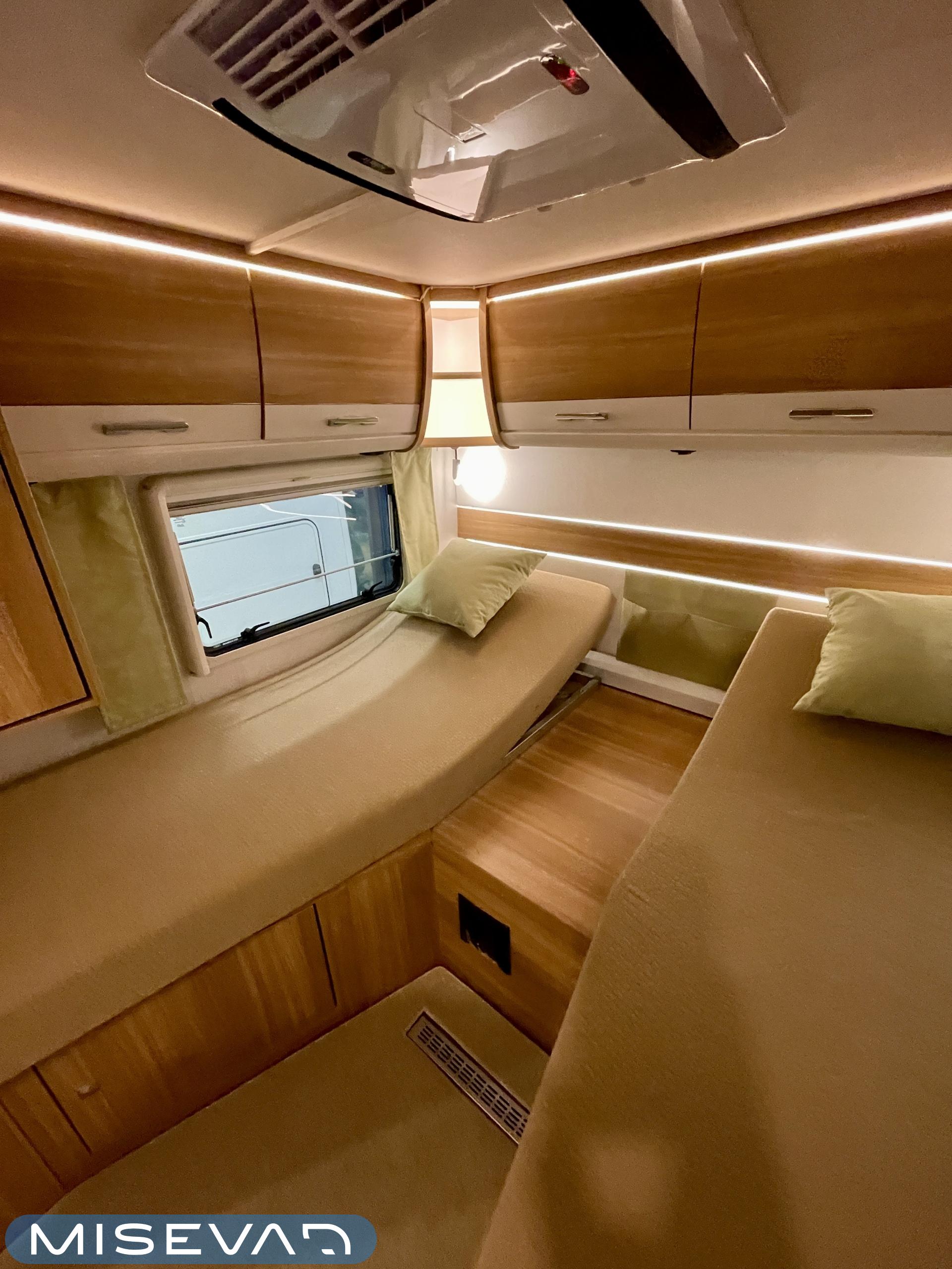 Ajotietokone, ABS-jarrut, Airbag, Ilmastointi ajotilassa, Jääkaappi, Kasetti WC, Kasettiverhot, Kattoluukku, Keskuslämmitys, Lattiamatot asunto-osassa, Liesi, Lämminvesiboileri, Markiisi, Navigaattori, Ohjaustehostin, Pakastelokero, Parivuode, Pesuallas, Pysäköintikamera, Pyöräteline, Radio, Suihku, Sähkökäyttöiset ikkunat, Sähköpeilit, Sähkörappu, Trumatic, Vakionopeudensäädin, Kesärenkaat, laskuvuode, saarekevuode, Kaasu-uuni