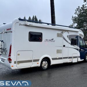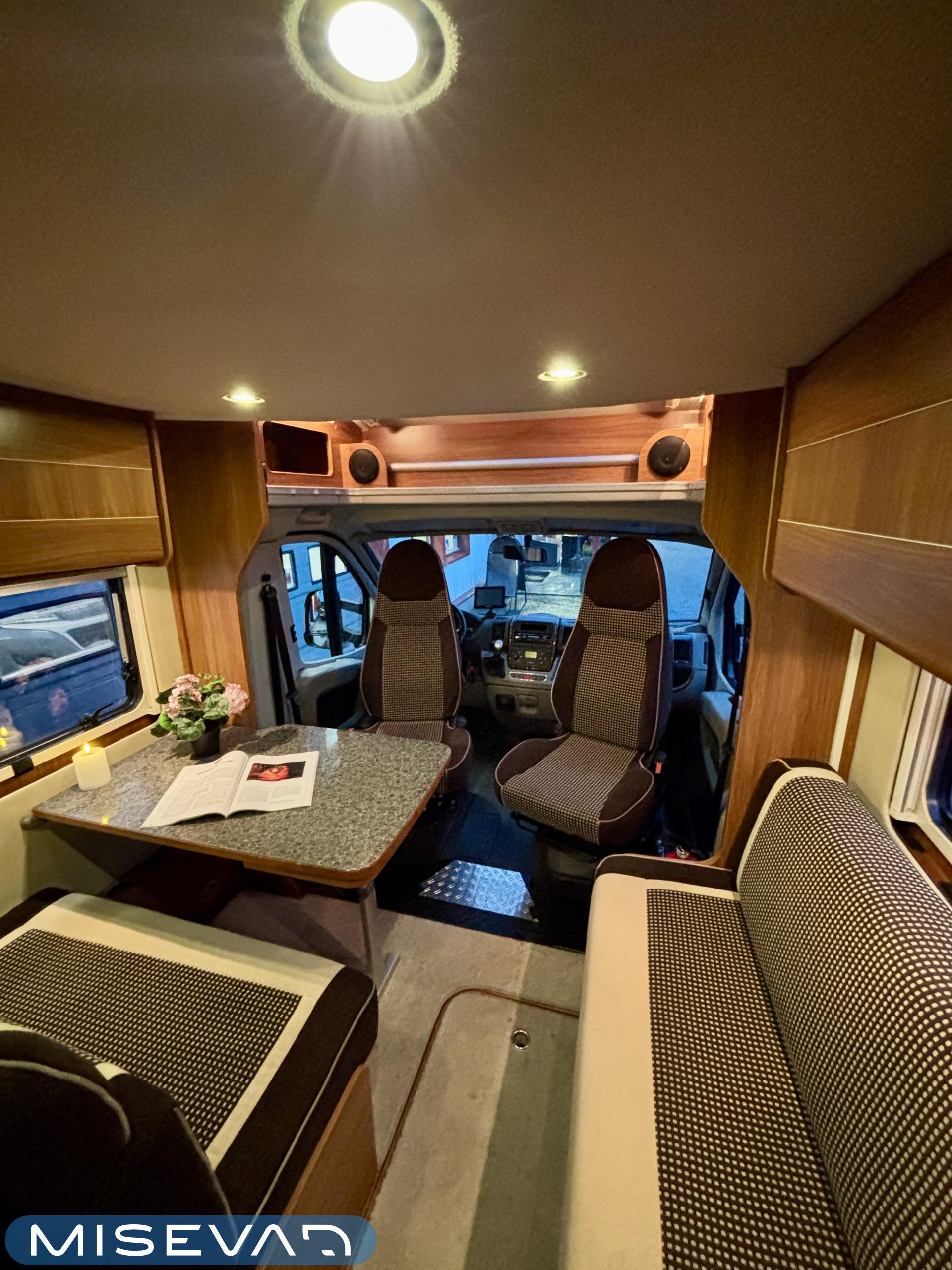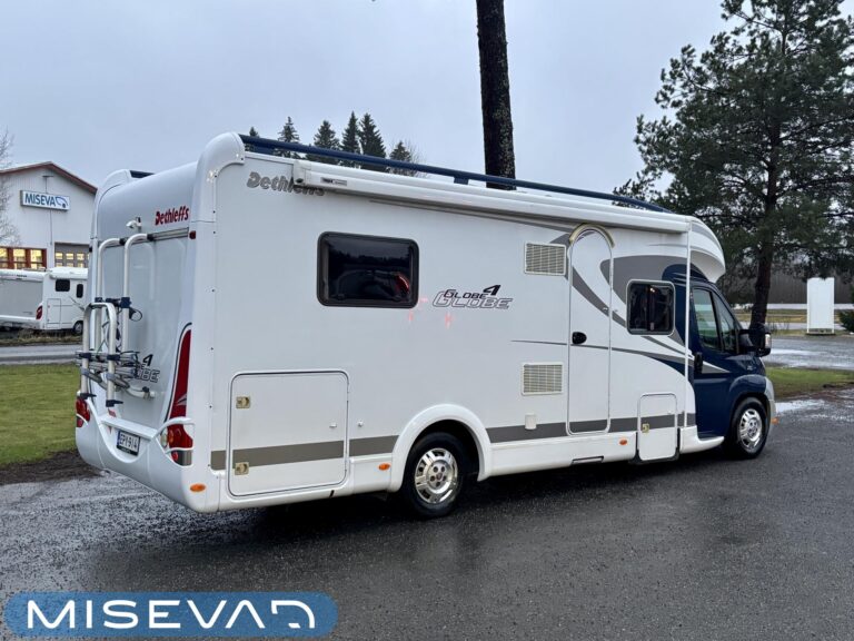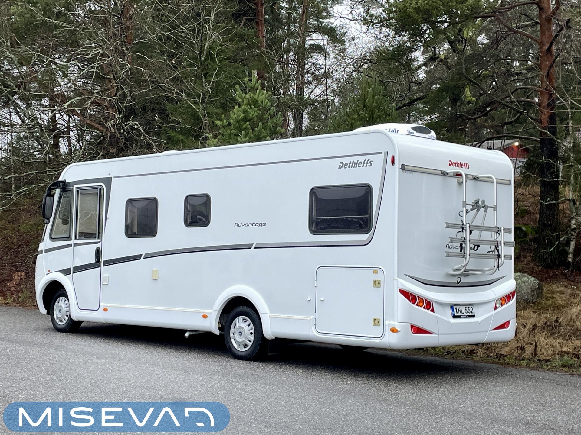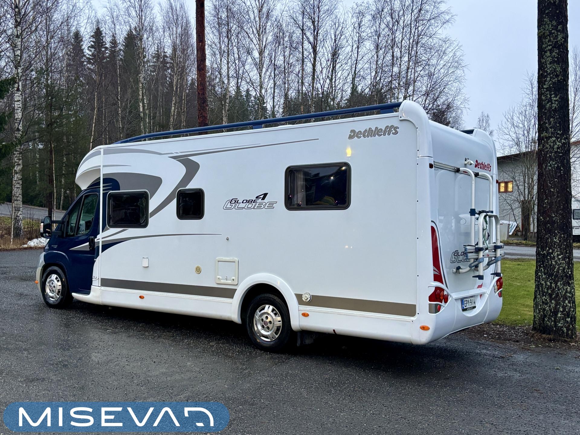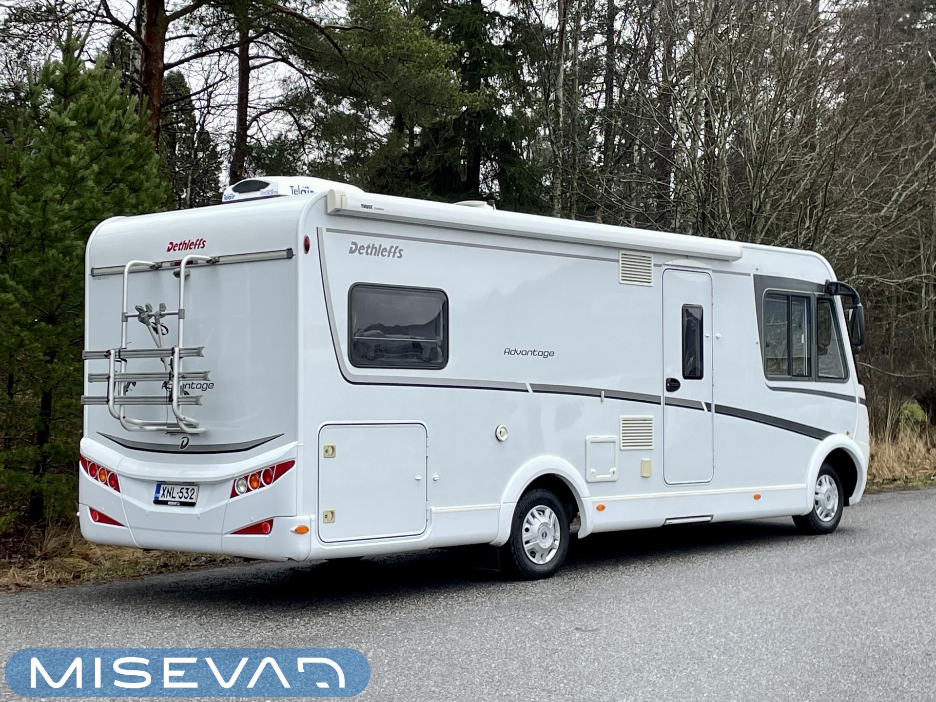 Reilut reissutilat tarjoava Dethleffsin puoli-integroitu matkailuauto. Autosta löytyy kaksi parivuodetta mistä toinen sijaitsee saarekevuoderatkaisuna auton takaosassa ja toinen pöytäryhmän päällä laskuvuoteena. Takaosassa on myös erilliset suihku- ja WC-tilat. Keskeltä löytyy L-keittiö ja normaalin keittiövarustuksen lisäksi varusteena on myös kaasu-uuni. Etuosa on pöytäryhmää minne yhdistyvät kääntyvät ohjaamon penkit, sekä kahden istuttava sivusohva. Auton alusta on korkeammille massoille mitoitettu Maxi-alusta ja moottorina isompi kolmelitrainen moottori. Voimalinjan jatkeena on automaattivaihteisto. Sen verran tällä reissukodilla on massaa, että ohjastamiseen tarvitaan vähintään C1-luokan ajo-oikeus. Ohjaamosta löytyy tietysti ilmastointi, vakkari, sekä monitoiminäyttö kameralla ja navilla. Fillarit matkaa mukana takaseinälle sijoitetussa pyörätelineessä ja kotelomarkiisi tarjoaa suojaa niin sateelta, kun auringonkin paahteelta.