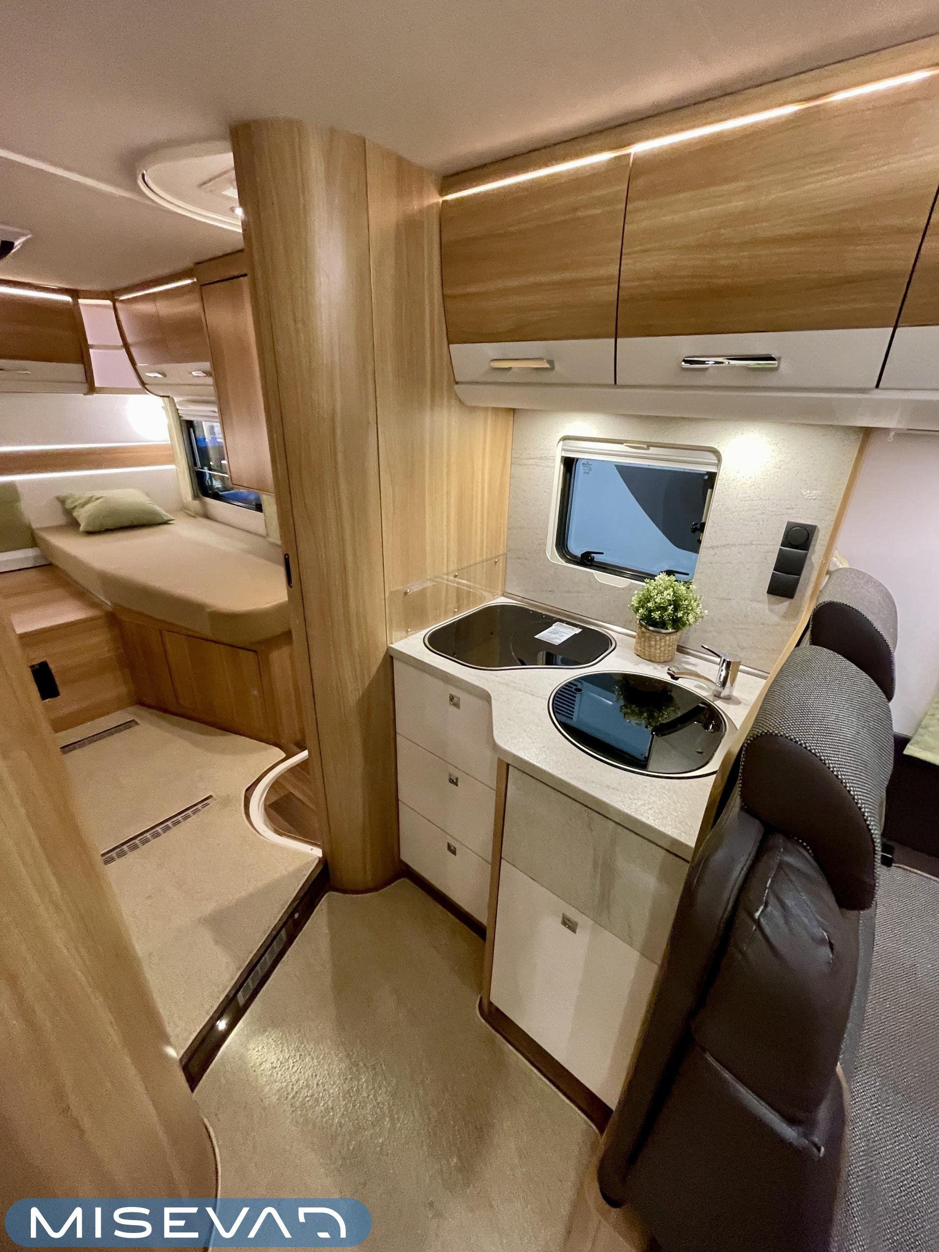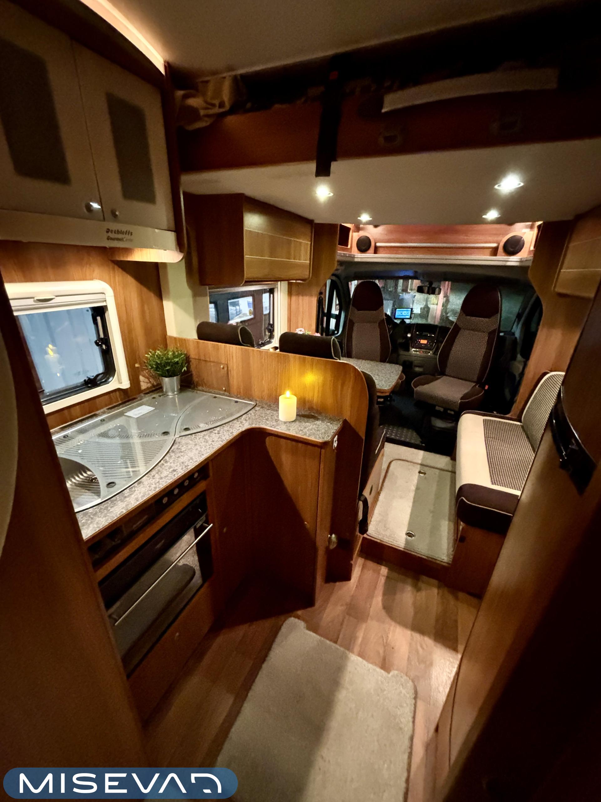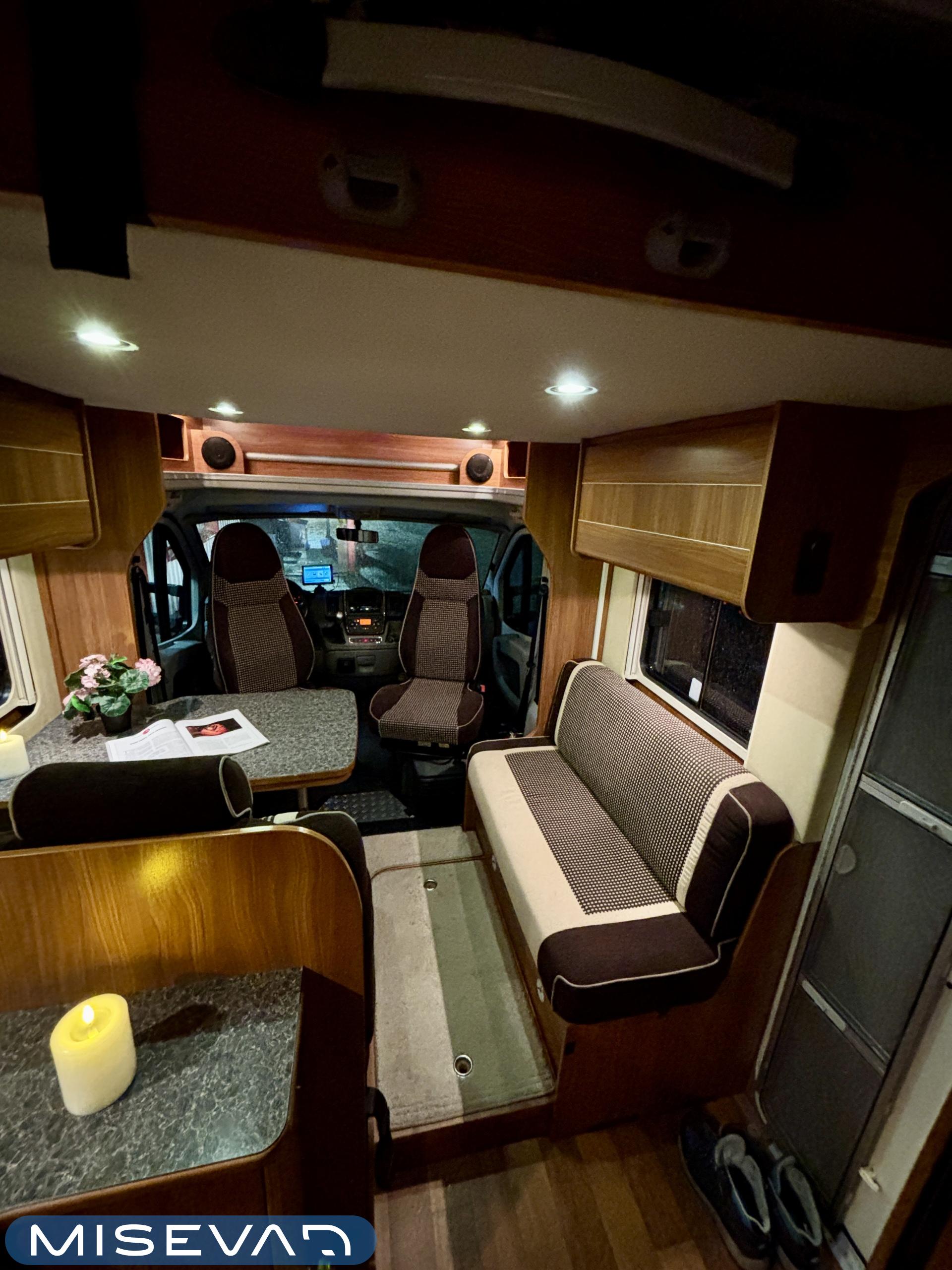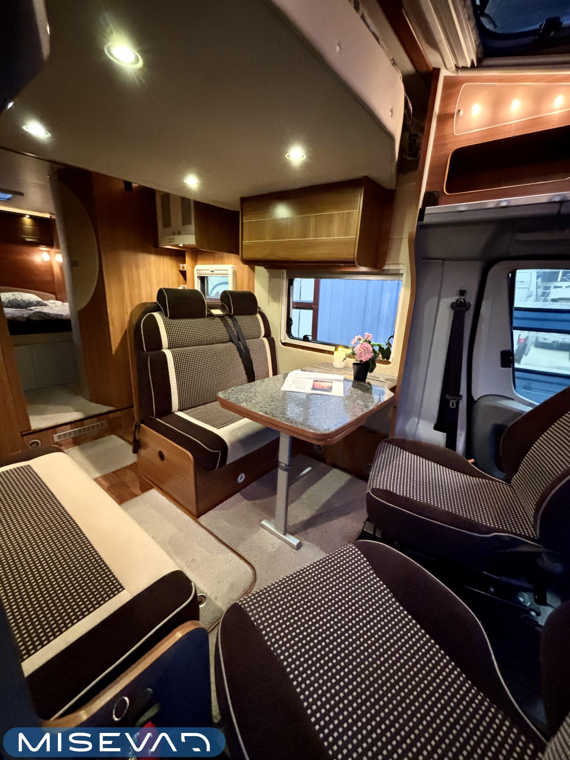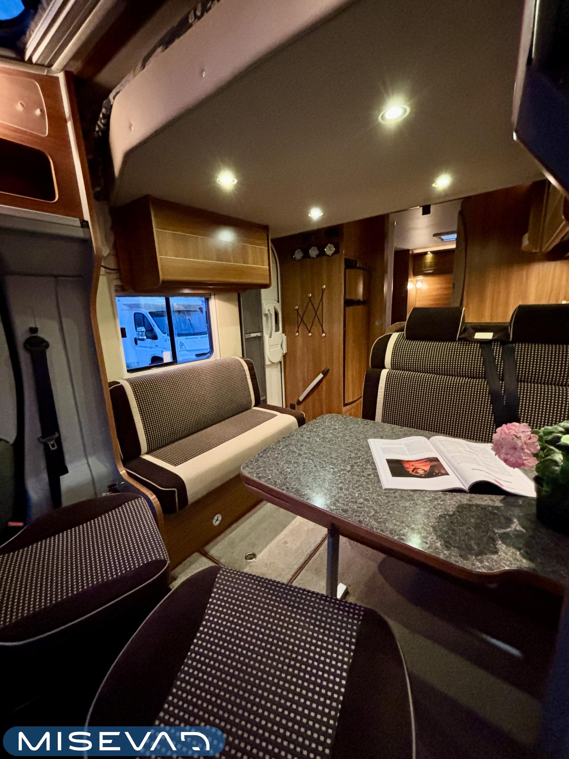 Reilut reissutilat tarjoava Dethleffsin puoli-integroitu matkailuauto. Autosta löytyy kaksi parivuodetta mistä toinen sijaitsee saarekevuoderatkaisuna auton takaosassa ja toinen pöytäryhmän päällä laskuvuoteena. Takaosassa on myös erilliset suihku- ja WC-tilat. Keskeltä löytyy L-keittiö ja normaalin keittiövarustuksen lisäksi varusteena on myös kaasu-uuni. Etuosa on pöytäryhmää minne yhdistyvät kääntyvät ohjaamon penkit, sekä kahden istuttava sivusohva. Auton alusta on korkeammille massoille mitoitettu Maxi-alusta ja moottorina isompi kolmelitrainen moottori. Voimalinjan jatkeena on automaattivaihteisto. Sen verran tällä reissukodilla on massaa, että ohjastamiseen tarvitaan vähintään C1-luokan ajo-oikeus. Ohjaamosta löytyy tietysti ilmastointi, vakkari, sekä monitoiminäyttö kameralla ja navilla. Fillarit matkaa mukana takaseinälle sijoitetussa pyörätelineessä ja kotelomarkiisi tarjoaa suojaa niin sateelta, kun auringonkin paahteelta.