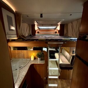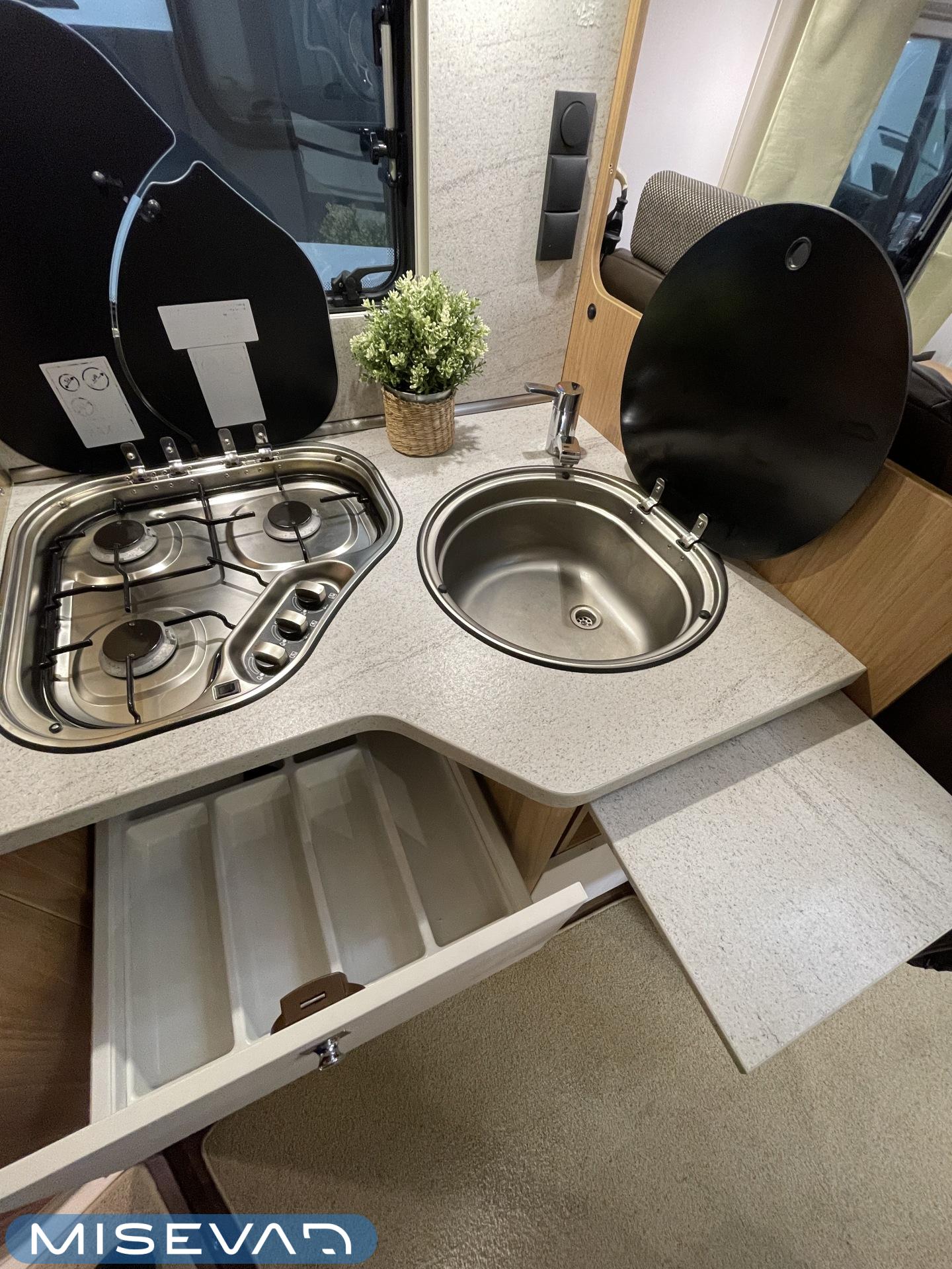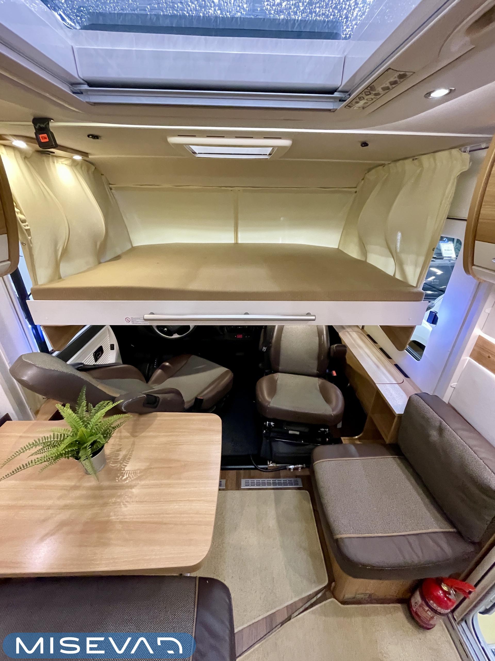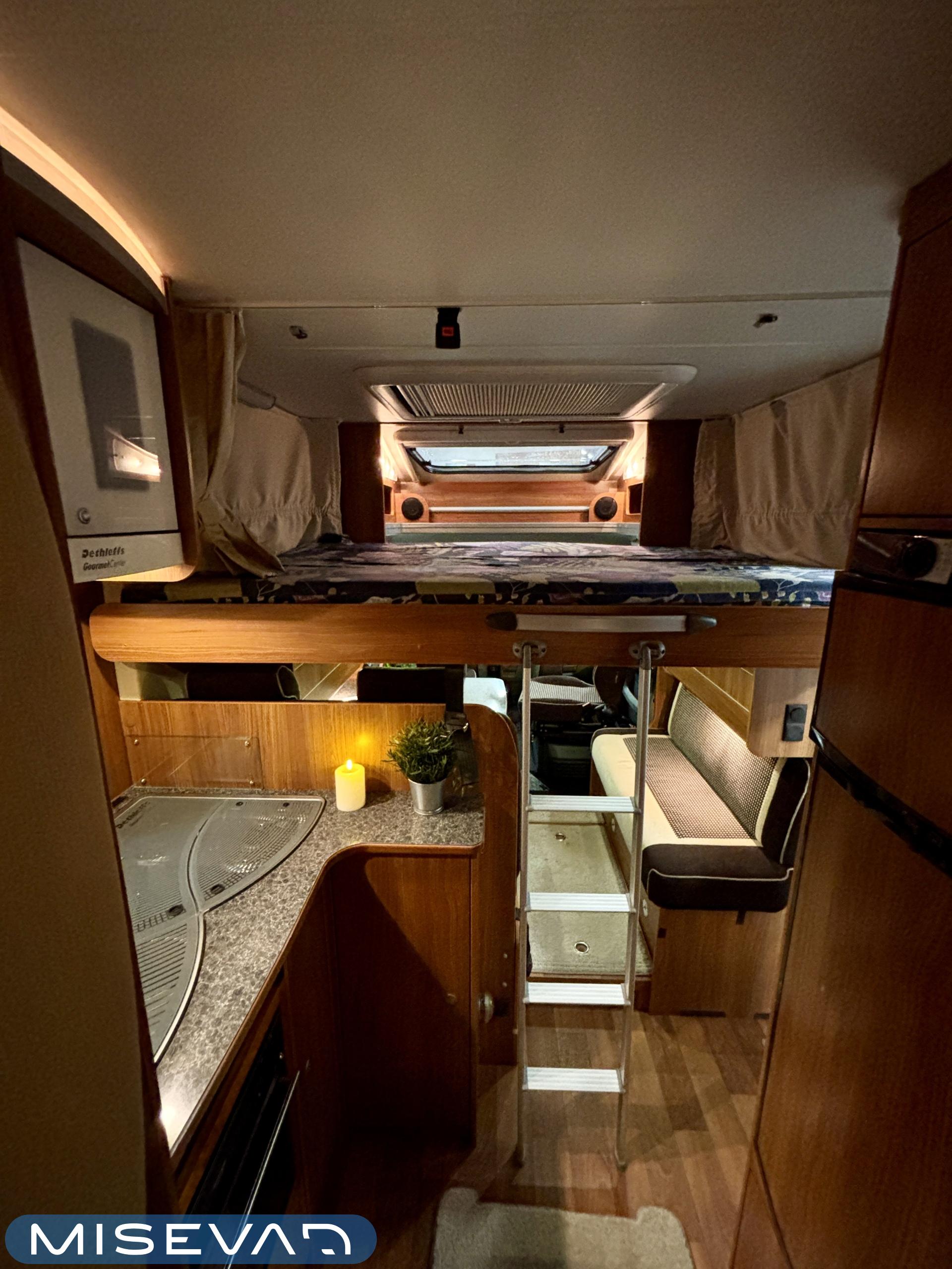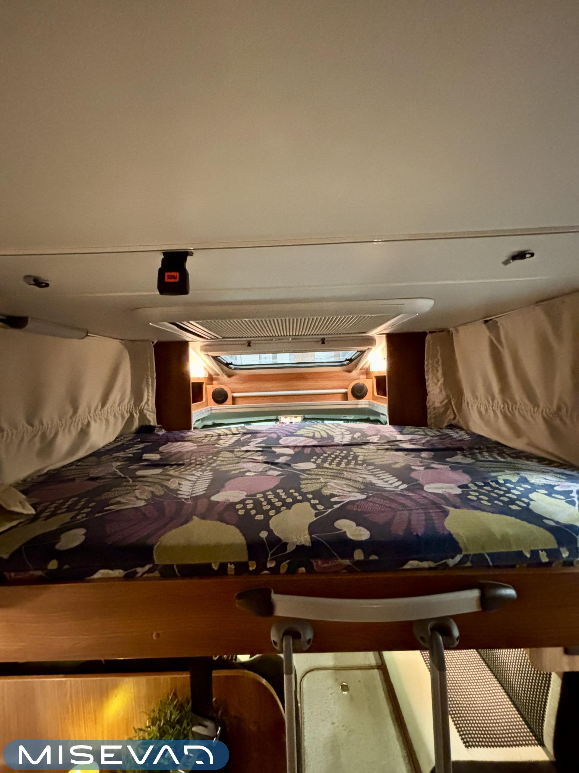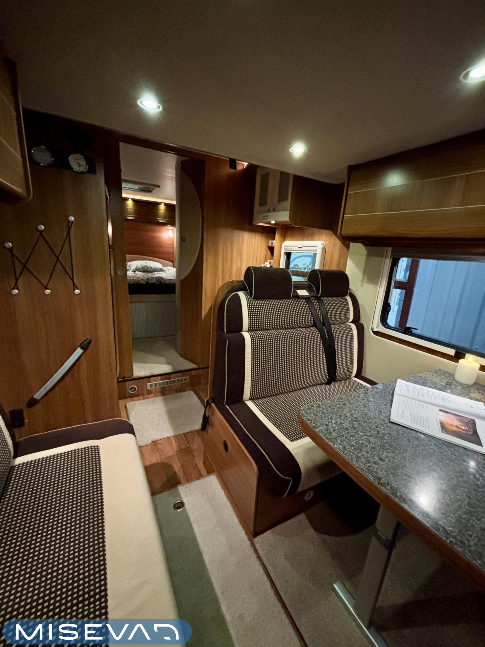Reilut reissutilat tarjoava Dethleffsin puoli-integroitu matkailuauto. Autosta löytyy kaksi parivuodetta mistä toinen sijaitsee saarekevuoderatkaisuna auton takaosassa ja toinen pöytäryhmän päällä laskuvuoteena. Takaosassa on myös erilliset suihku- ja WC-tilat. Keskeltä löytyy L-keittiö ja normaalin keittiövarustuksen lisäksi varusteena on myös kaasu-uuni. Etuosa on pöytäryhmää minne yhdistyvät kääntyvät ohjaamon penkit, sekä kahden istuttava sivusohva. Auton alusta on korkeammille massoille mitoitettu Maxi-alusta ja moottorina isompi kolmelitrainen moottori. Voimalinjan jatkeena on automaattivaihteisto. Sen verran tällä reissukodilla on massaa, että ohjastamiseen tarvitaan vähintään C1-luokan ajo-oikeus. Ohjaamosta löytyy tietysti ilmastointi, vakkari, sekä monitoiminäyttö kameralla ja navilla. Fillarit matkaa mukana takaseinälle sijoitetussa pyörätelineessä ja kotelomarkiisi tarjoaa suojaa niin sateelta, kun auringonkin paahteelta.