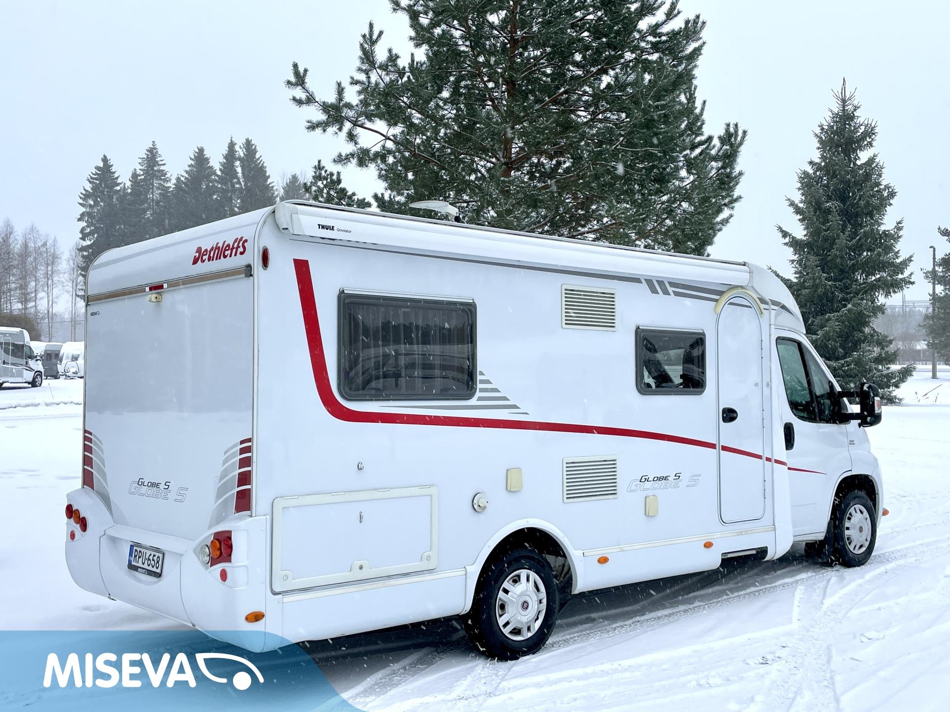 Siistikuntoinen Dethleffs mukavasti varusteltuna. Turvavyölliset istuinpaikat kuudelle.