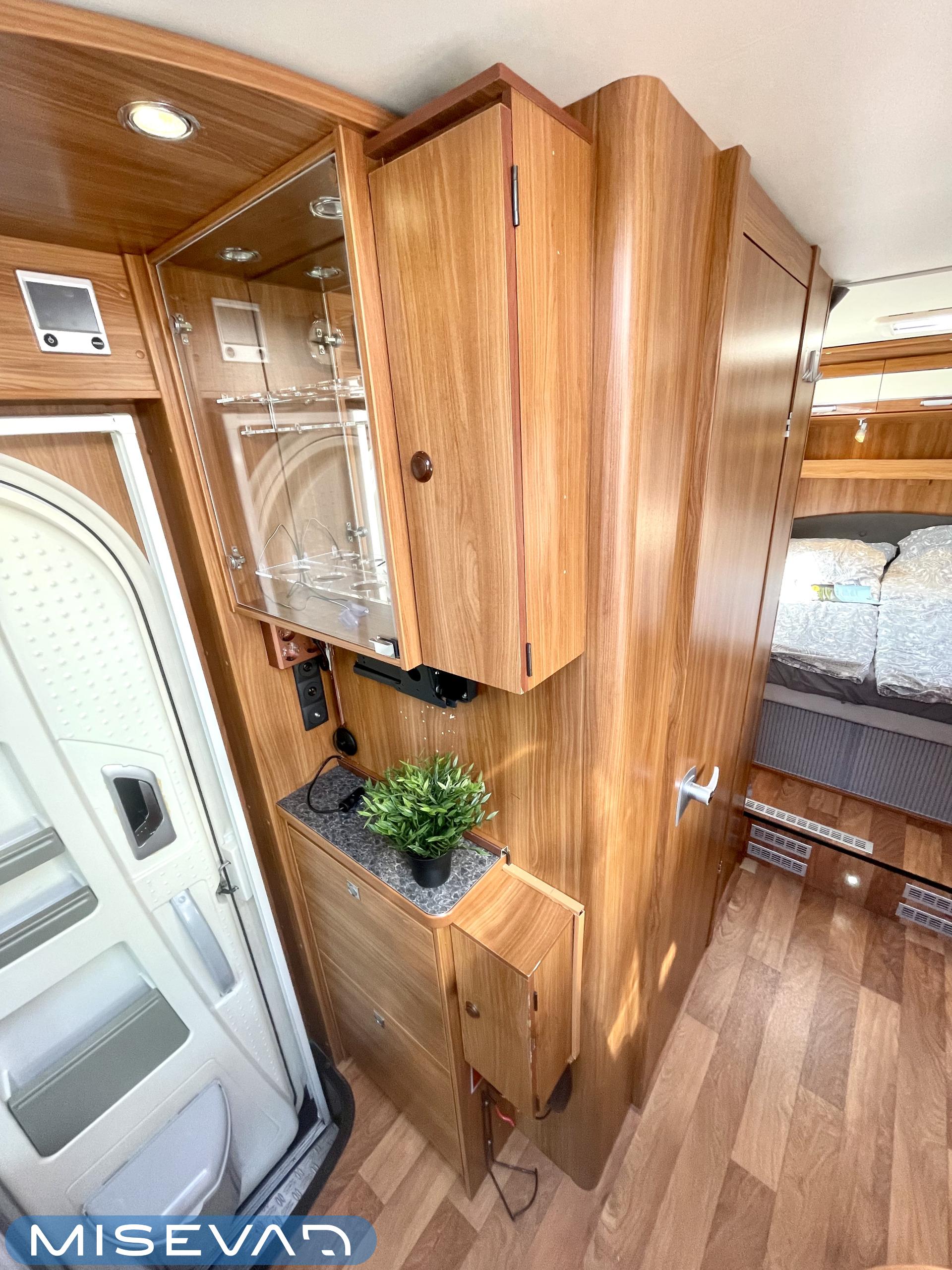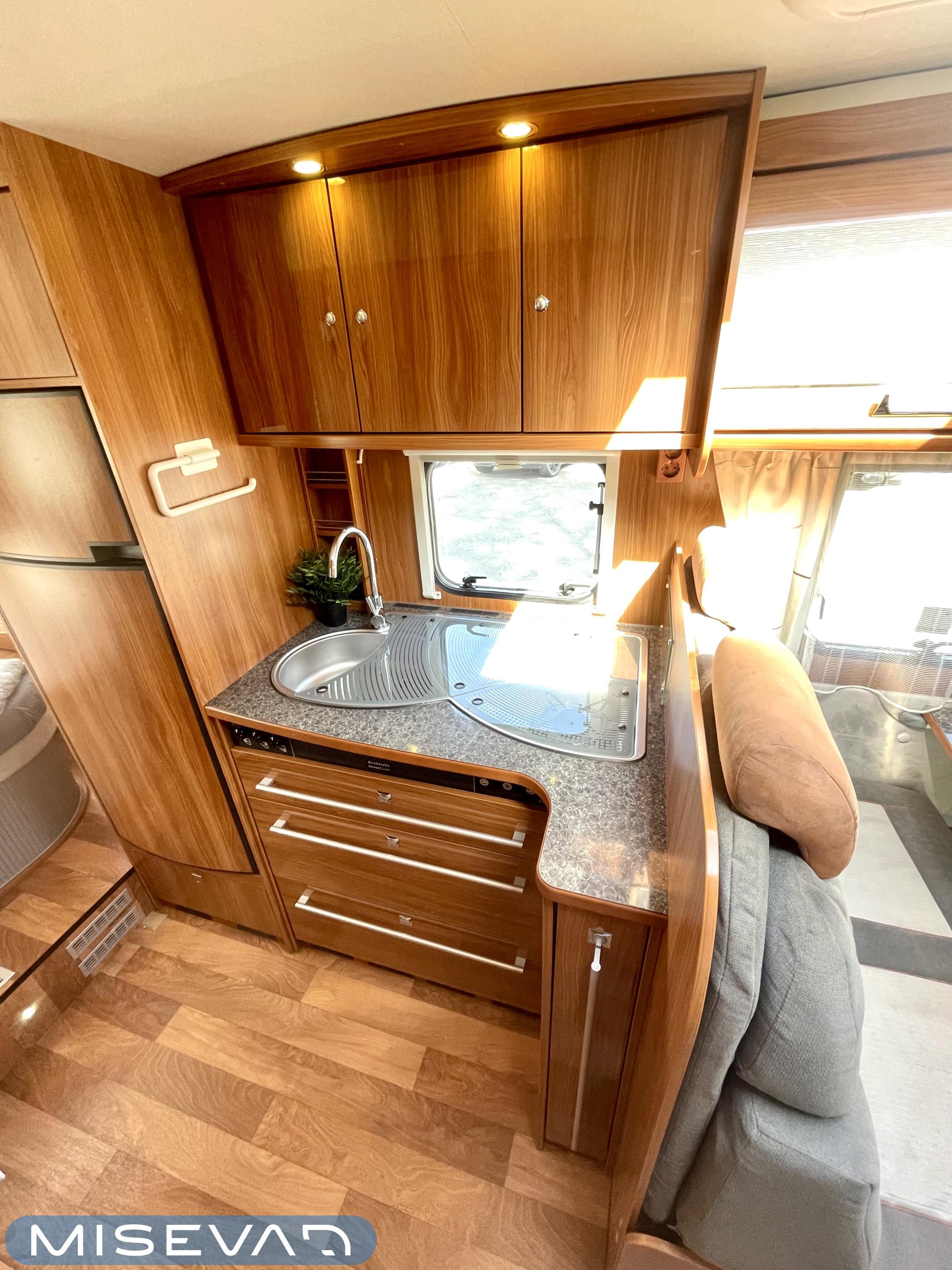 ABS-jarrut, Airbag, Ajonvakautusjärjestelmä, Ajotietokone, Alde, Jääkaappi, Ilmastointi: Automaattinen, Kasetti WC, Kasettiverhot, Kattoluukku, Keskuslämmitys, Käynnistyksenesto, Lattialämmitys, Liesi, Luistonesto, Lämminvesiboileri, Pesuallas, Parivuode, Pakastelokero, Ohjaustehostin, Nestekiertolämmitys, Suihku, Markiisi, Pyöräteline, Radio, Sähkökäyttöiset ikkunat, Sähköpatruuna, Vakionopeudensäädin, Turbo, TV-antenni tai lautasantenni, Sähköpeilit, Asuinosan hyttysovi/verho, Webasto/Eber, Ilmastointi (ohjaamo), jenkkijääkaappi, Eristetty harmaavesisäiliö, harmaavesisäiliön lämmitys, Kahdet renkaat