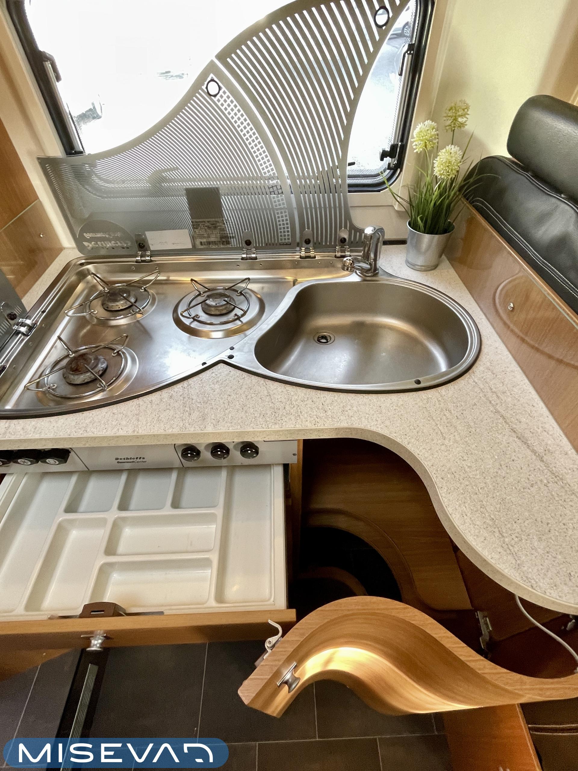 Truma, ABS-jarrut, Airbag, Erikoisvanteet, Erillisvuoteet, Eristetty harmaavesisäiliö, Jääkaappi, Kasetti WC, Kasettiverhot, Kattoluukku, Käynnistyksenesto, Liesi, Lämminvesiboileri, Markiisi, Nahkasisusta, Ohjaustehostin, Pakastelokero, Pesuallas, Pysäköintikamera, Pyöräteline, Radio, Suihku, Sähkökäyttöiset ikkunat, Sähköpeilit, TV-antenni tai lautasantenni, Turbo, Vakionopeudensäädin, Ilmastointi (ohjaamo), Ilmastointi (asuintila), laskuvuode, astinlaudat, jenkkijääkaappi, televisioteline, Asuinosan hyttysovi/verho, Al-Ko alusta
