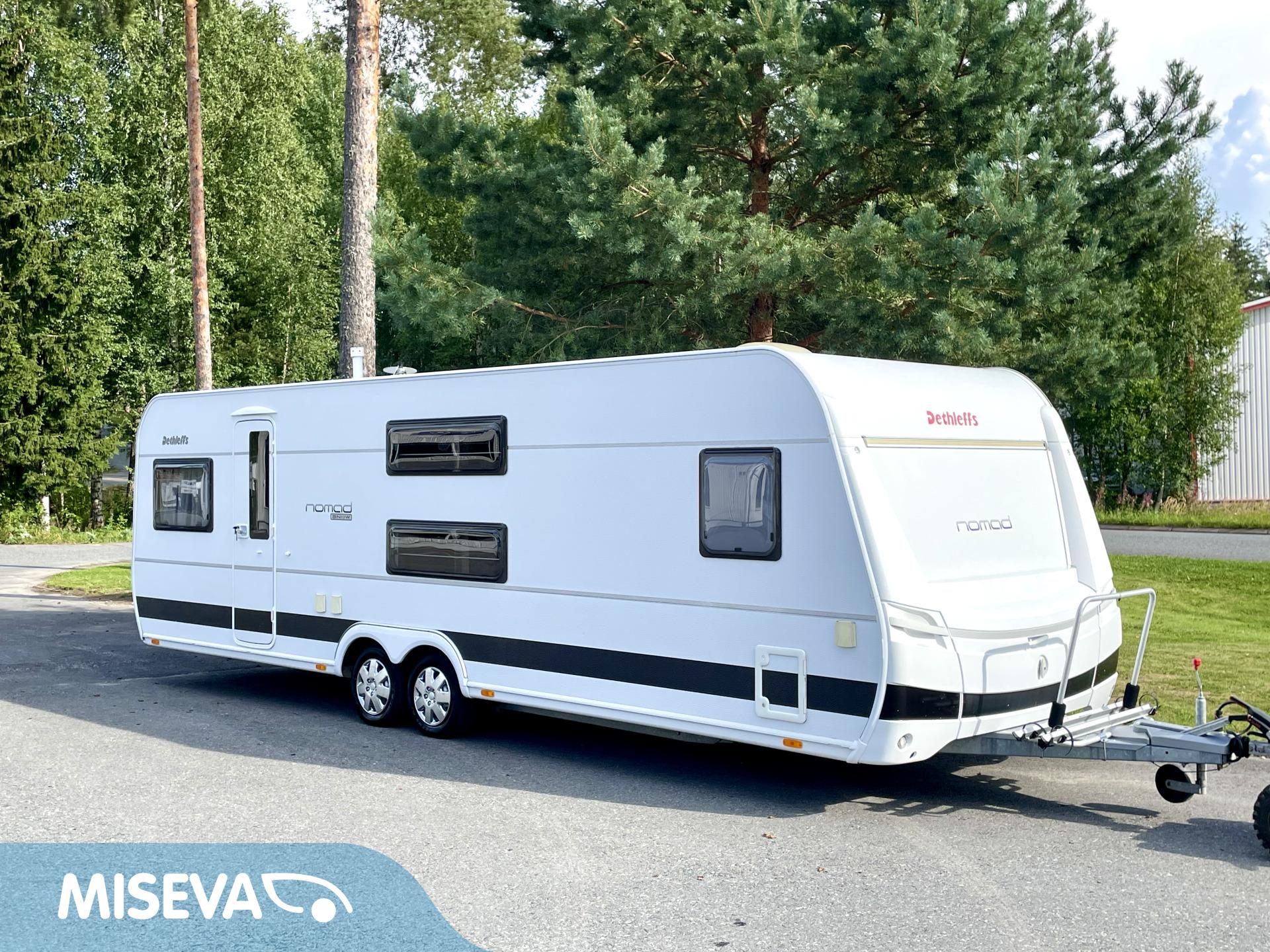 Tilava Dethleffssin perhevaunu jossa vuodepaikat seitsemälle.