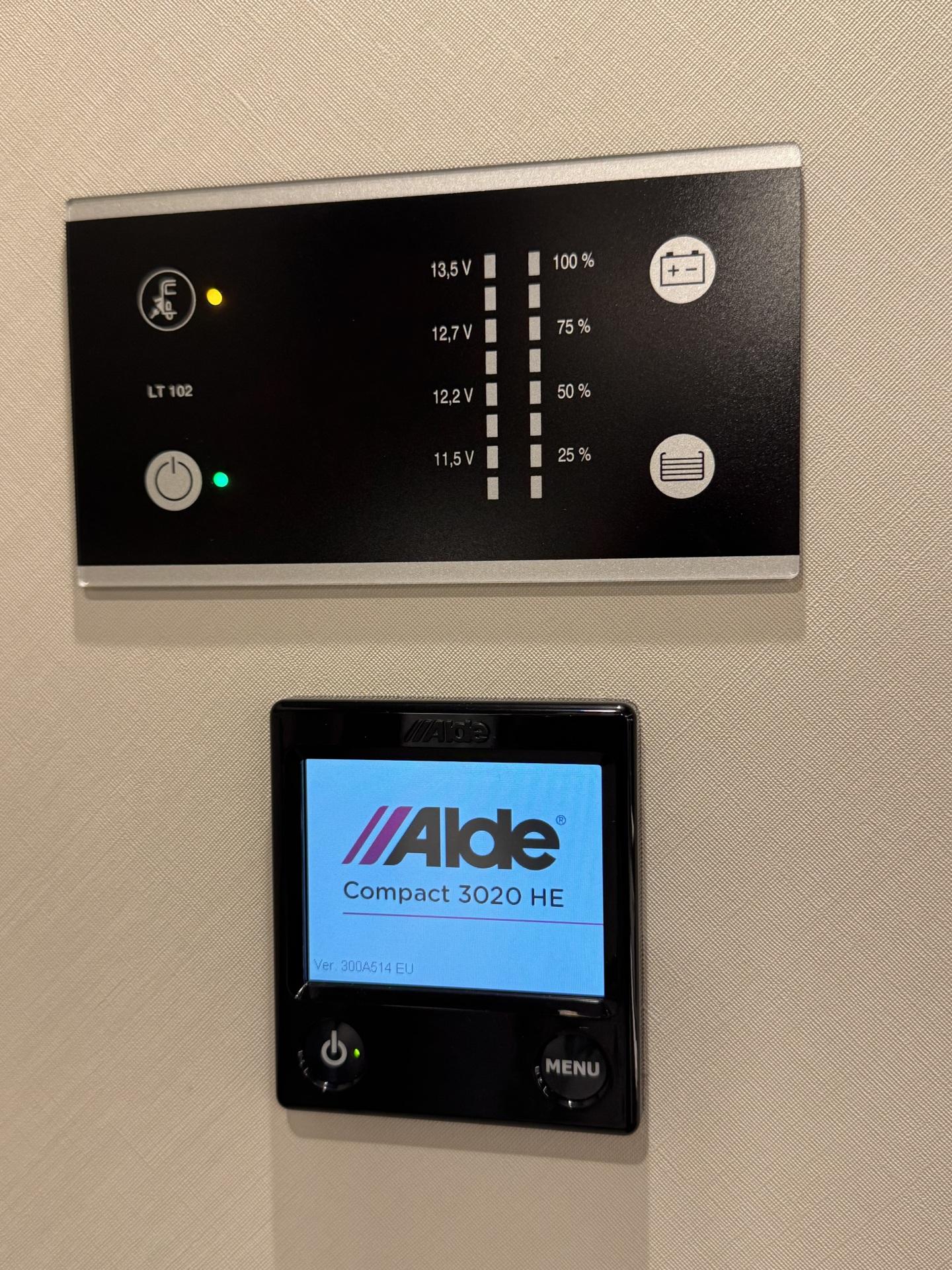 – Tehokas nestekiertoinen 6kW Alde -lämmitys kaasulla ja sähköllä