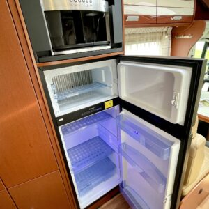 Se löytyy tästä, Juhlamallin Dethleffs tästä suorastaan huokuu eleganssi ja varusteet, on nahkaa, on Aldea lämmönvaihtimella, nestekiertoinen lattialämmitys ja tehtaalla asennettu espressokeitin.