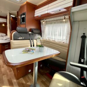 Avara ruokailu tila yhdistettynä laadukkaaseen Dethleffs Gourmet keittiöön takaan niin mukavat illan istujaiset kuin arkiset lounas hetket, leveä ranskalainen vuode takaa miellyttävät lepohetket ja vieressä tilava suihku/wc-tila.