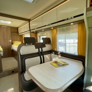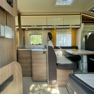 Auton etuosasta löytyy valoisa L- istuinryhmä. Sivusohvan ja kääntyvien etuistuinten ansiosta pöydän ympärille mahtuu jopa 8 henkeä pitämään hauskaa.