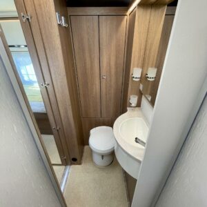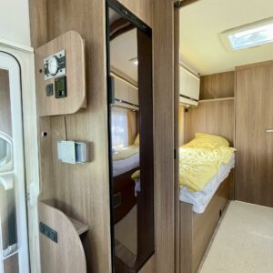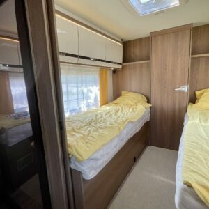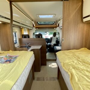 Auton takaosa on pyhitetty nukkumiseen ja hulppeisiin saniteettitiloihin. Mukavat erillisvuoteet ovat matalalla jolloin niihin on helppo kulkea. WC/ pesutilat auton perässä mahdollistavat siistiytymisen myös leiriolosuhteissa.