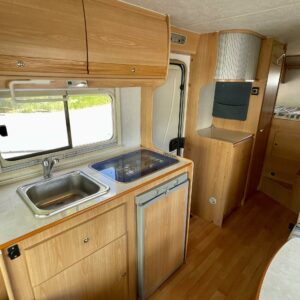 Jääkaappi, Kasetti WC, Kasettiverhot, Kattoluukku, Keskuslämmitys, Käynnistyksenesto, Liesi, Lohkolämmitin, Lämminvesiboileri, Markiisi, Ohjaustehostin, Pakastelokero, Parivuode, Pesuallas, Pyöräteline, Trumatic, Turbo